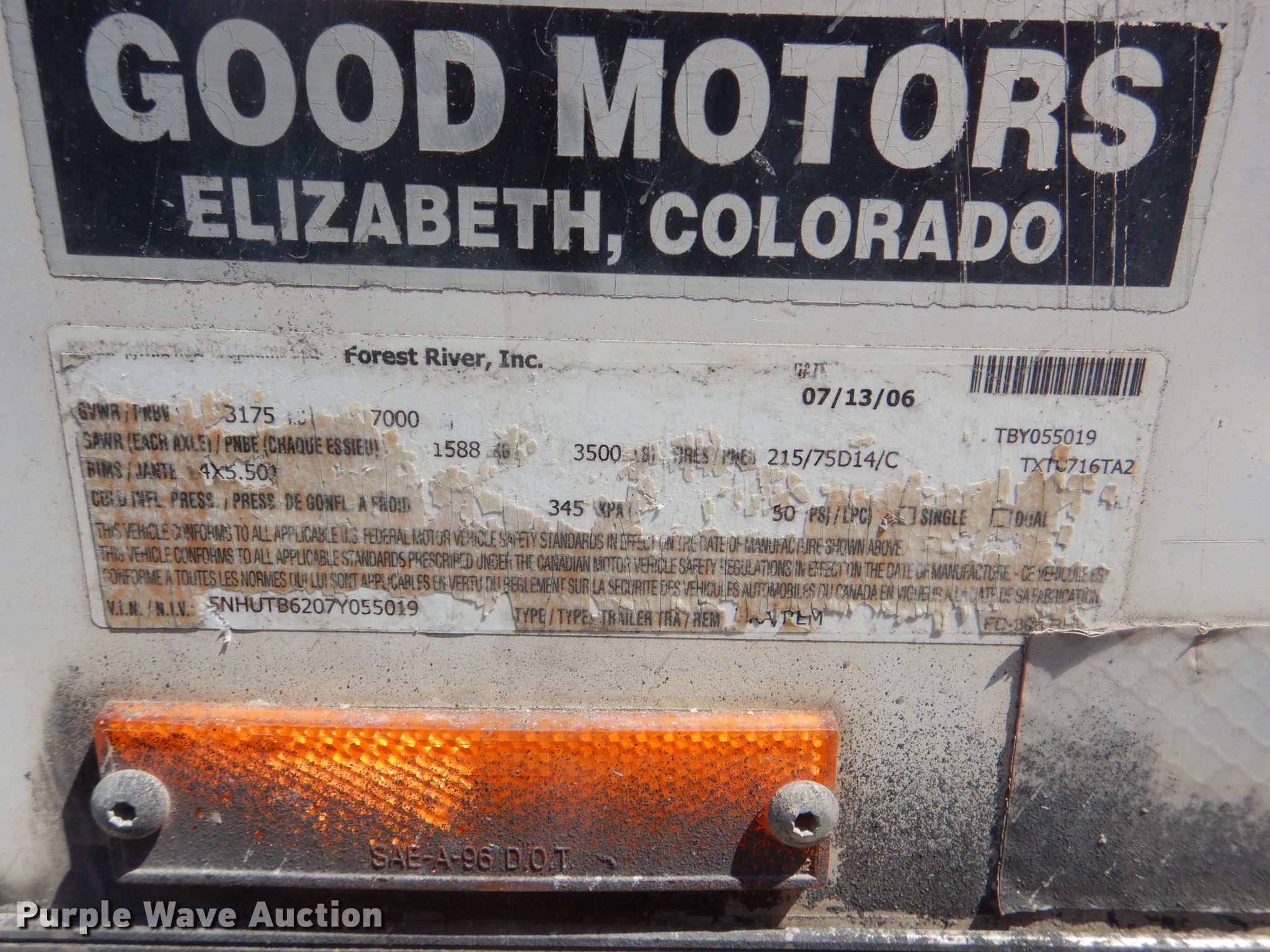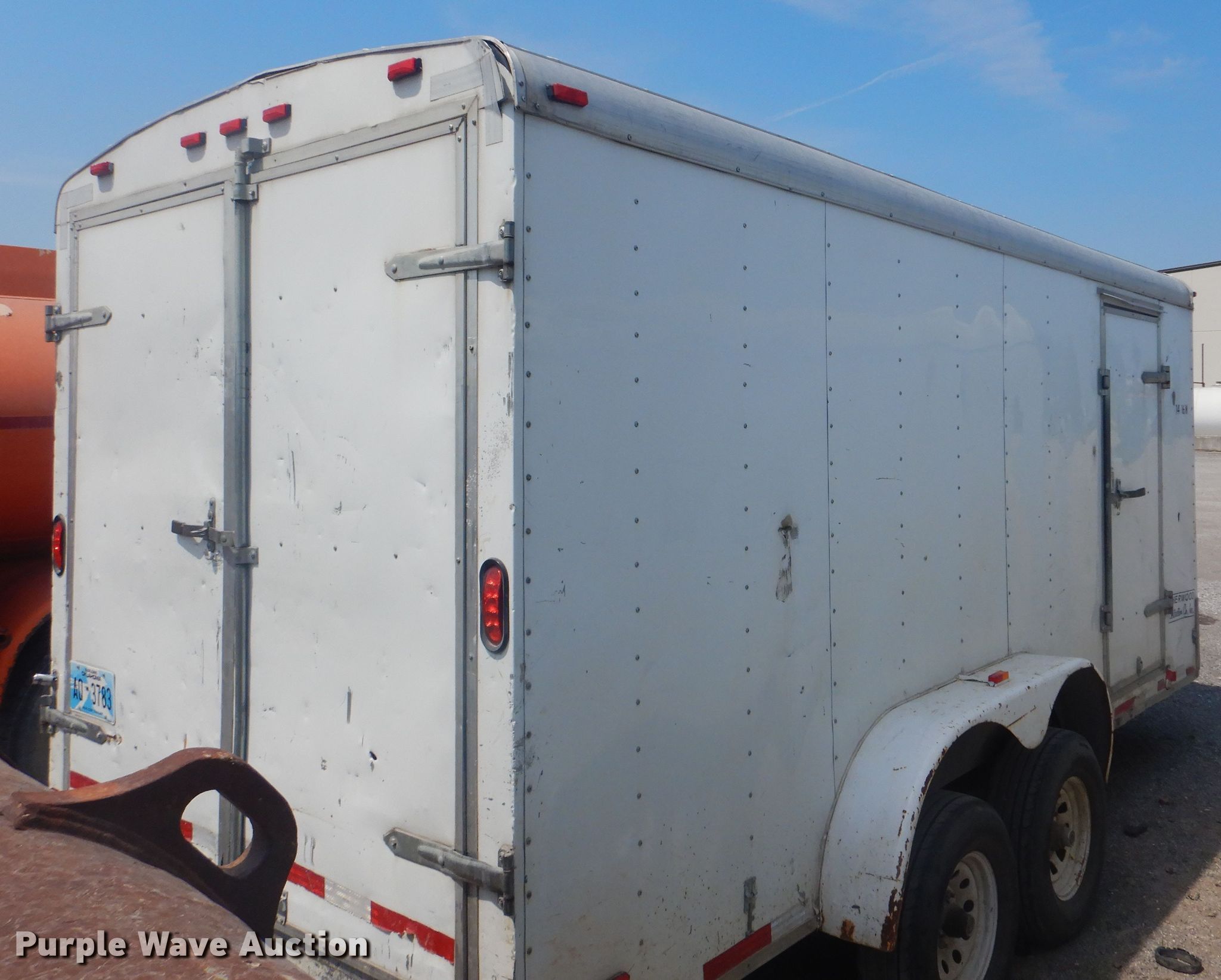 Purple Wave is selling a used Enclosed Cargo Trailer in Oklahoma. This item is a 2007 Forest River enclosed cargo trailer with the following: 20'L overall, 16.5'L x 8'W cargo body, Wood deck, Single leg landing gear, 2 5/16" ball hitch, Spring suspension, Electric brakes, Tandem axle, ST225/75R15 tires, GVWR 7,000 lbs, GAWR 3,500 lbs