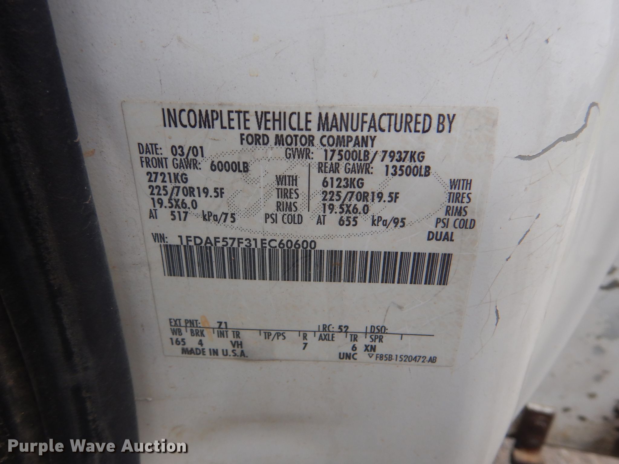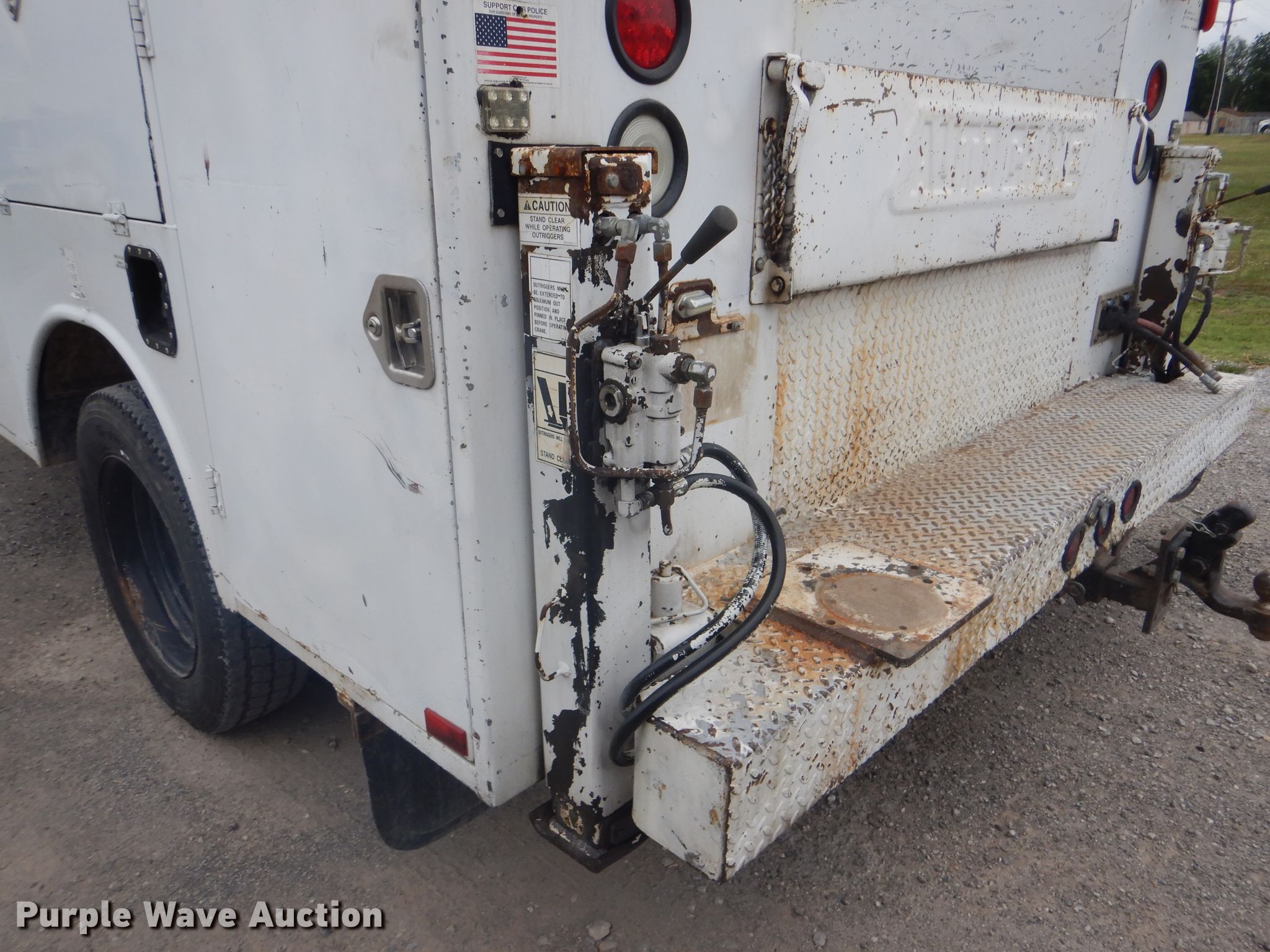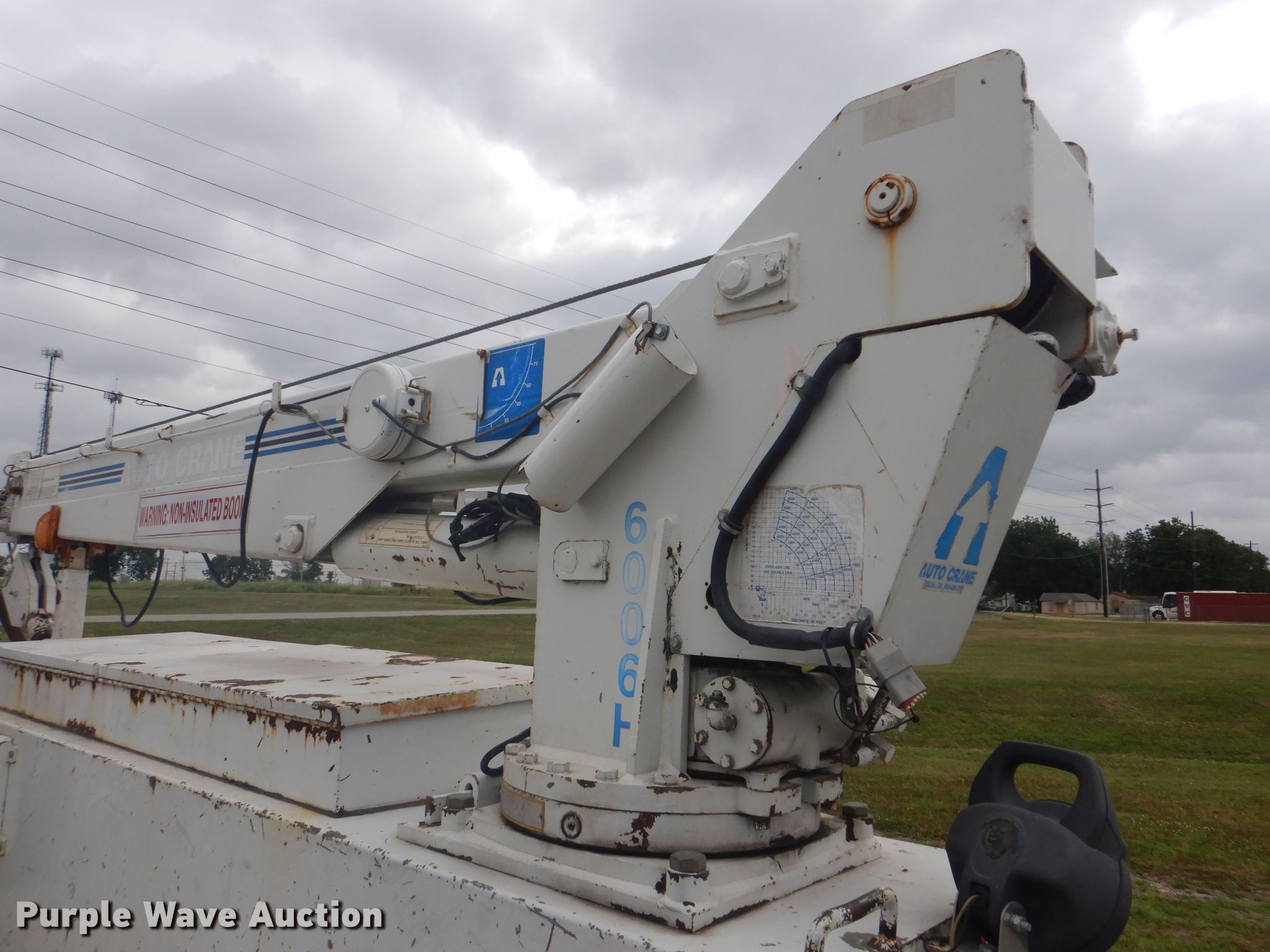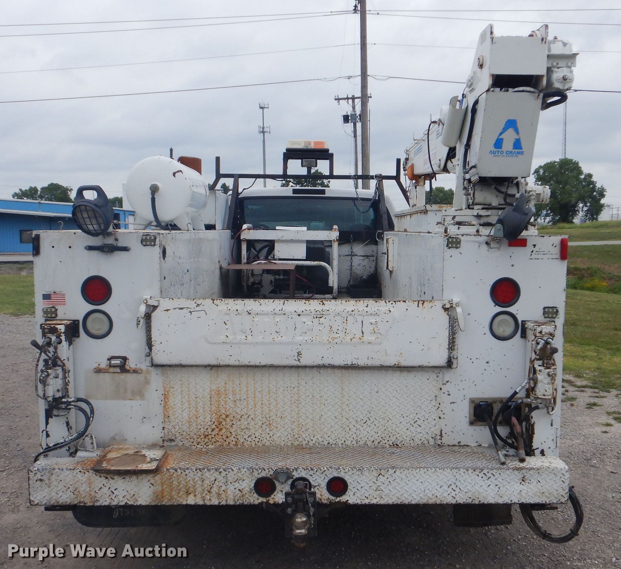 2001 Ford F550 Super Duty utility bed pickup truck with crane. 220,307 miles on odometer, Unit #: 206013. Engine Displacement: 7.3L OHV 16V, Cylinders: 8, Fuel type: Diesel. Transmission Manual, Speed: 6, Four Wheel Drive. Chassis Axles: Single, Suspension: Spring, Brakes: Hydraulic, PTO, GVWR: 17,500 lbs, Wheelbase: 165". Interior AC, Heat. Operational Utility bed Length: 8', Hose reels, Crane Auto Crane 6006H, Boom length: 28', Maximum lift capacity: 3,600 lbs. Tires Size: 255/70R19.5. Notes Hail damage. Oklahoma title. Title distribution may be delayed up to 14 days from verification of funds. 1FDAF57F31EC60600. TLS, LLC. 1326 W 37th Pl. Tulsa, OK 74107