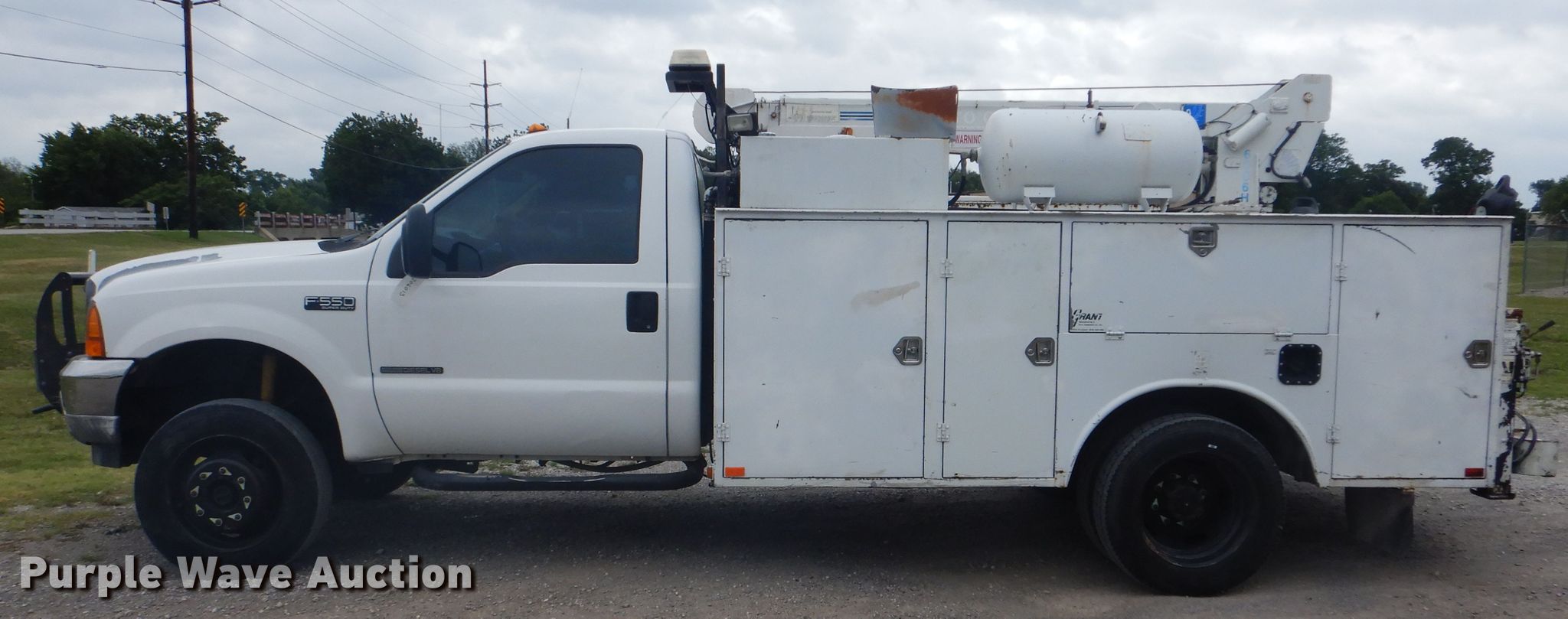 2001 Ford F550 Super Duty utility bed pickup truck with crane
