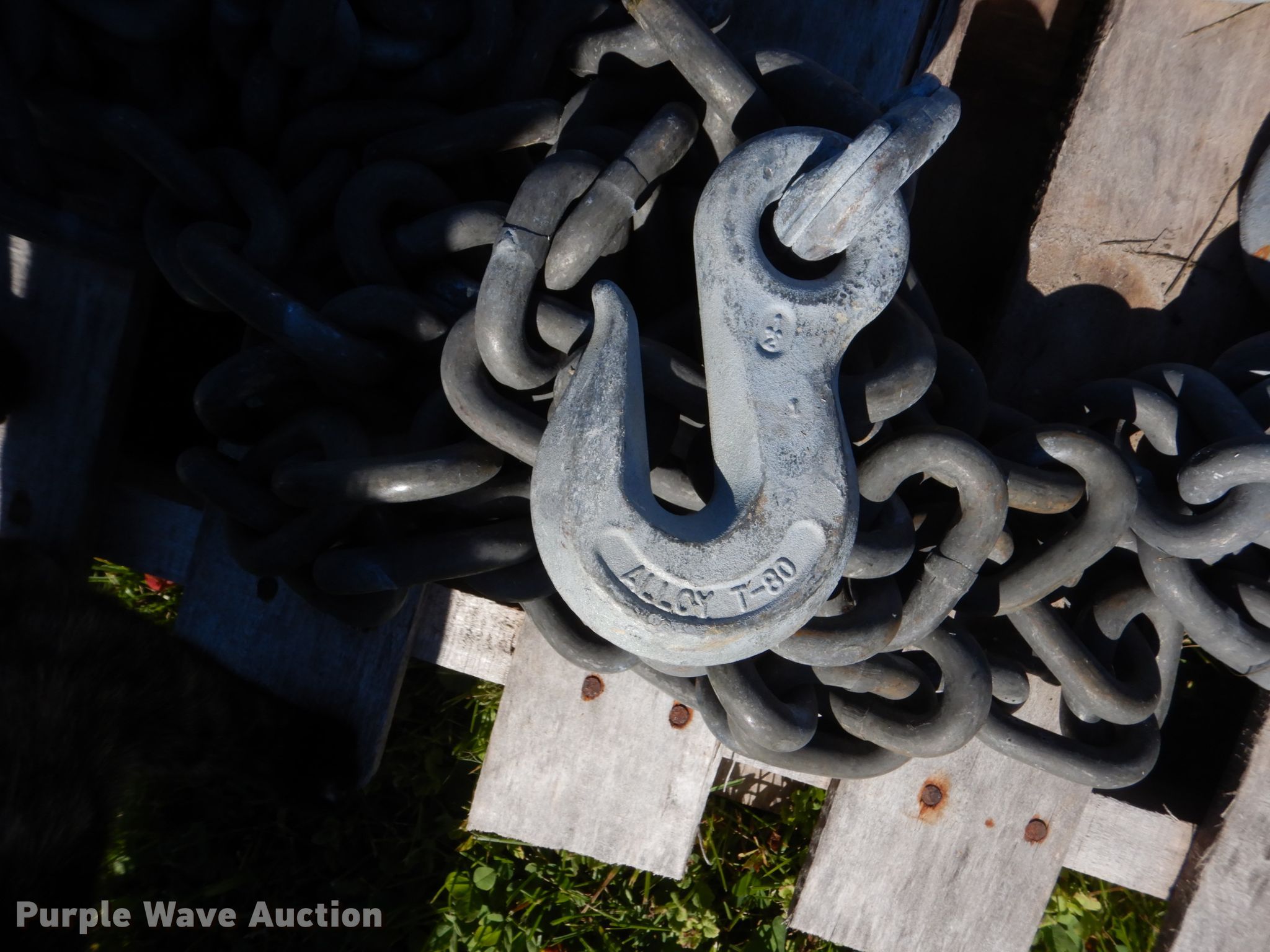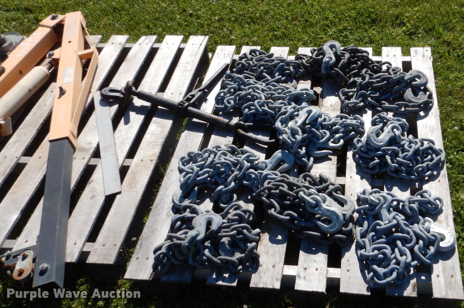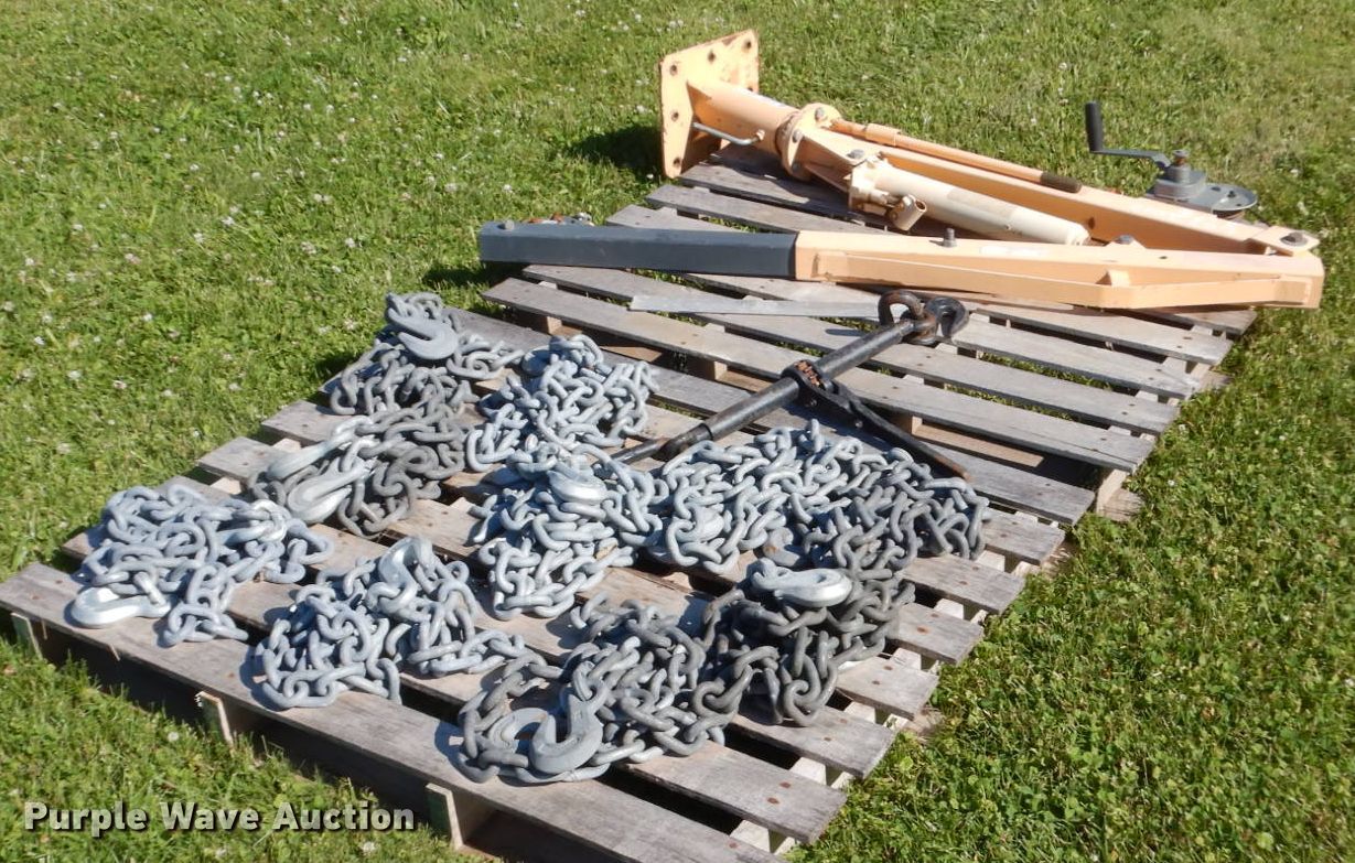 Purple Wave is selling a used Tools in Iowa. This item is a Hoist with the following: Winch, 10,000 lbs max lift capacity, (10) 10'L chains, T-80 hooks