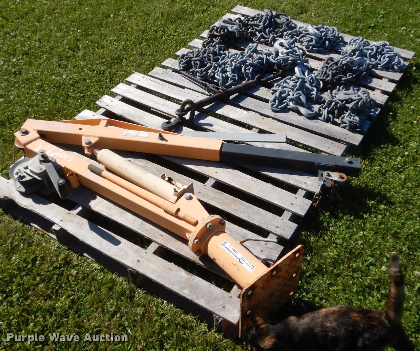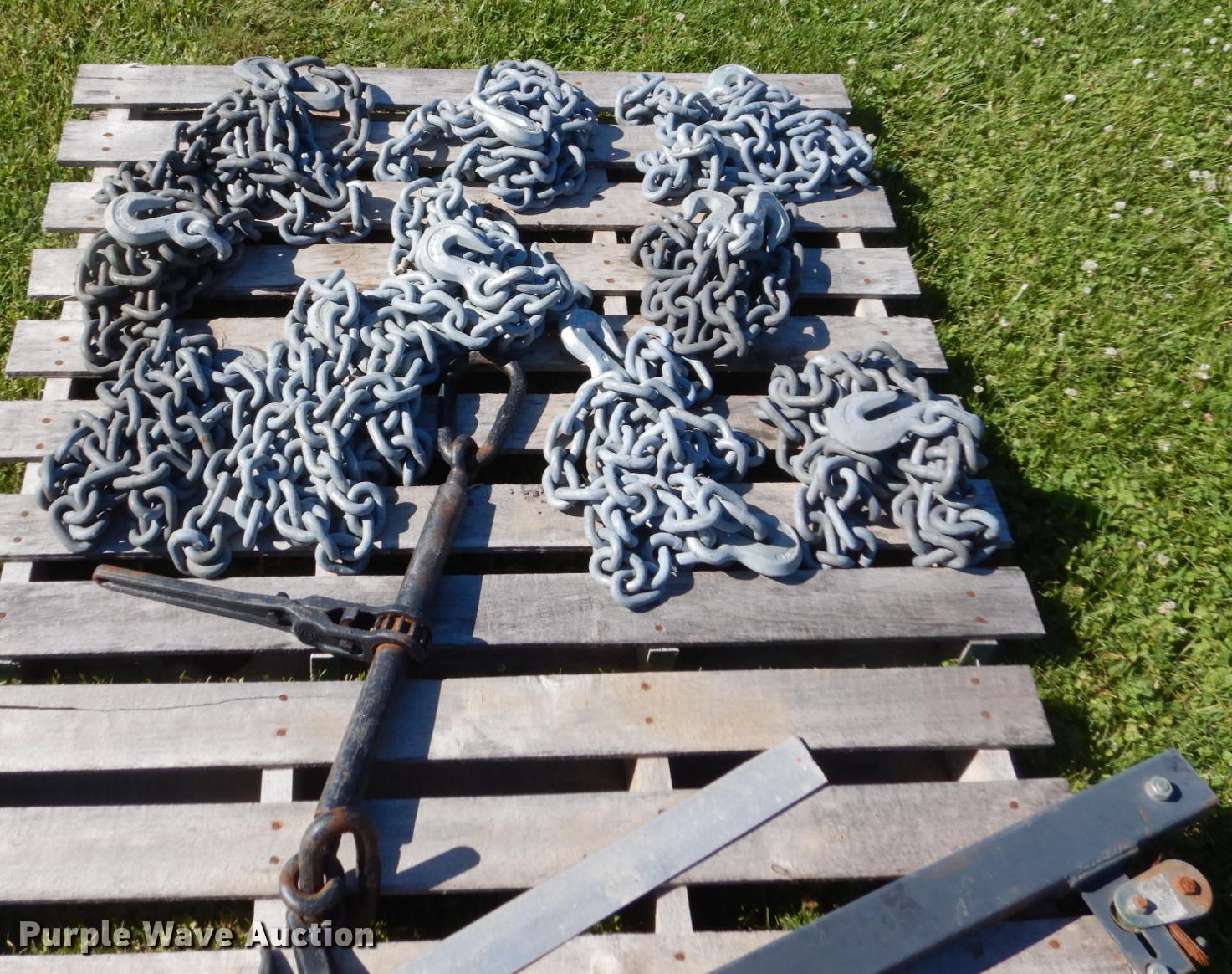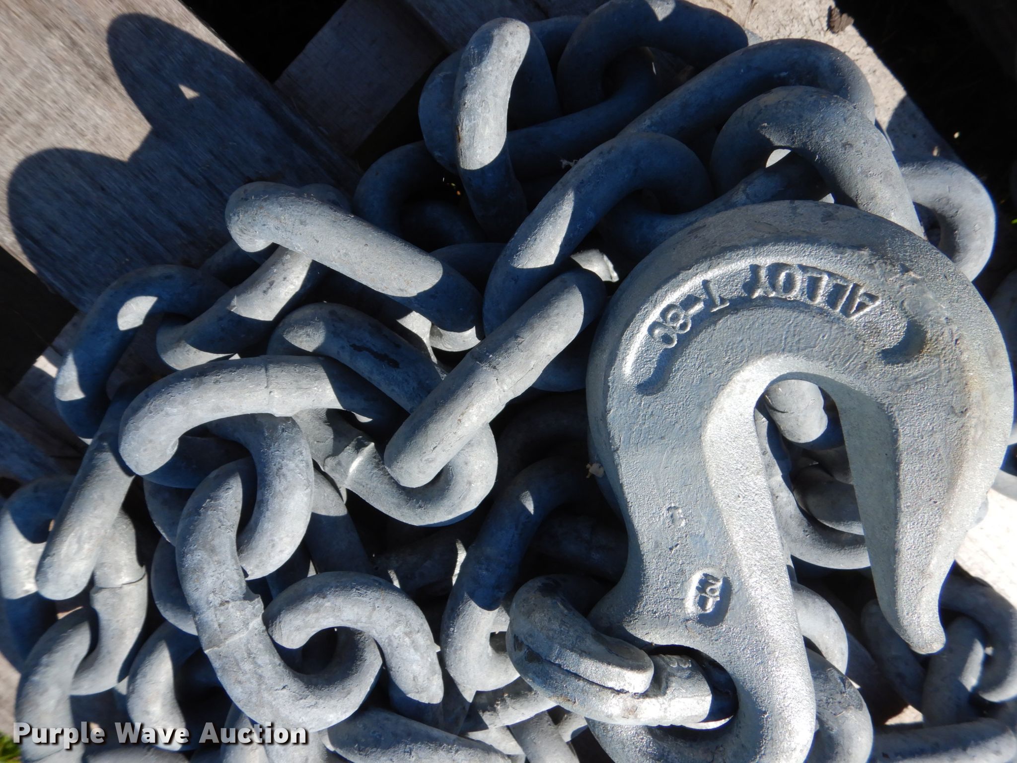 Purple Wave is selling a used Tools in Iowa. This item is a Hoist with the following: Winch, 10,000 lbs max lift capacity, (10) 10'L chains, T-80 hooks