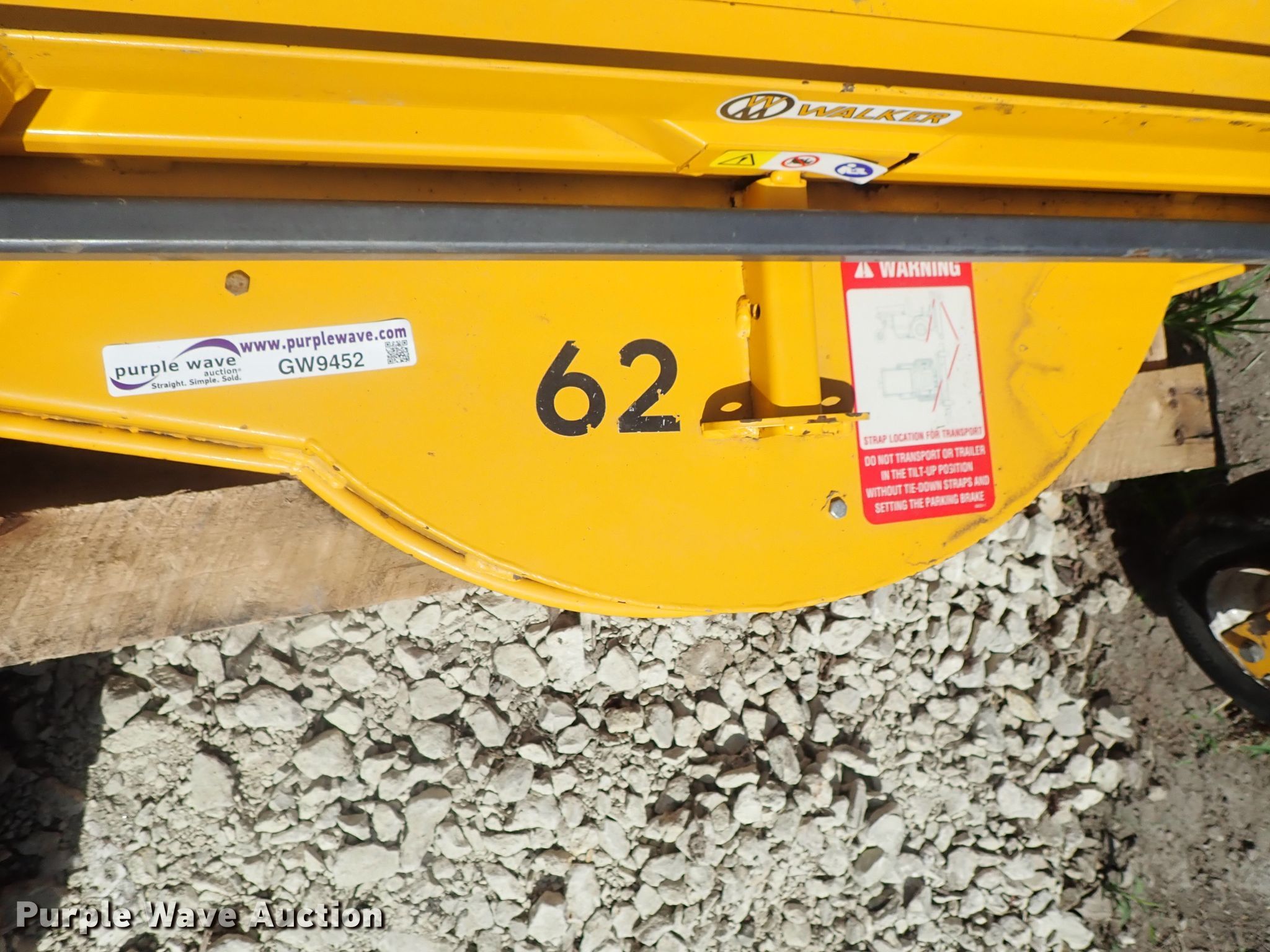 Purple Wave is selling a used Lawn and Garden in Kansas. This item is a Walker mower deck with the following: 62"W, Serial OS67-3162452