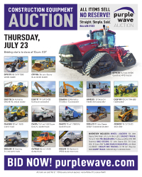 Equipment descriptions are based on our direct observation and information provided by our selling customer. All information is intended to be as accurate as possible. However, we recommend customers inspect prior to bidding. Purple Wave listings are not intended to be substitutions for inspection. The details provided may differ on equipment based on information provided by the consignor. An error or omission in the listing will not change the results of the bid. It is the responsibility of the buyer to conduct any inspection and examination necessary to satisfy him of all material facts before placing a bid. All assets, unless stated otherwise, are sold "as-is, where is". Buyers assume all risks at the conclusion of the auction. All sales are final. No refunds given. Credit card transactions may not be reversed.