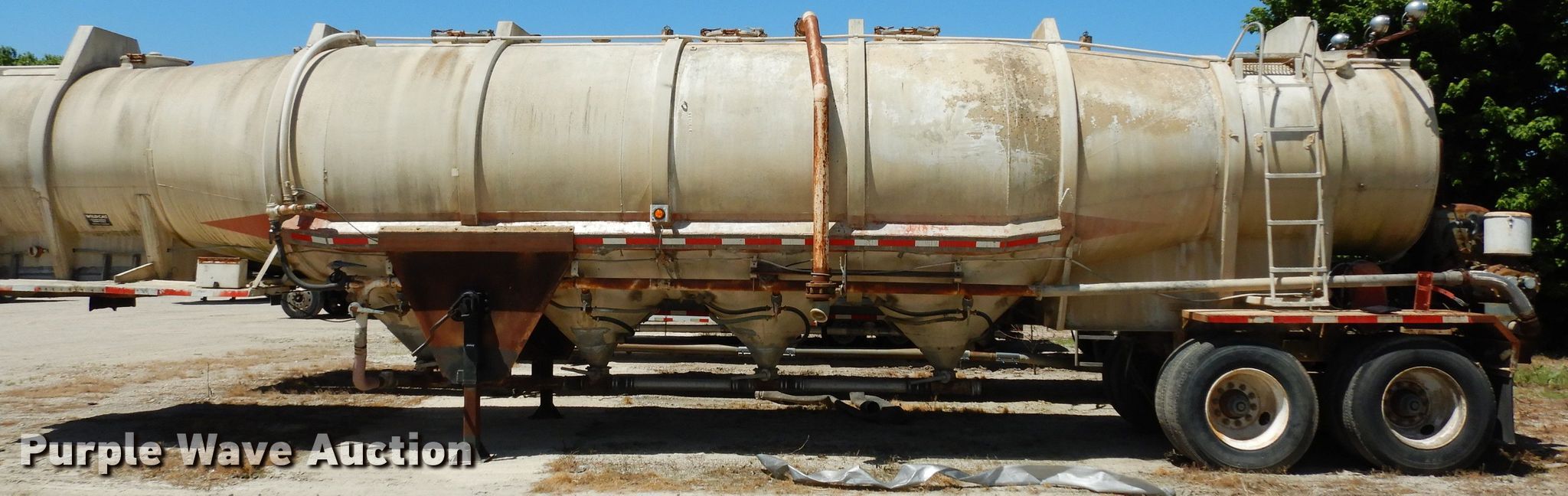 Purple Wave is selling a used Tank Trailer in Kansas. This item is a 1964 Butler tank trailer with the following: 1,050 cu.ft. capacity, Ford four cylinder gas pump engine, 445 hours on meter, Serial 2844C10KL, (4) outlet valves, Dual leg landing gear, Walking beam suspension, Air brakes, Tandem axle, 11R22.5 tires
