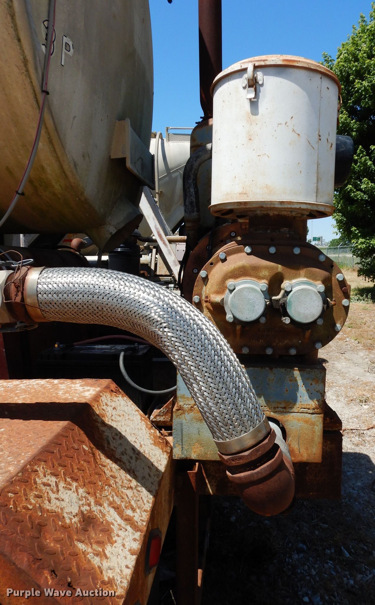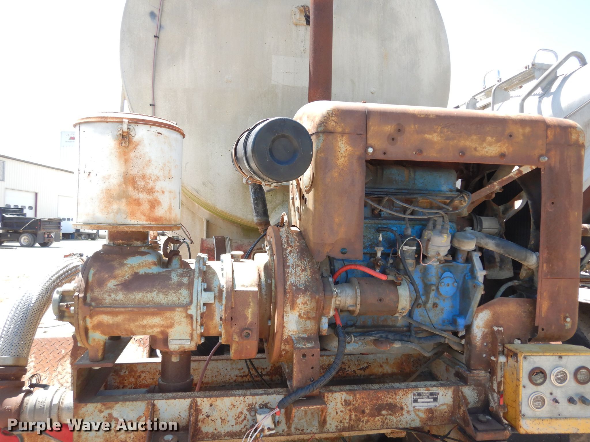 1964 Butler tank trailer. 1,050 cu.ft. capacity, Ford four cylinder gas pump engine 445 hours on meter, Serial 2844C10KL, (4) outlet valves, Dual leg landing gear, Walking beam suspension, Air brakes, Tandem axle, 11R22.5 tires. Kansas title. 3536BPAM. Wildcat Construction. 2244 NW Brickyard Rd. Topeka , KS 66618