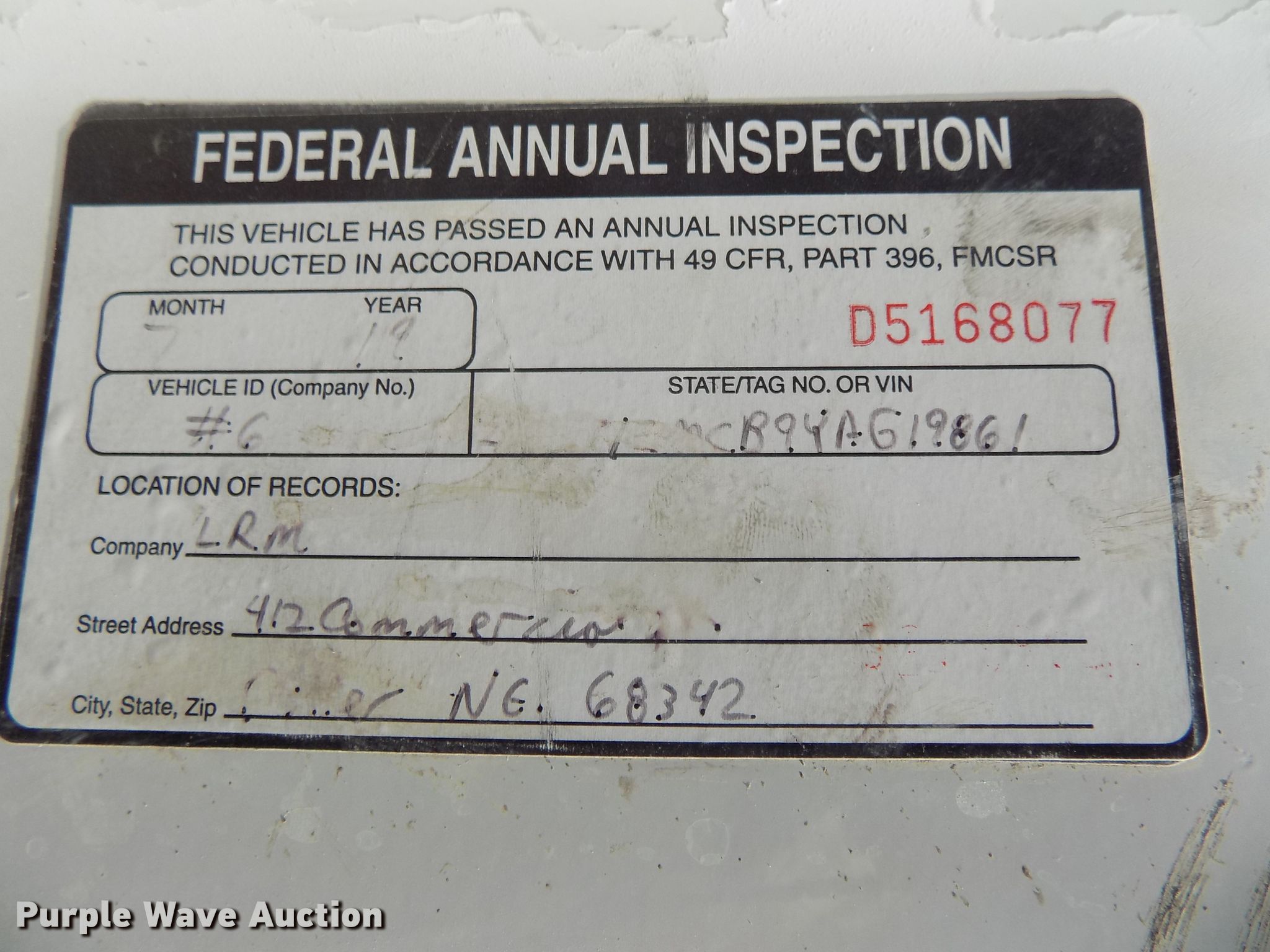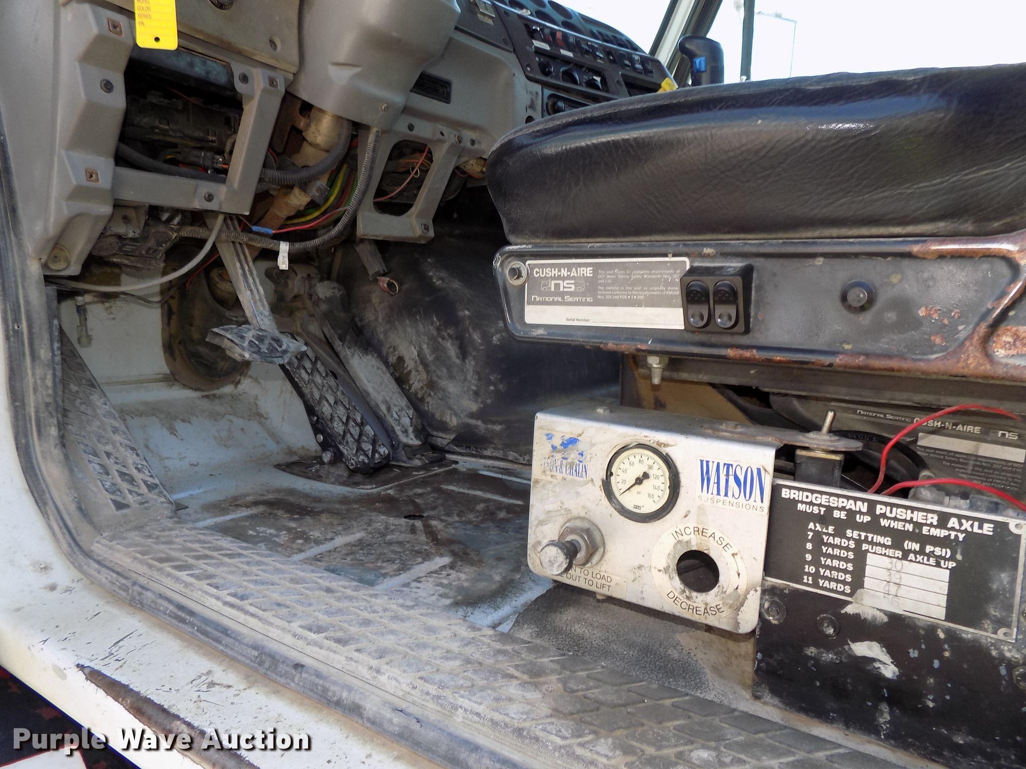 2000 Sterling L-Line ready mix truck. 195,936 miles on odometer, Engine hours: 9,629, Unit #: 6. Engine Cummins ISM, Serial: 34970611, Displacement: 10.8L, Cylinders: 6, Fuel type: Diesel, HP: 330. Transmission Eaton Fuller Road Ranger RTO- 9 MLL, Manual, Speed: 9. Chassis Axles: 4, Pusher axle Steerable, Tag axle, Differential lock: Inter-axle, Suspension: Walking beam, Brakes: Air, PTO, GVWR: 66,000 lbs FAWR: 20,000 lbs, IAWR: 23,000 lbs, RAWR: 23,000 lbs, Wheelbase: 248". Interior AC, Heat, Heated mirrors. Operational Mixer McNeilus, Capacity: 10.5 cu.yd., Discharge: Rear, Rear drum controls, Water tank: 120 gallon, Chute Extensions: 2.. Tires Front: 425/65R22.5, Rear: 11R22.5, Tag axle: 315/80R22.5, Pusher axle: 255/70R22.5. Notes Annual inspection valid through July 2020. View repairs. Nebraska title. 2FZNEMCB9YAG19861. Lottman Ready Mix. 412 Commercial St. Diller, NE 68342