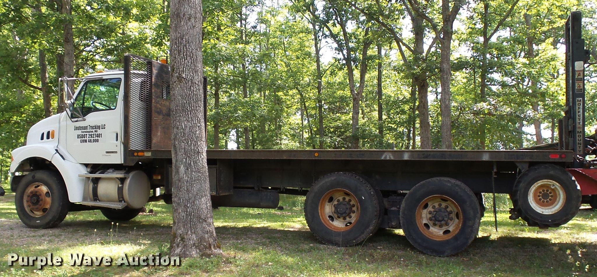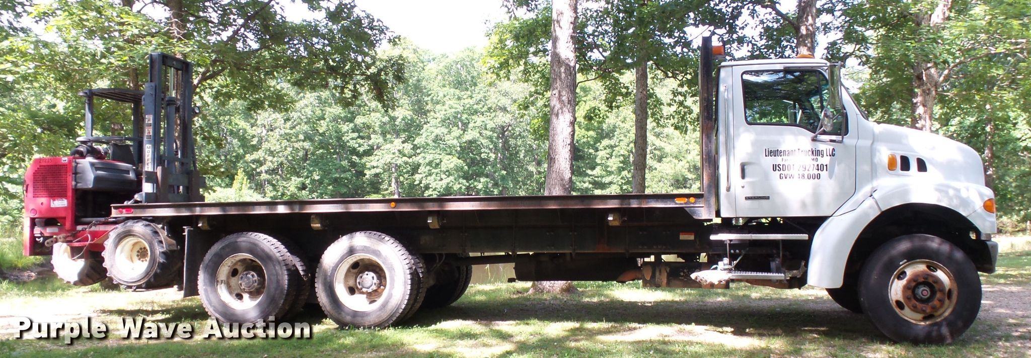 Purple Wave is selling a used Flat Bed Truck in Missouri. This item is a 2004 Sterling L-Line flatbed truck with forklift with the following: 214,123 miles on odometer