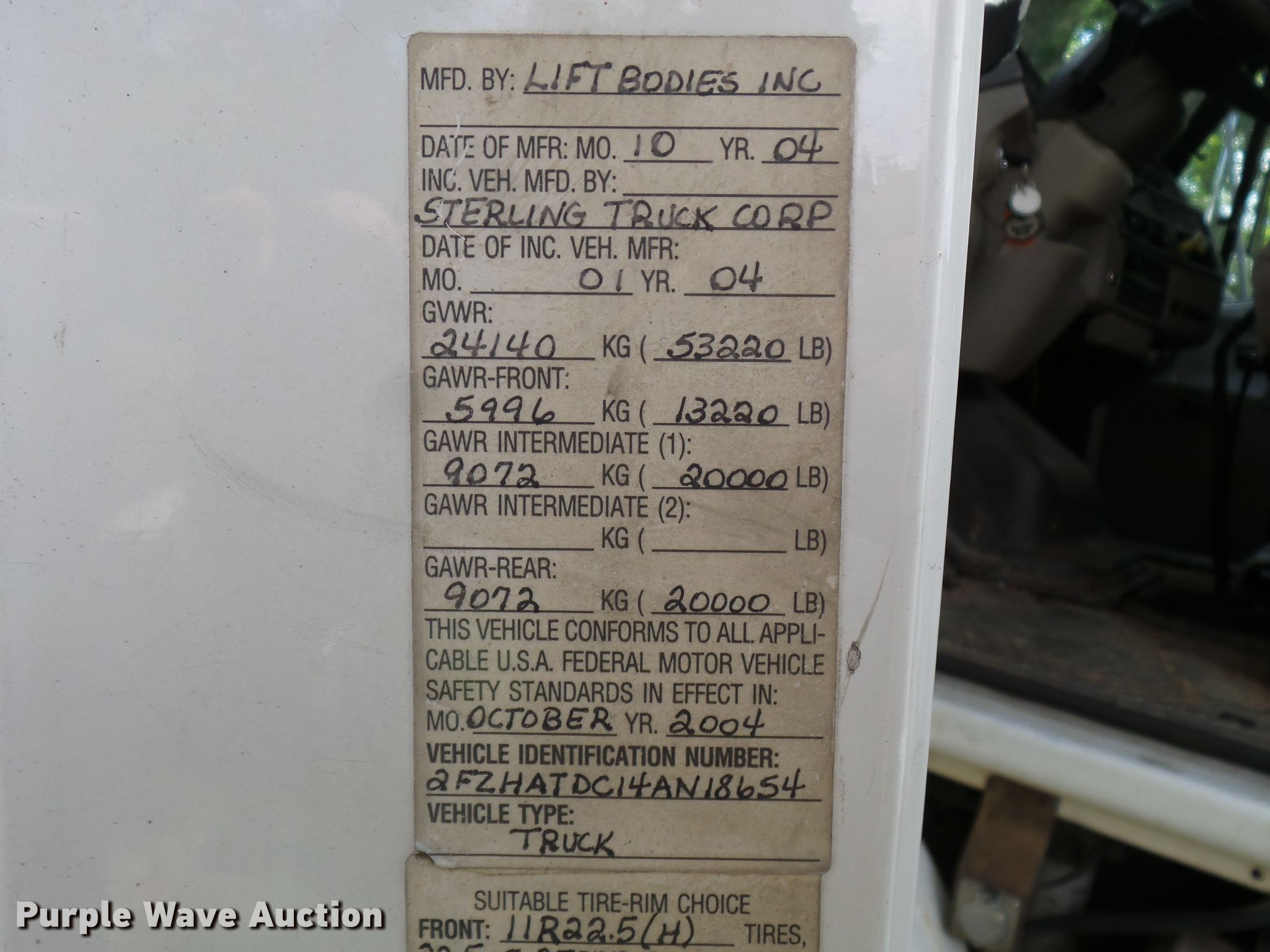 2004 Sterling L-Line flatbed truck with forklift. 214,123 miles on odometer. Engine Caterpillar C7, Serial: KAL26453, Displacement: 7.2L, Cylinders: 6, Fuel type: Diesel, HP: 300. Transmission Eaton Fuller Road Ranger, Manual, Speed: 8. Chassis Axles: Tandem, Suspension: Spring, Brakes: Air, GVWR: 53,220 lbs. Interior AC, Heat. Operational Flatbed Liftbodies, Length: 21', Width: 96", Forklift mount. Tires Size: 11R22.5. 2004 Moffett M5500 Forklift truck mounted forklift Hours: 1,983, Serial: D100617. Engine Kubota V2203, Displacement: 2.2L, Cylinders: 4, Fuel type: Diesel, HP: 56. Transmission Hydrostatic. Chassis Differential lock. Operators station Canopy. Operational Maximum lift capacity: 5,500 lbs, Maximum lift height: 10", Mast stages: 1, Fork length: 48". Tires Size: 31x15.5-15. Missouri title. 2FZHATDC14AN18654. 5080 Bonney Ln. Farmington, MO 63640