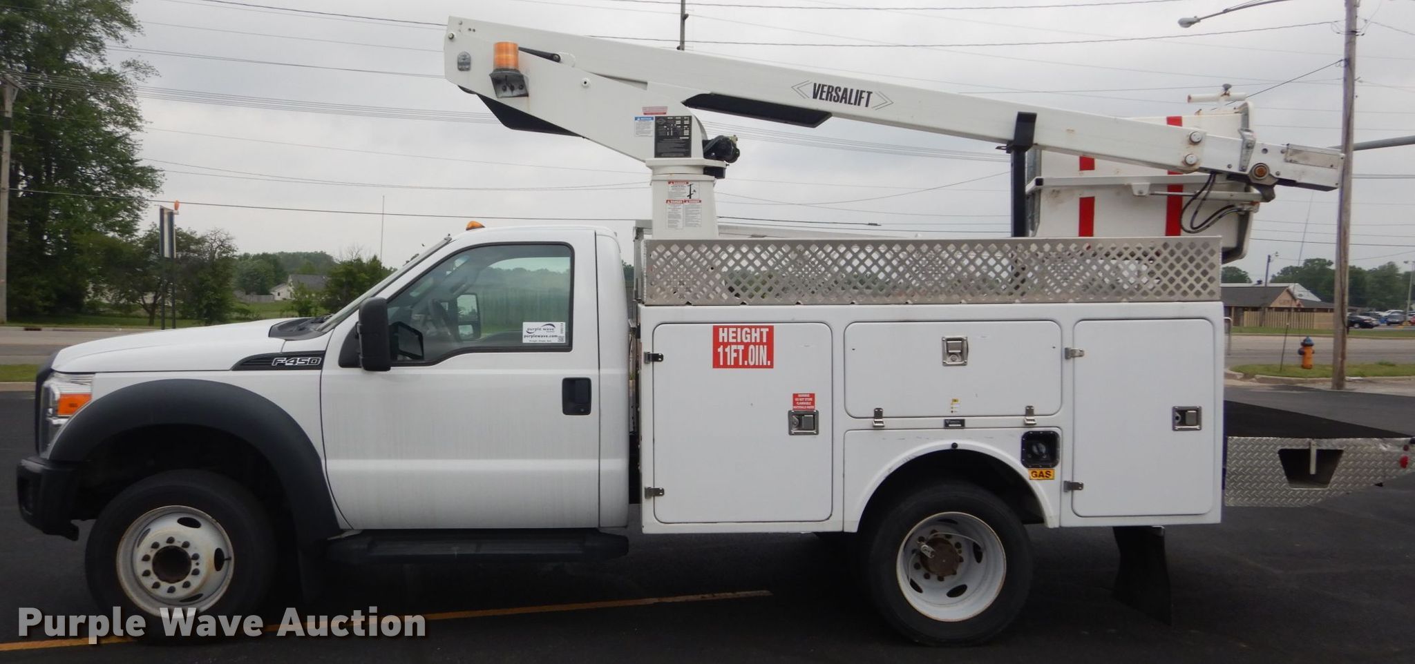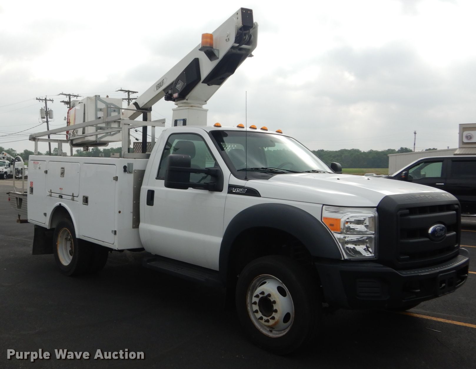 Purple Wave is selling a used Bucket Truck in Indiana. This item is a 2014 Ford F450 Super Duty XL bucket truck with the following: 48,444 miles on odometer