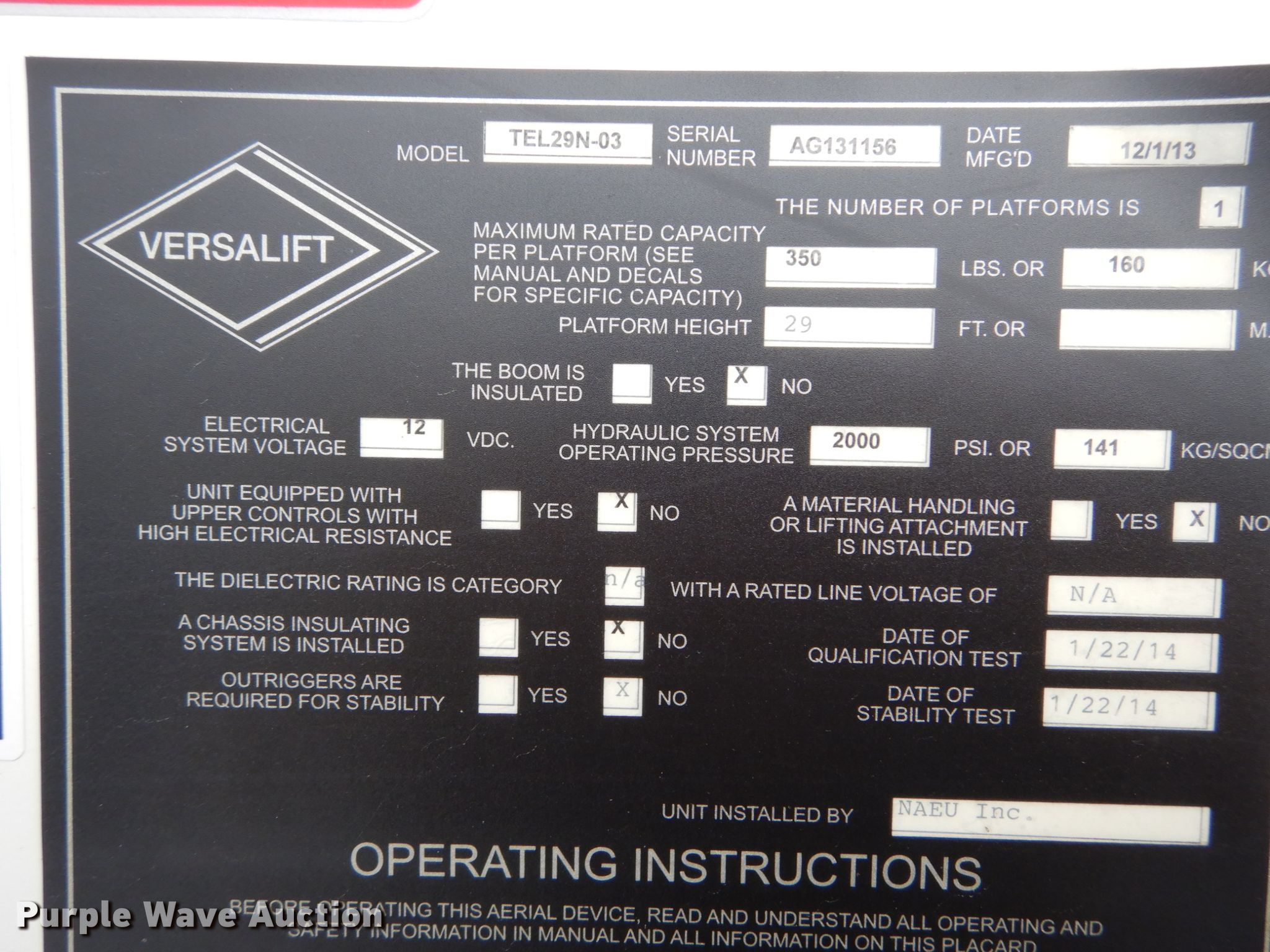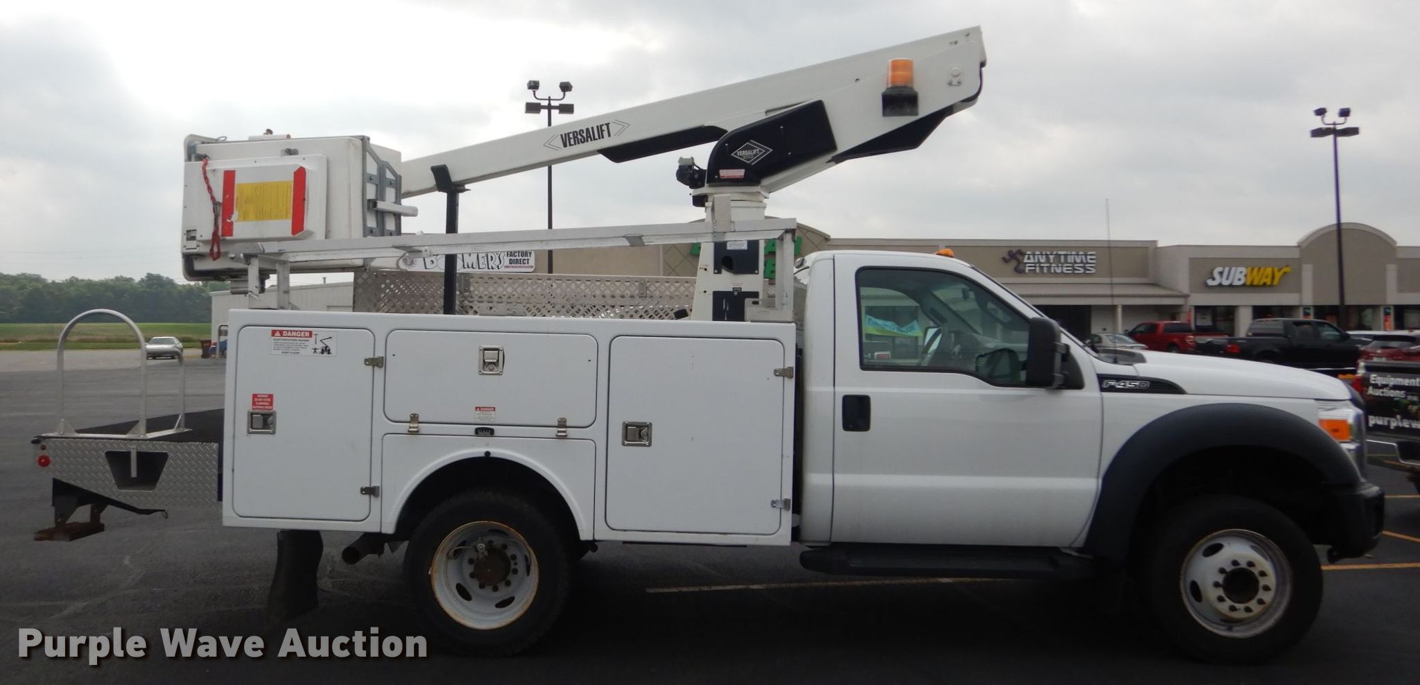 2014 Ford F450 Super Duty XL bucket truck. 48,444 miles on odometer. Engine Displacement: 6.8L V10 SOHC 30V, Cylinders: 10, Fuel type: Gas. Transmission Automatic. Chassis Axles: Single, Suspension: Spring, Brakes: Hydraulic, PTO, GVWR: 16,500 lbs, Wheelbase: 141". Interior AC, Heat. Operational Utility bed Brandex, Serial: 44603, 9', Boom 2014 Versalift TEL29N-03, Serial: AG131156, Mast height: 29', Maximum lift capacity: 350 lbs, Maximum lift height: 29', Boom type: Articulating, Insulated, Telescopic, Man basket, Boom controls Ground.. Tires Size: 225/70R19.5. Massachusetts title. Seller is an Indiana licensed motor vehicle dealer. The buyer may be required to pay sales tax and/or registration fees to the dealer prior to taking possession. Title will be assigned and distributed by the dealer. Please contact the seller for distribution questions. 1FDUF4GY7EEA79739. ABC Truck & Equipment LLC. 941 N Main St Suite B. Bluffton, IN 46714