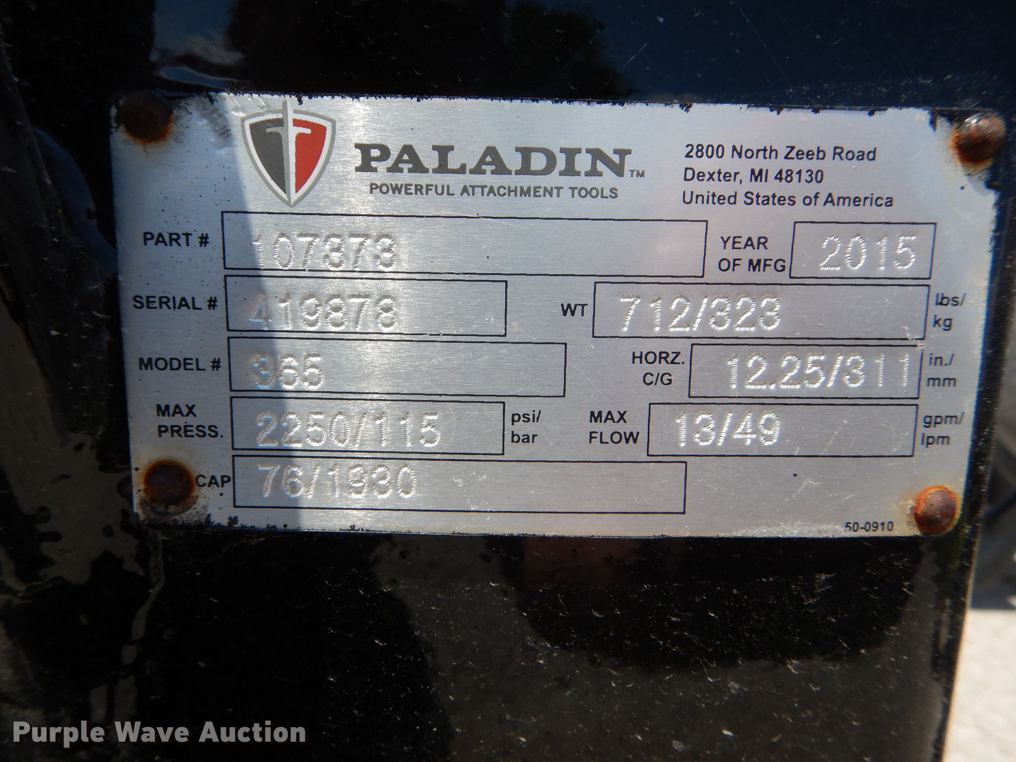 Purple Wave is selling a used Ag Tractor Loader or Attach. in Illinois. This item is a 2015 Bradco 365 backhoe with the following: 12"W bucket, (3) teeth, Outriggers, Serial 419878
