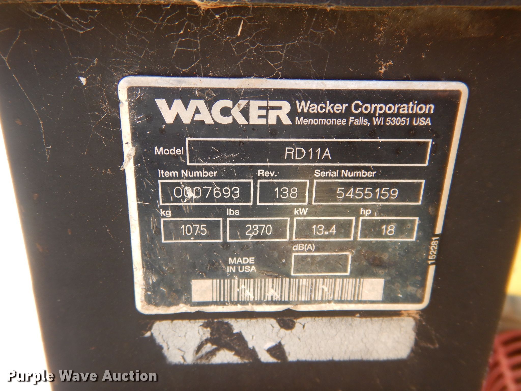 Purple Wave is selling a used Double Drum Roller Compactor in Oklahoma. This item is a Wacker RD11A vibratory double drum roller compactor with the following: Serial: 5455159