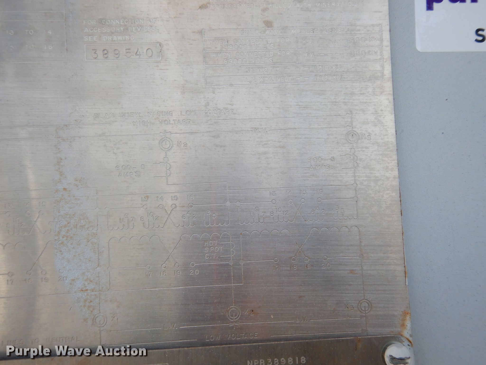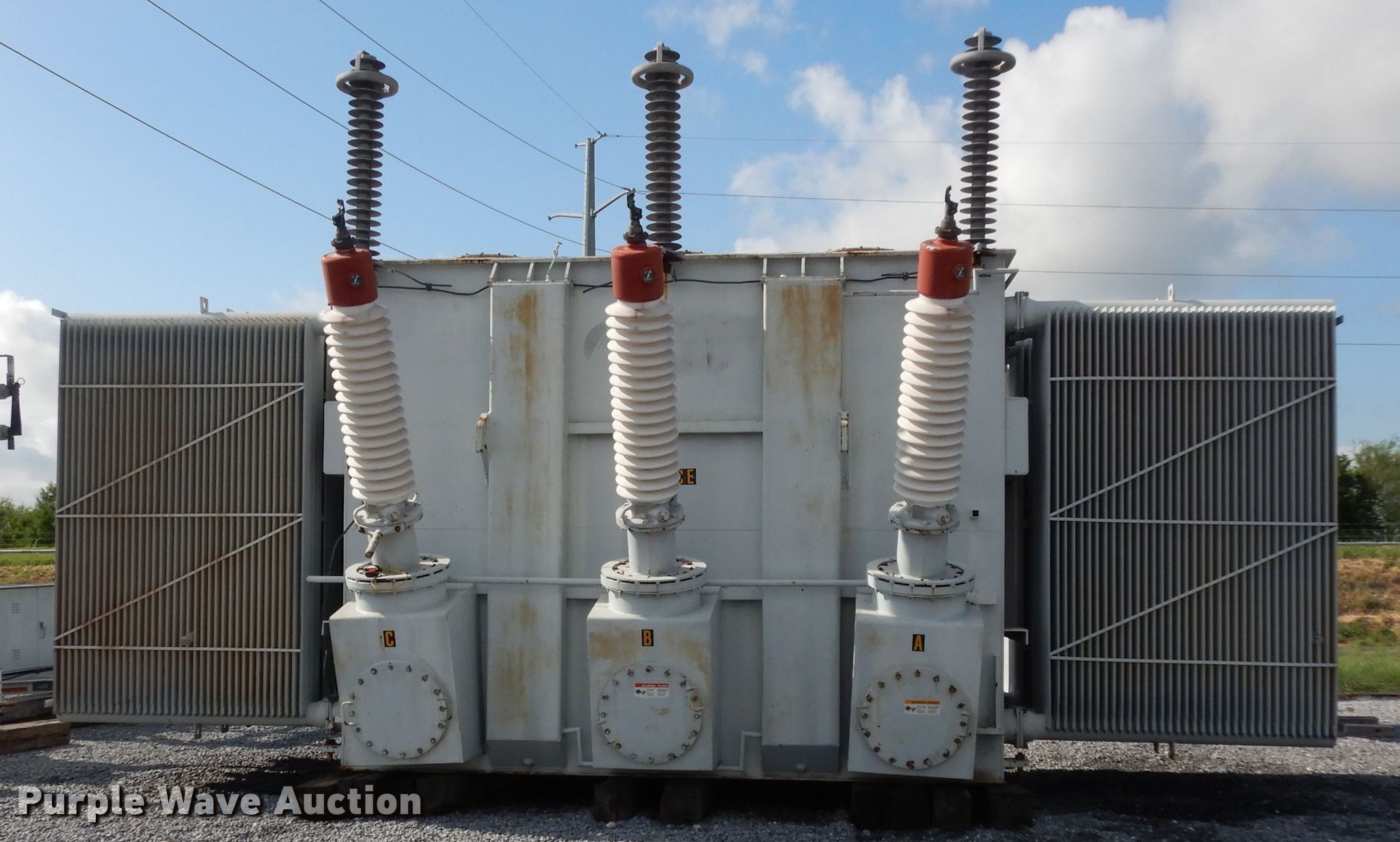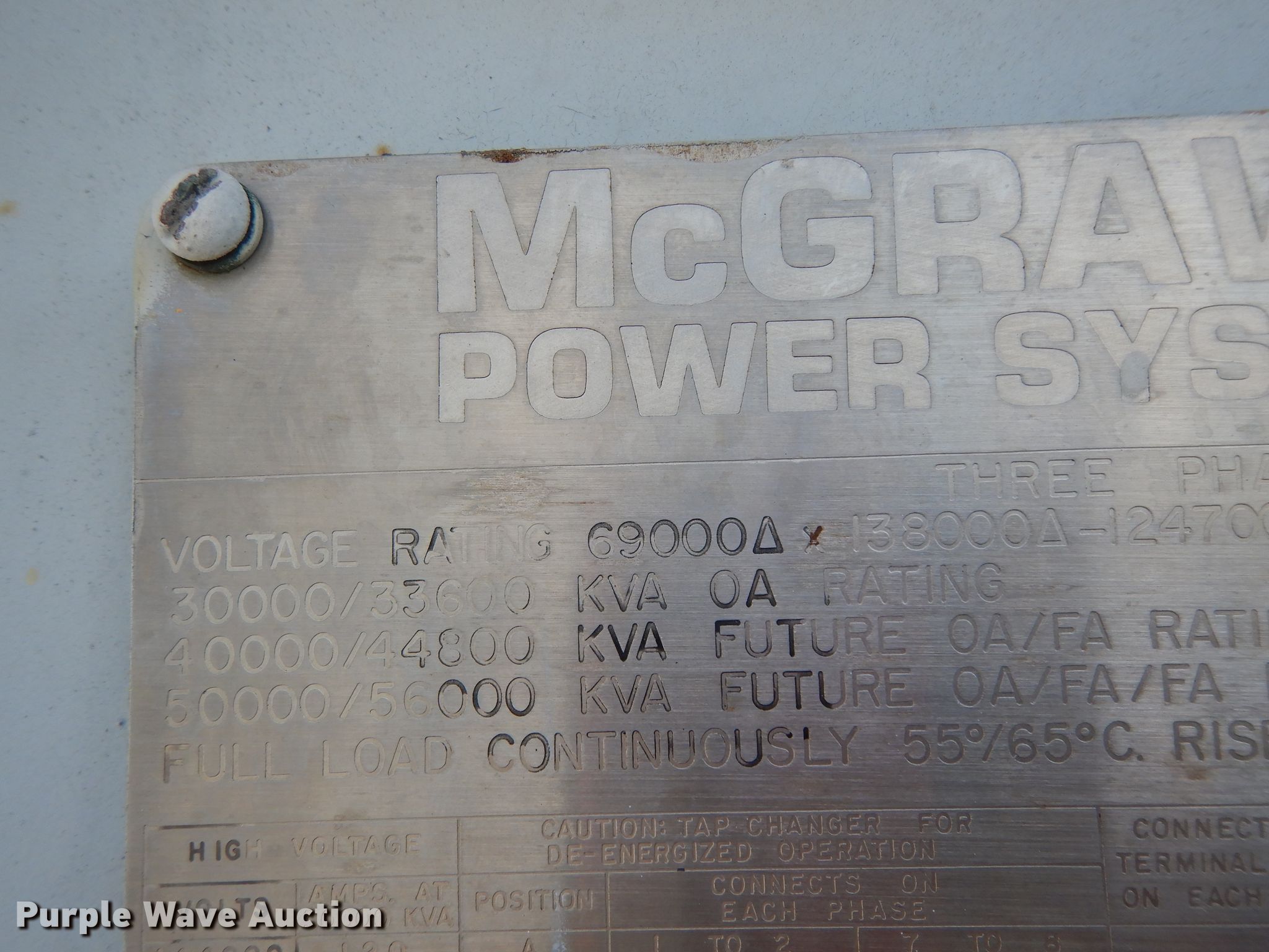 Purple Wave is selling a used Other Industrial or Business in Texas. This item is a McGraw-Edison transformer with the following: 341"L x 159.5"W x 198"H, Three phase, Voltage ratings, 30,000/33,600, 40,000/44,800, 50,000/56,000, 159,750 lbs total weight, Serial C-05840-5-1