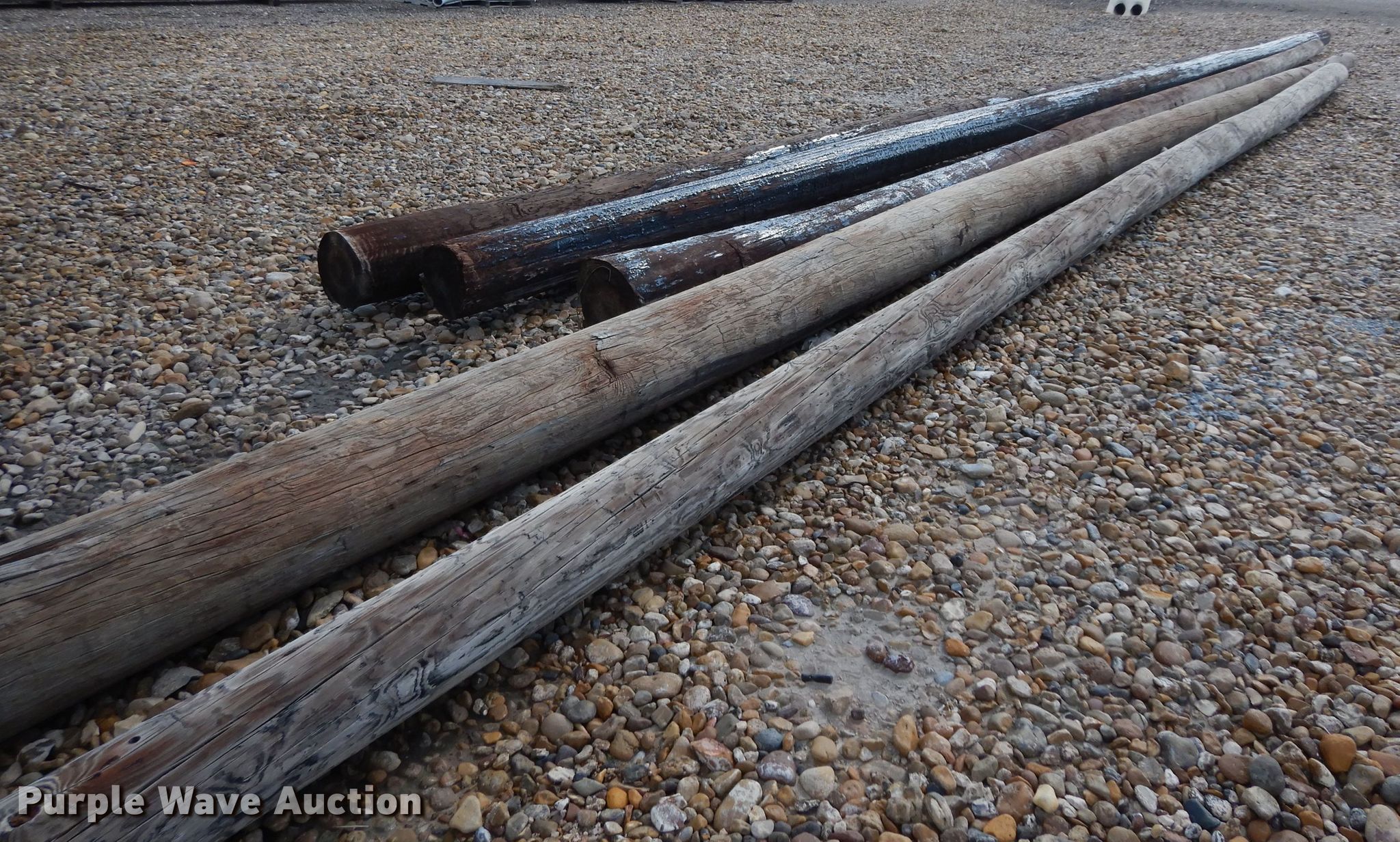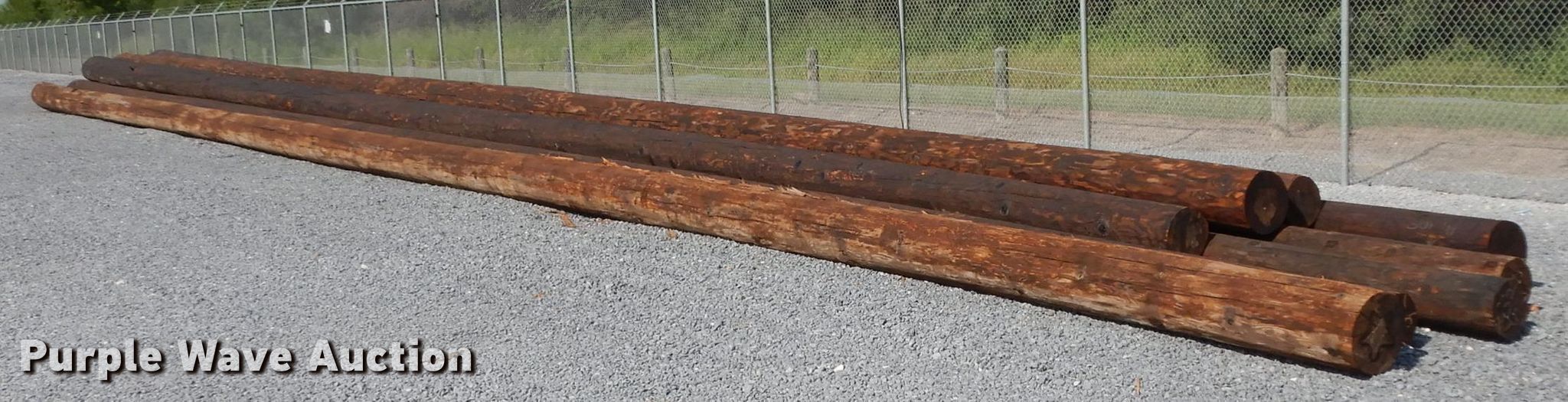 Purple Wave is selling a used Other Industrial or Business in Texas. This item is a Approximately 75 telephone poles with the following: Approx. 14 45'L no. 3 wood oil poles, Approx. 23 45'L no. 4 wood oil poles, Approx. 8 104'7"L no. 3 wood oil poles, Approx. 9 45'8"L galvanized poles, Approx. 9 44'7"L aluminum poles, Pads, L-brackets for lights, Approx. 3 35'L concrete poles, Approx. 5 27'7"L aluminum poles, Approx. 14 20'3"L concrete poles