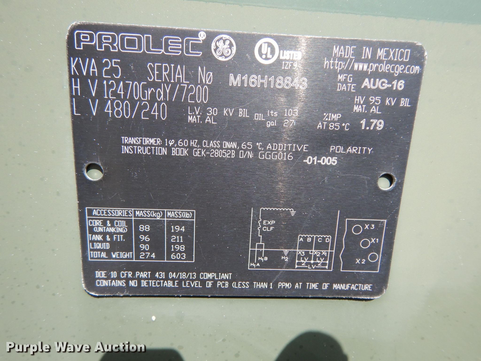 (3) Prolec stainless steel transformers. 25 kVA, Three phase, 480/240V, ID# 802081. Hunt Utility - Open inspection July 16. 3801 S Mayberry Rd. Mission, TX 78572