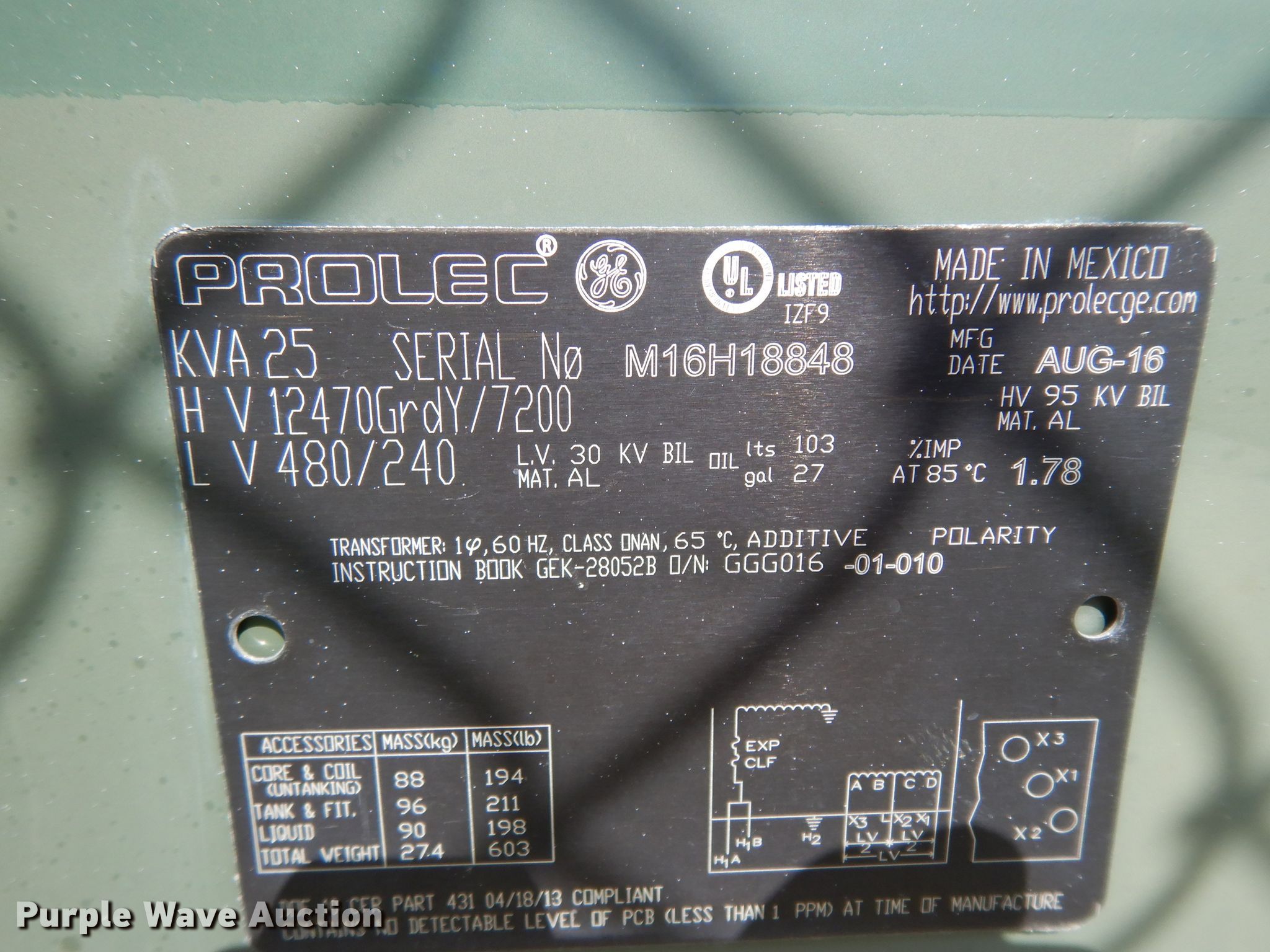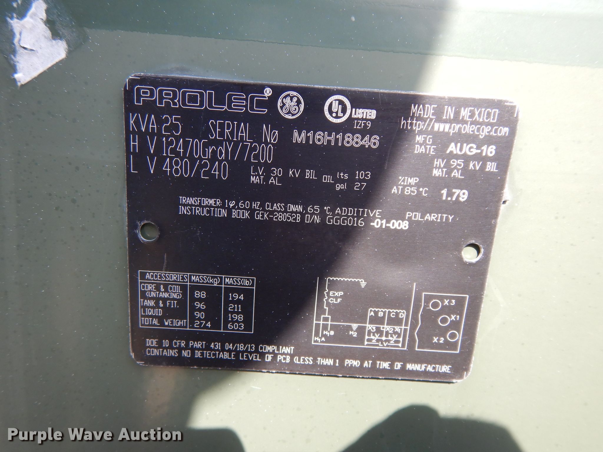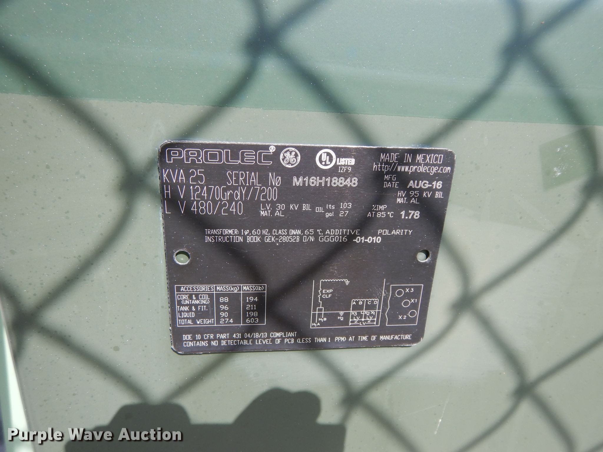 (3) Prolec stainless steel transformers. 25 kVA, Three phase, 480/240V, ID# 802081. Hunt Utility - Open inspection July 16. 3801 S Mayberry Rd. Mission, TX 78572