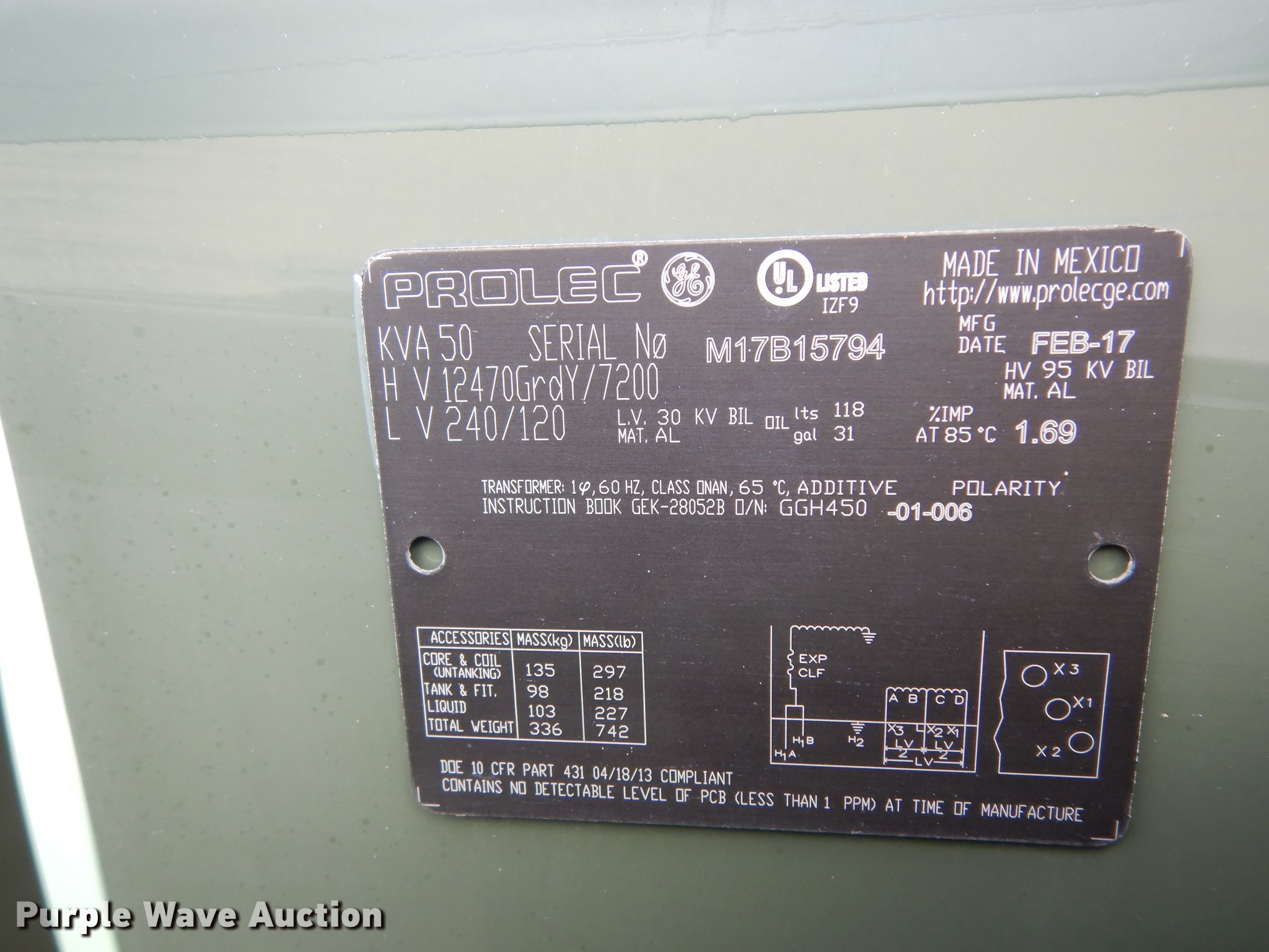 Purple Wave is selling a used Other Industrial or Business in Texas. This item is a (3) Prolec stainless steel transformers with the following: 50 kVA, Single phase, 240/120V, ID# 801911
