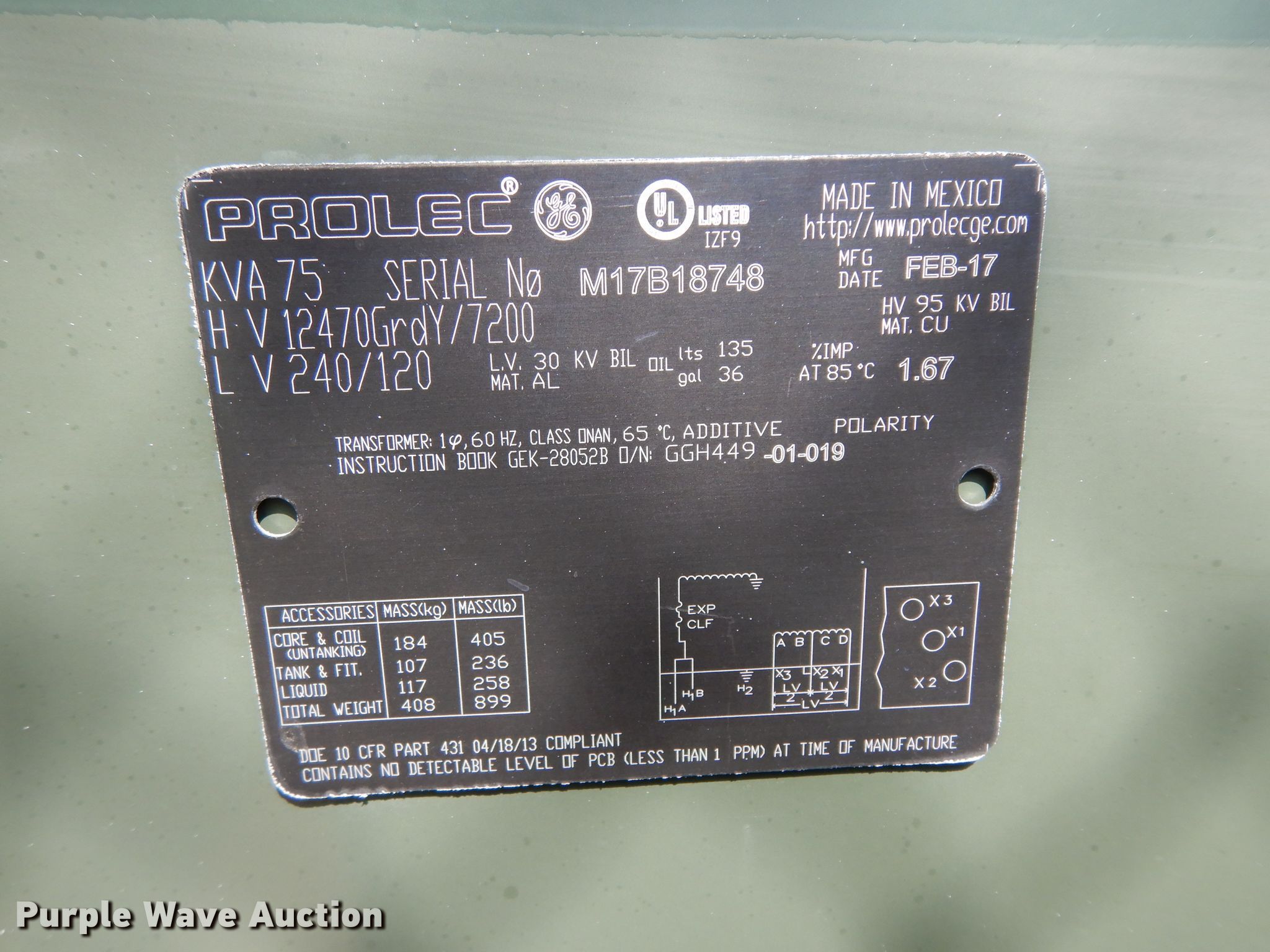 Purple Wave is selling a used Other Industrial or Business in Texas. This item is a (3) Prolec stainless steel transformers with the following: 75 kVA, Single phase, 240/120V, ID# 801901