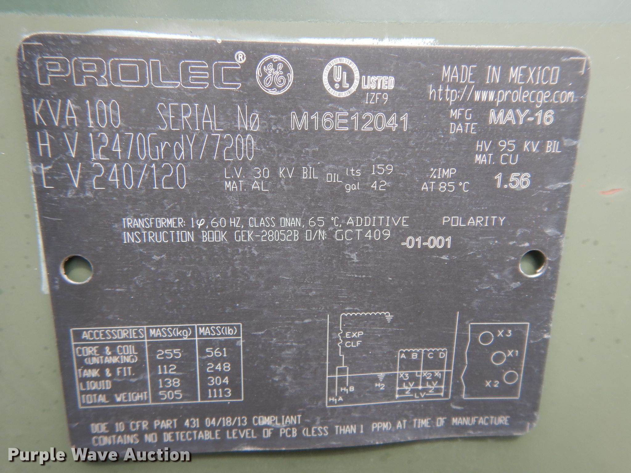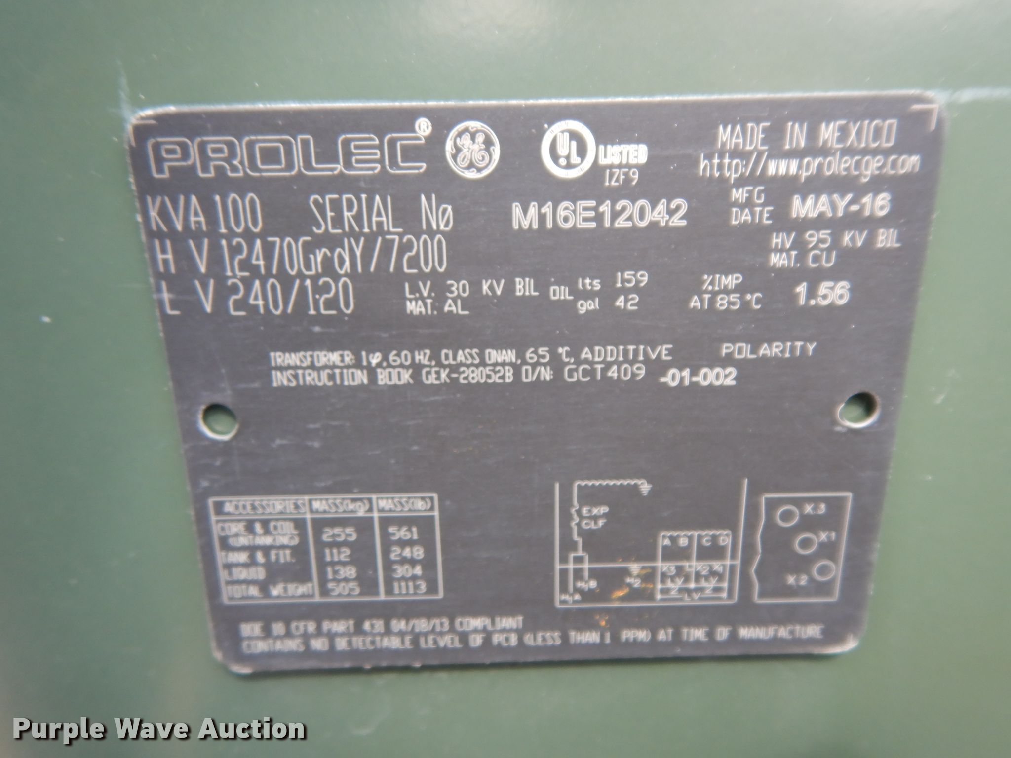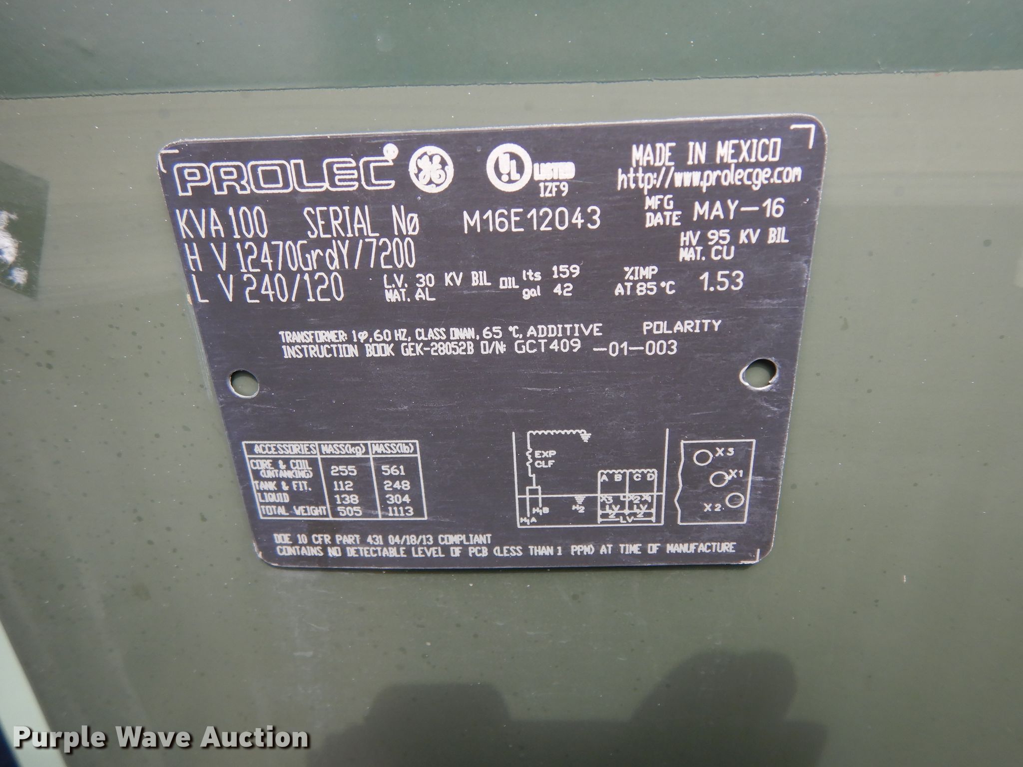 Purple Wave is selling a used Other Industrial or Business in Texas. This item is a (3) Prolec stainless steel transformers with the following: 100 kVA, Single phase, 240/120V, ID# 801902