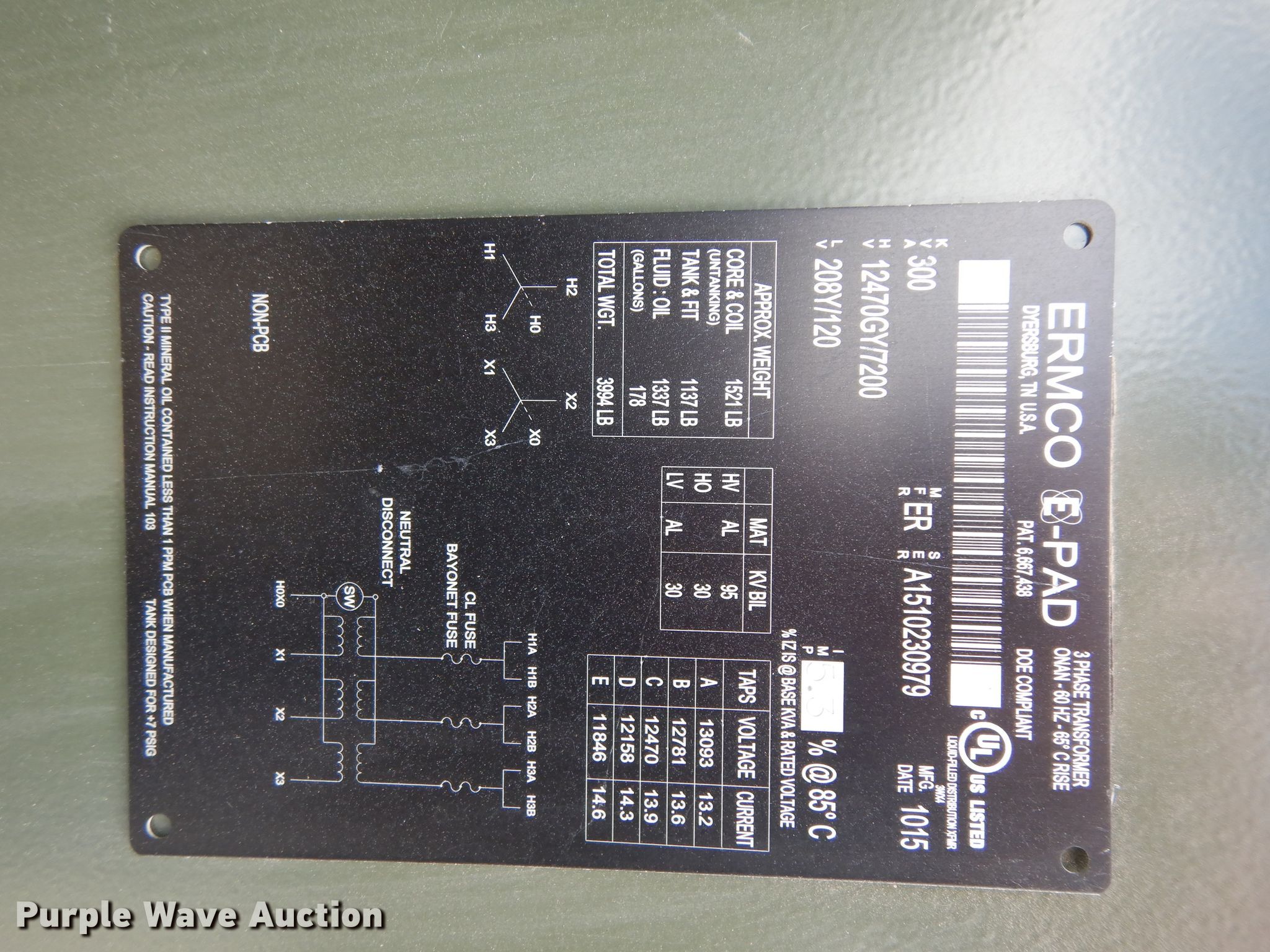 Purple Wave is selling a used Other Industrial or Business in Texas. This item is a 2015 Ermco transformer with the following: 300 kVA, Three phase, 208Y/120V, ID# 800657