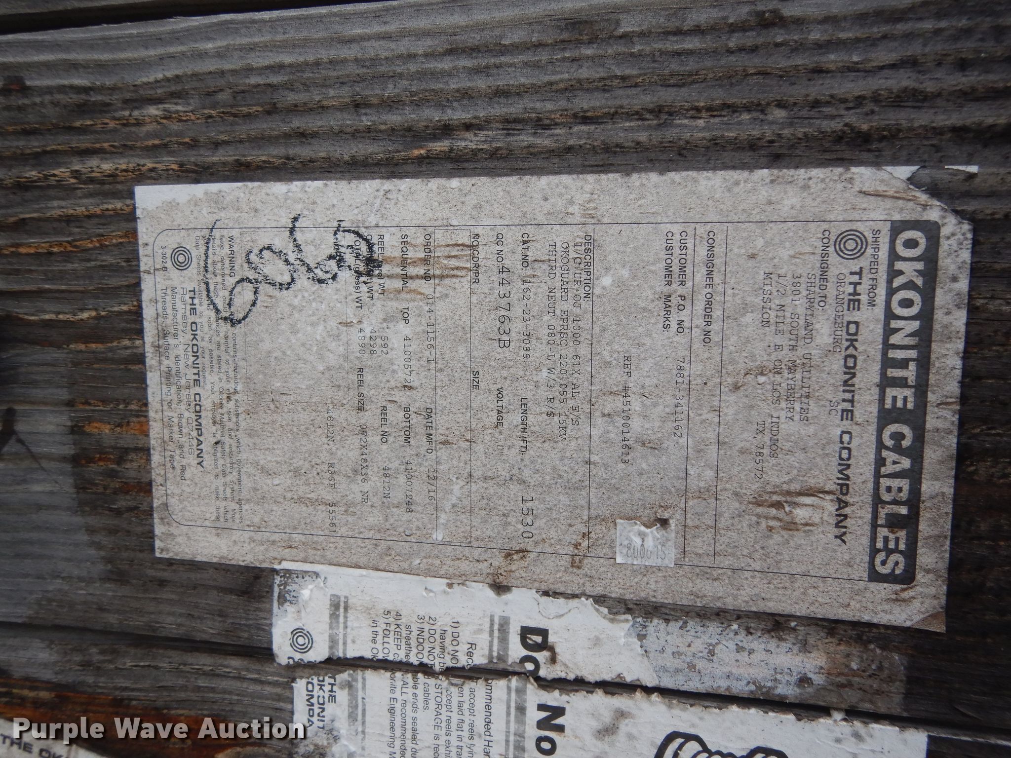 (10) reels of cable has sold in Mission, Texas for $20350. Item HC9648 sold on July 23rd, 2020.