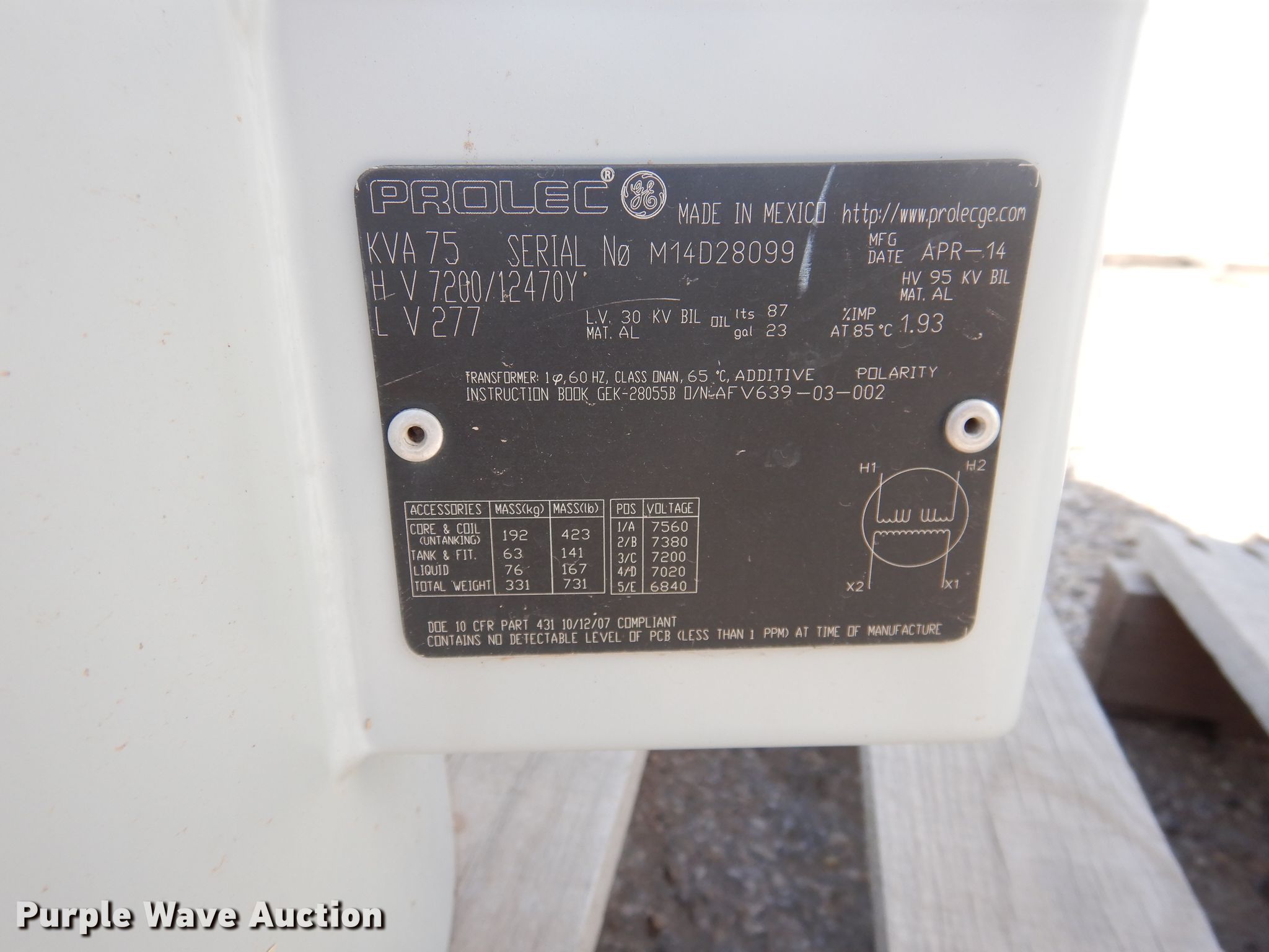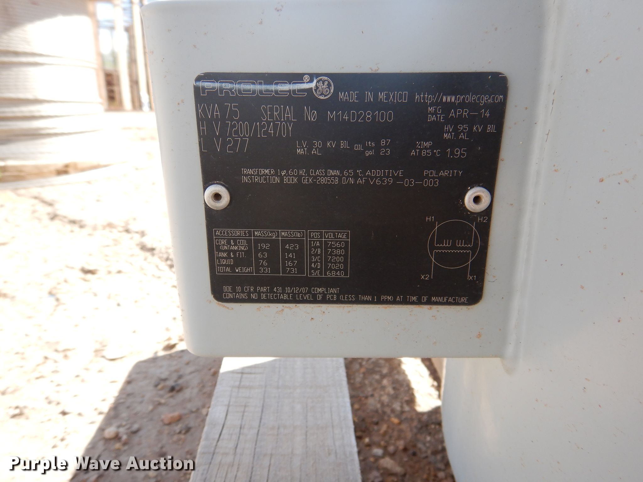 Purple Wave is selling a used Other Industrial or Business in Texas. This item is a (3) Prolec transformers with the following: 75 kVA, Single phase