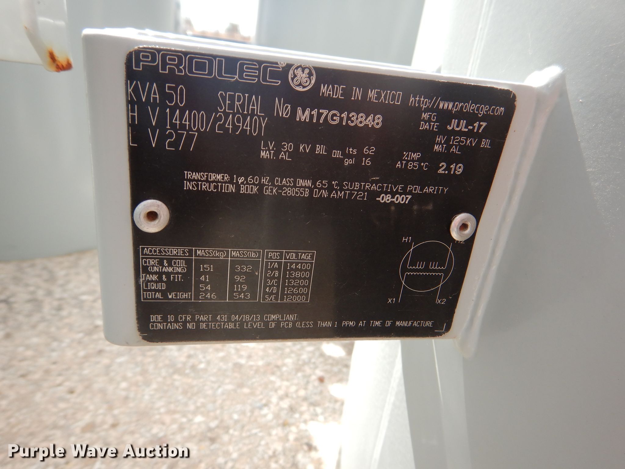 Purple Wave is selling a used Other Industrial or Business in Texas. This item is a (6) transformers with the following: 50 kVA, Single phase