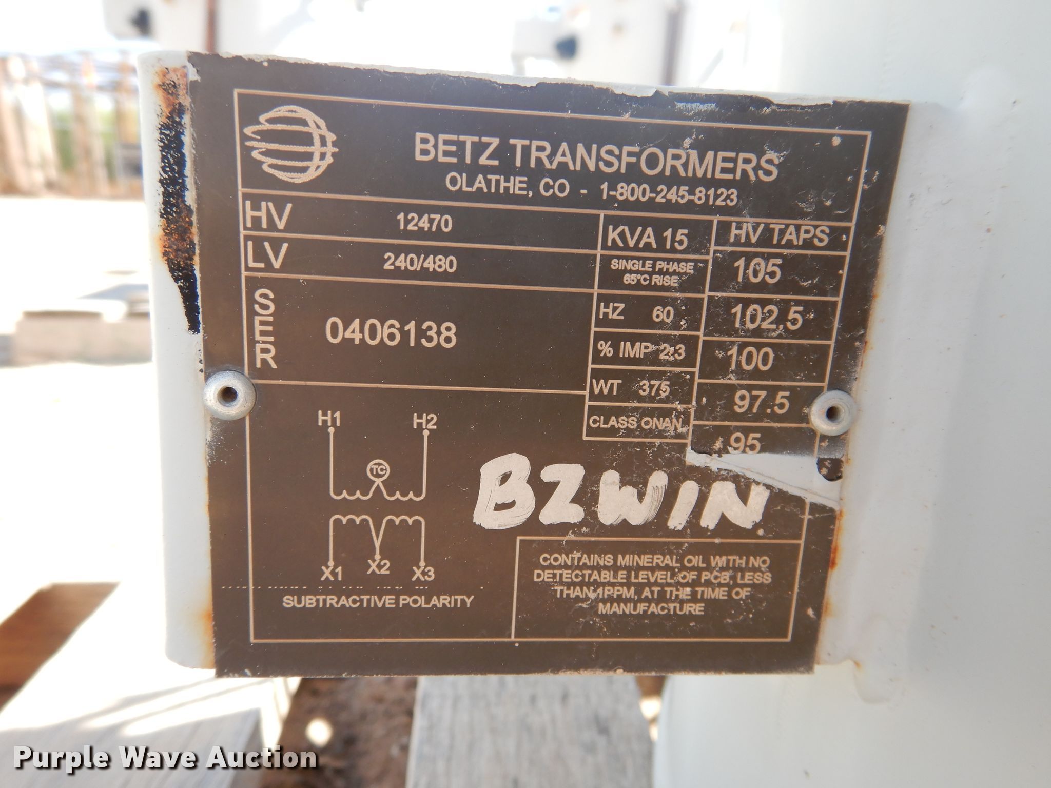 Purple Wave is selling a used Other Industrial or Business in Texas. This item is a (6) transformers with the following: 15 kVA, Three phase