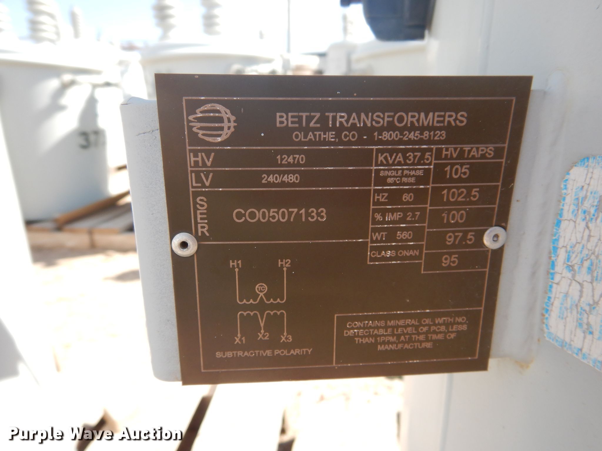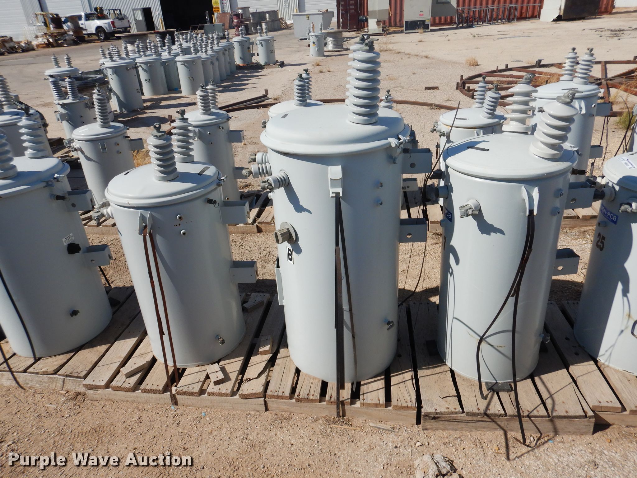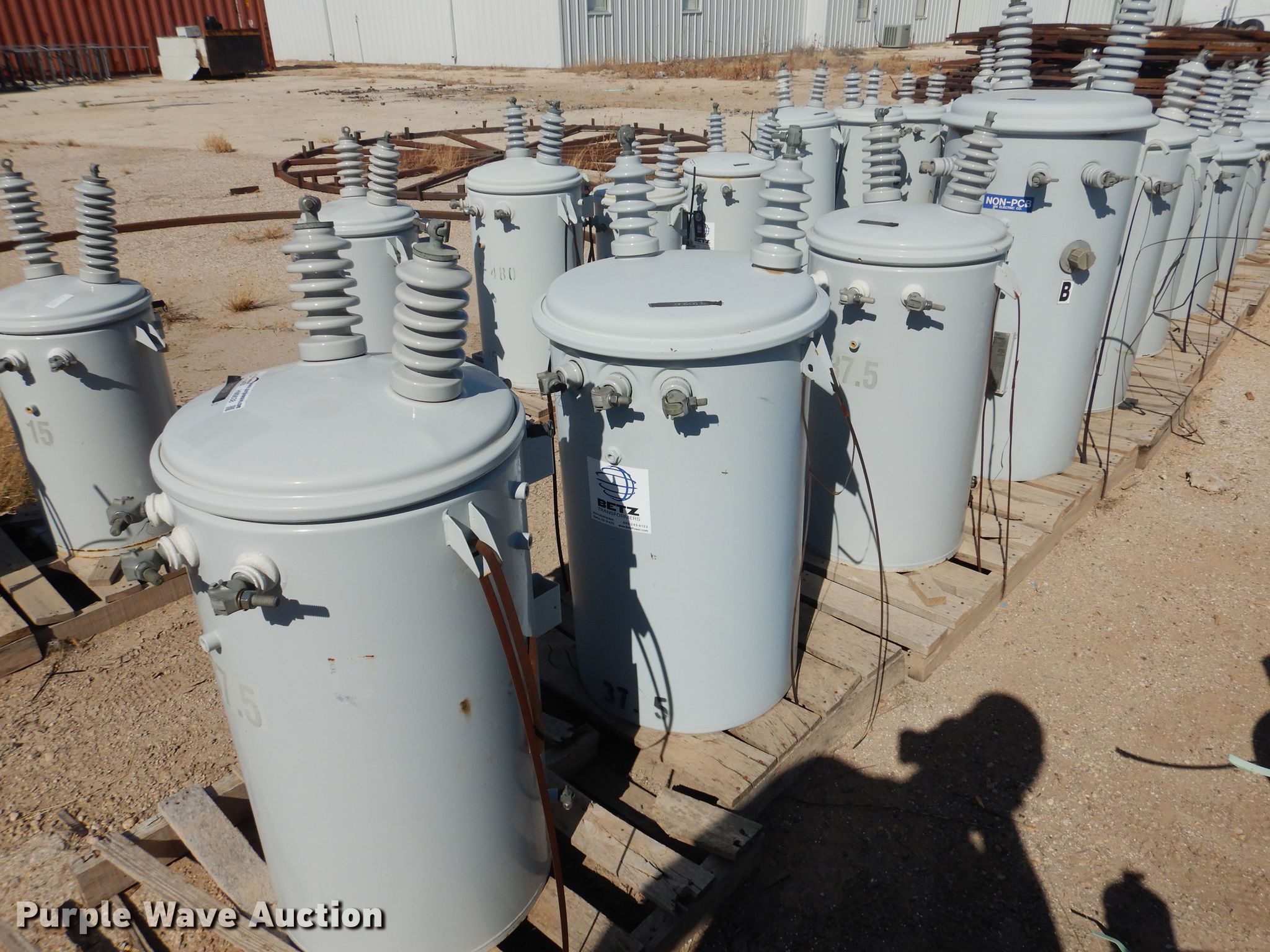 Purple Wave is selling a used Other Industrial or Business in Texas. This item is a (5) transformers with the following: (3) 37.5 kVA, Single phase, (2) 37 kVA, Single phase