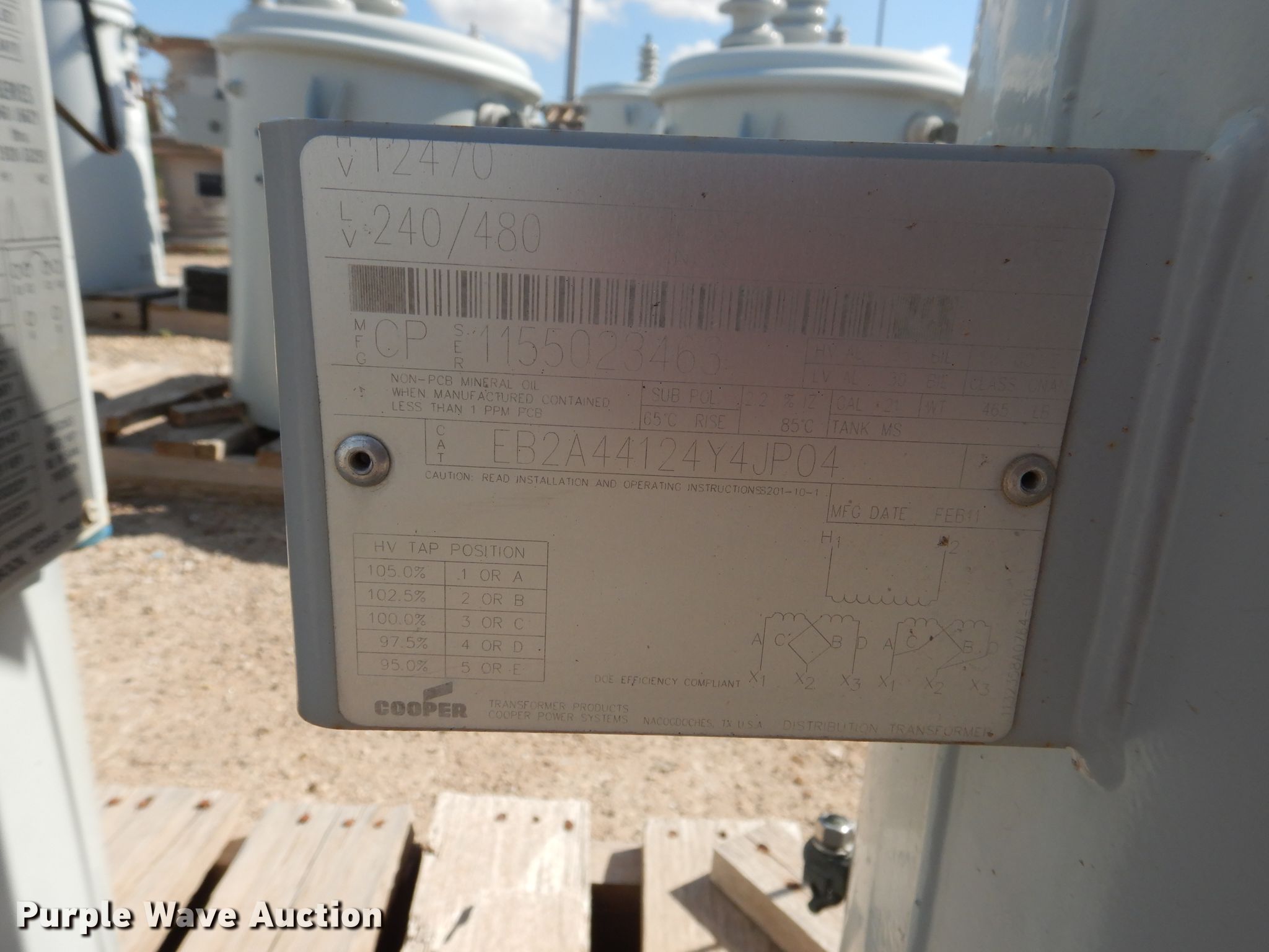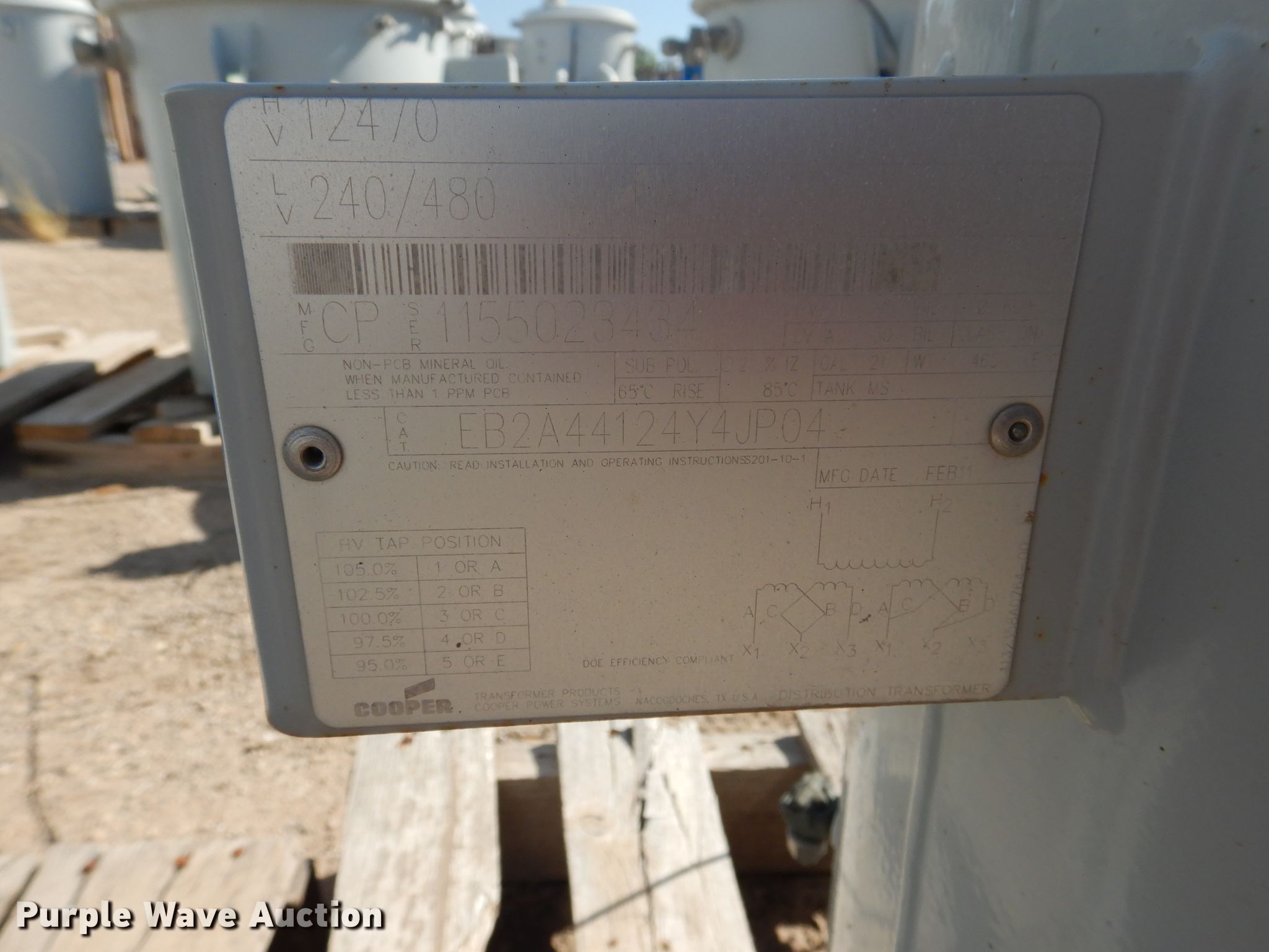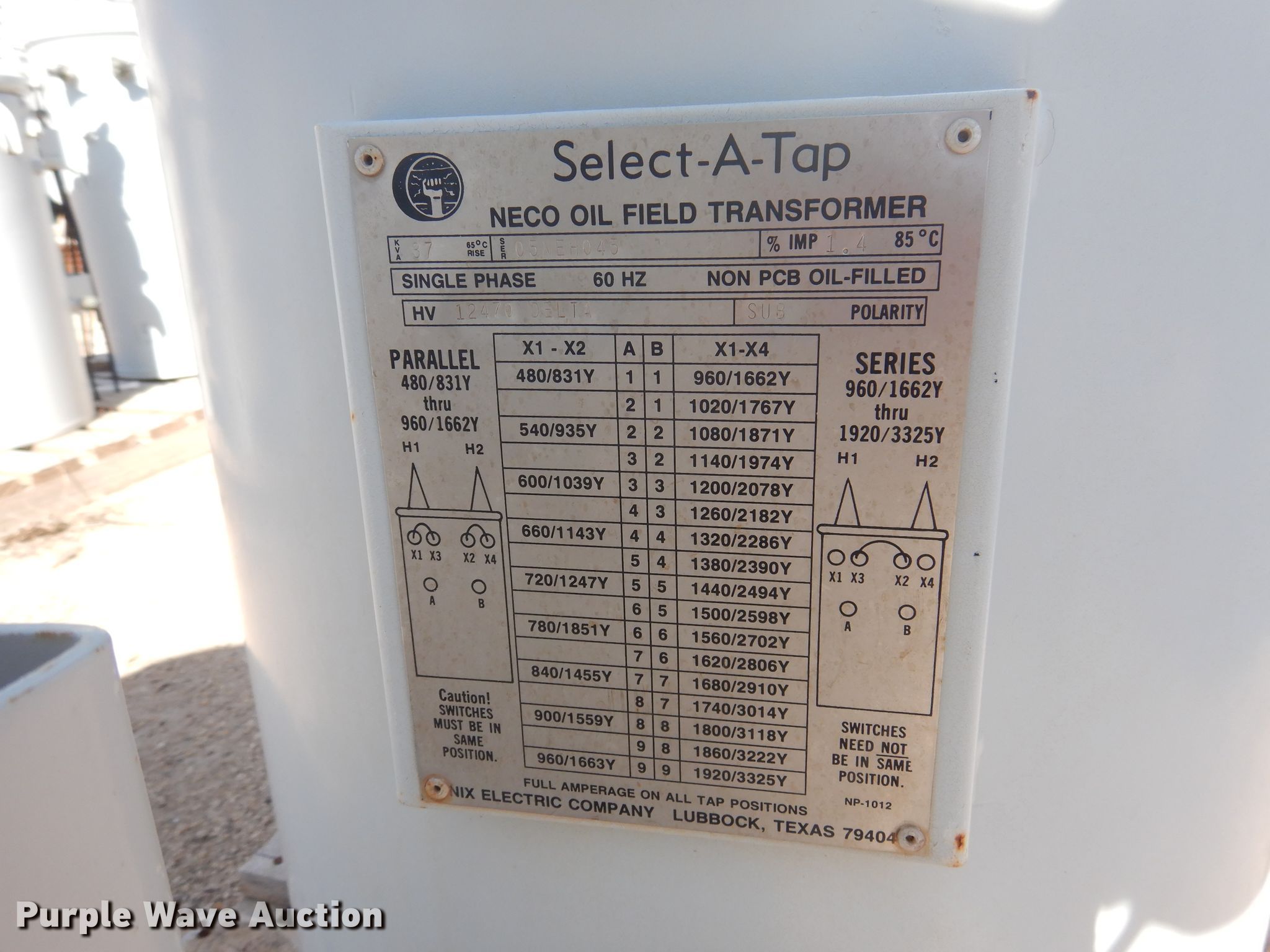 Purple Wave is selling a used Other Industrial or Business in Texas. This item is a (5) transformers with the following: (3) 37.5 kVA, Single phase, (2) 37 kVA, Single phase