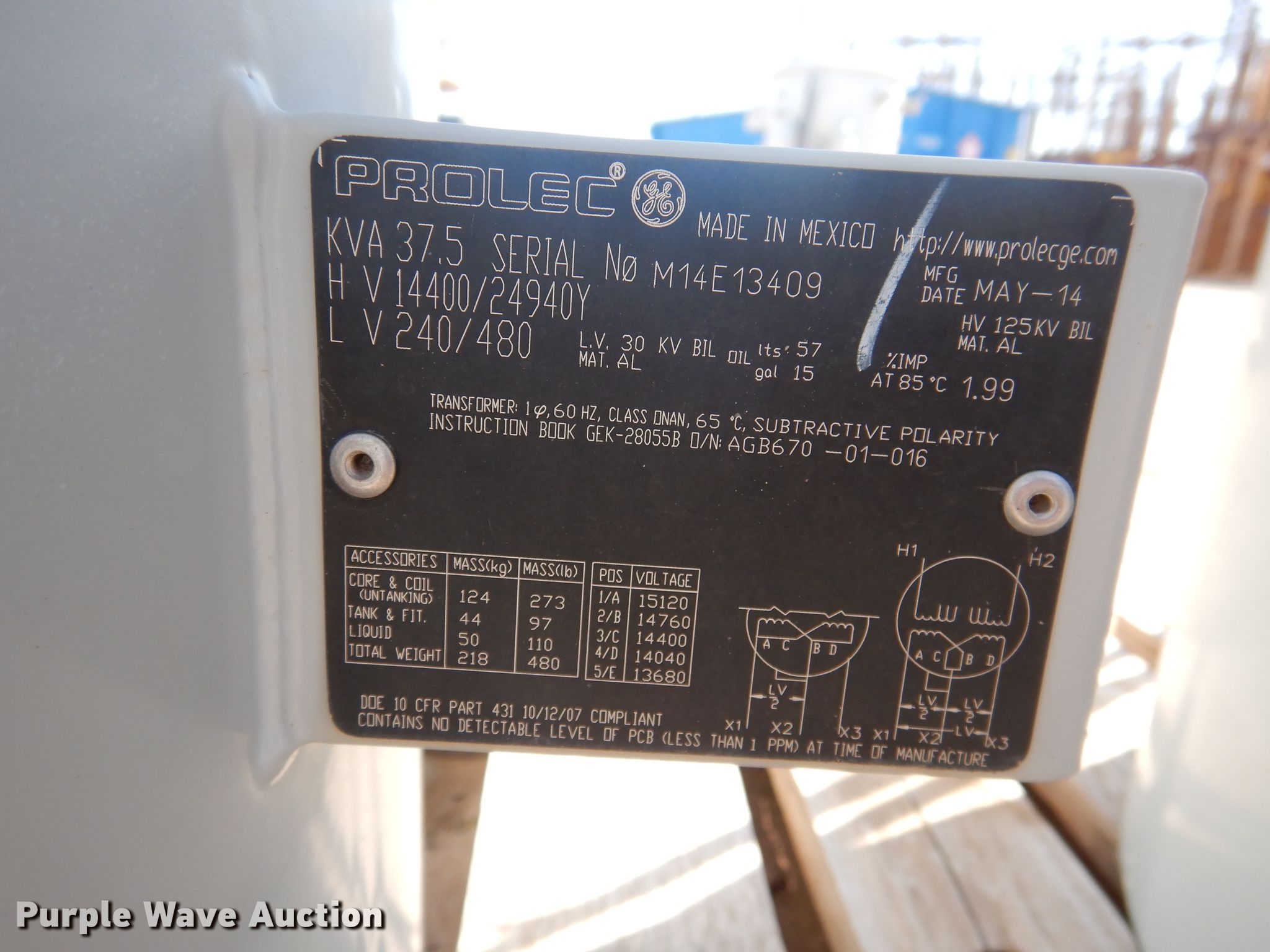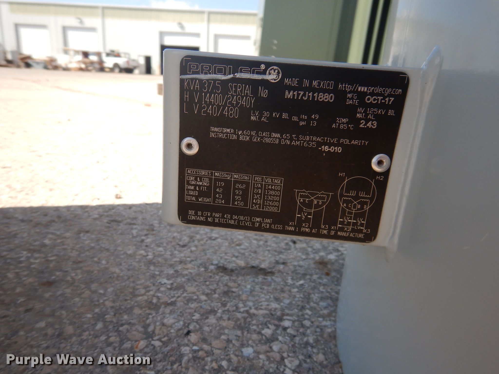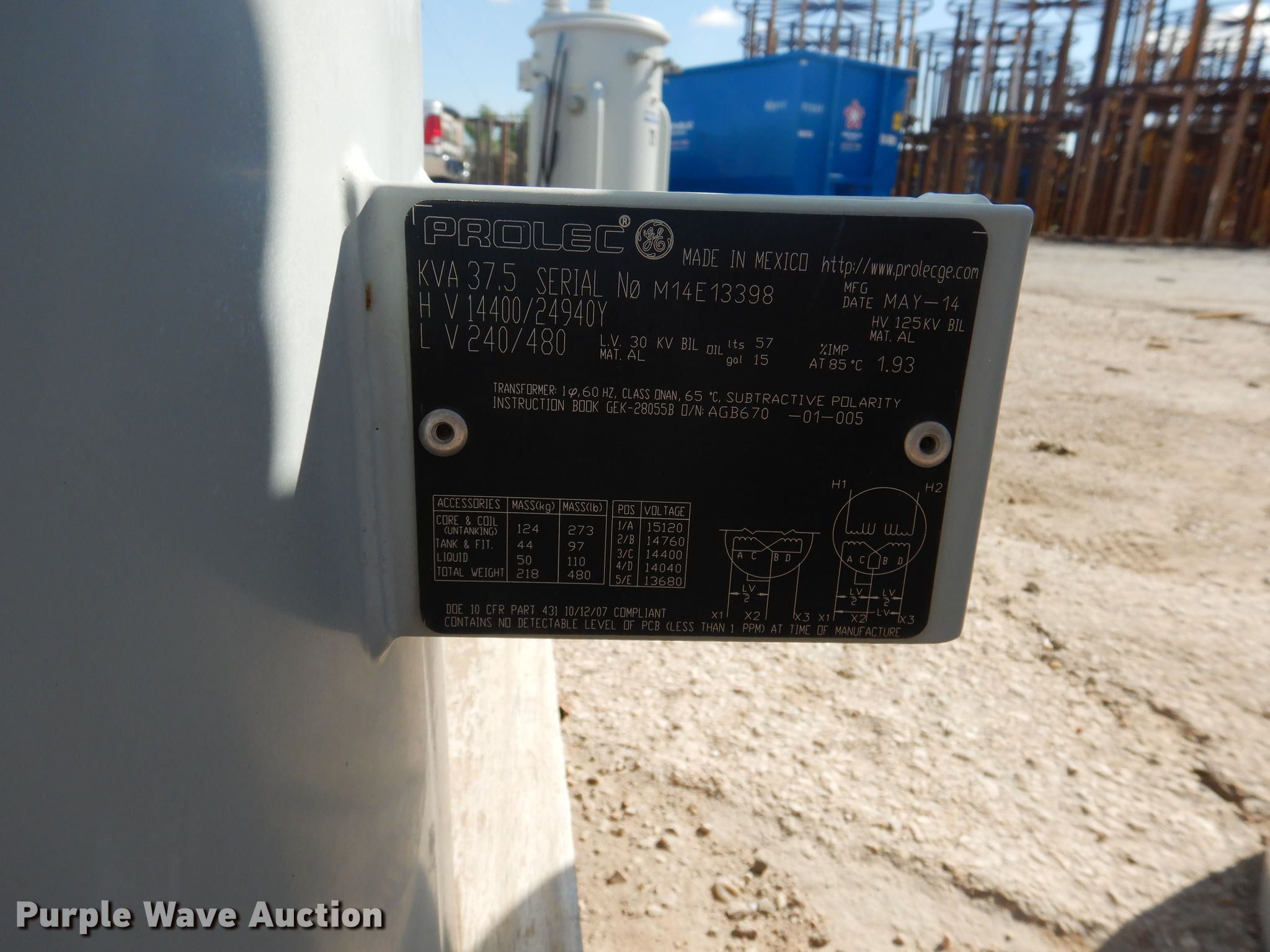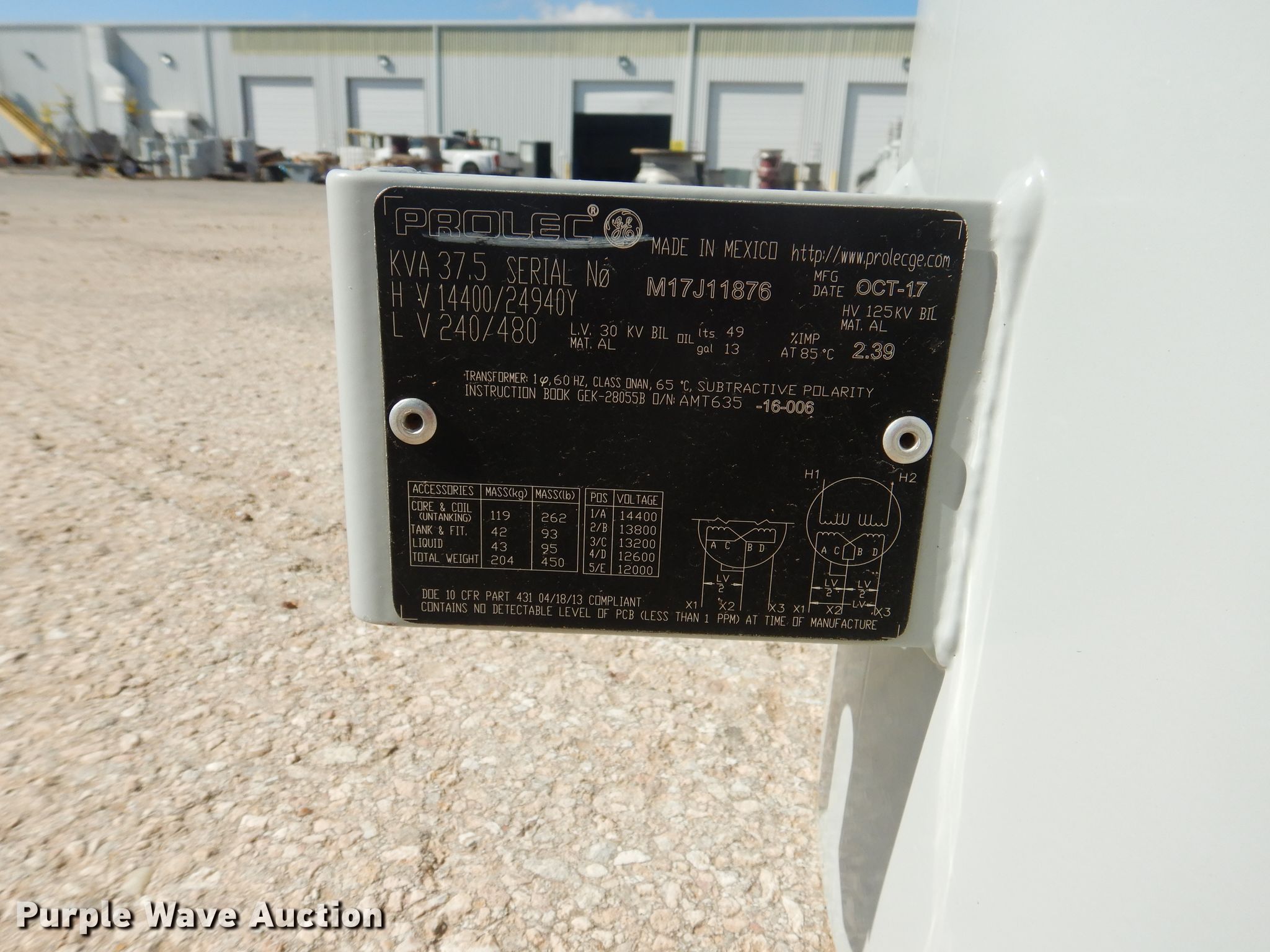 Purple Wave is selling a used Other Industrial or Business in Texas. This item is a (5) Prolec transformers with the following: 37.5 kVA, Single phase