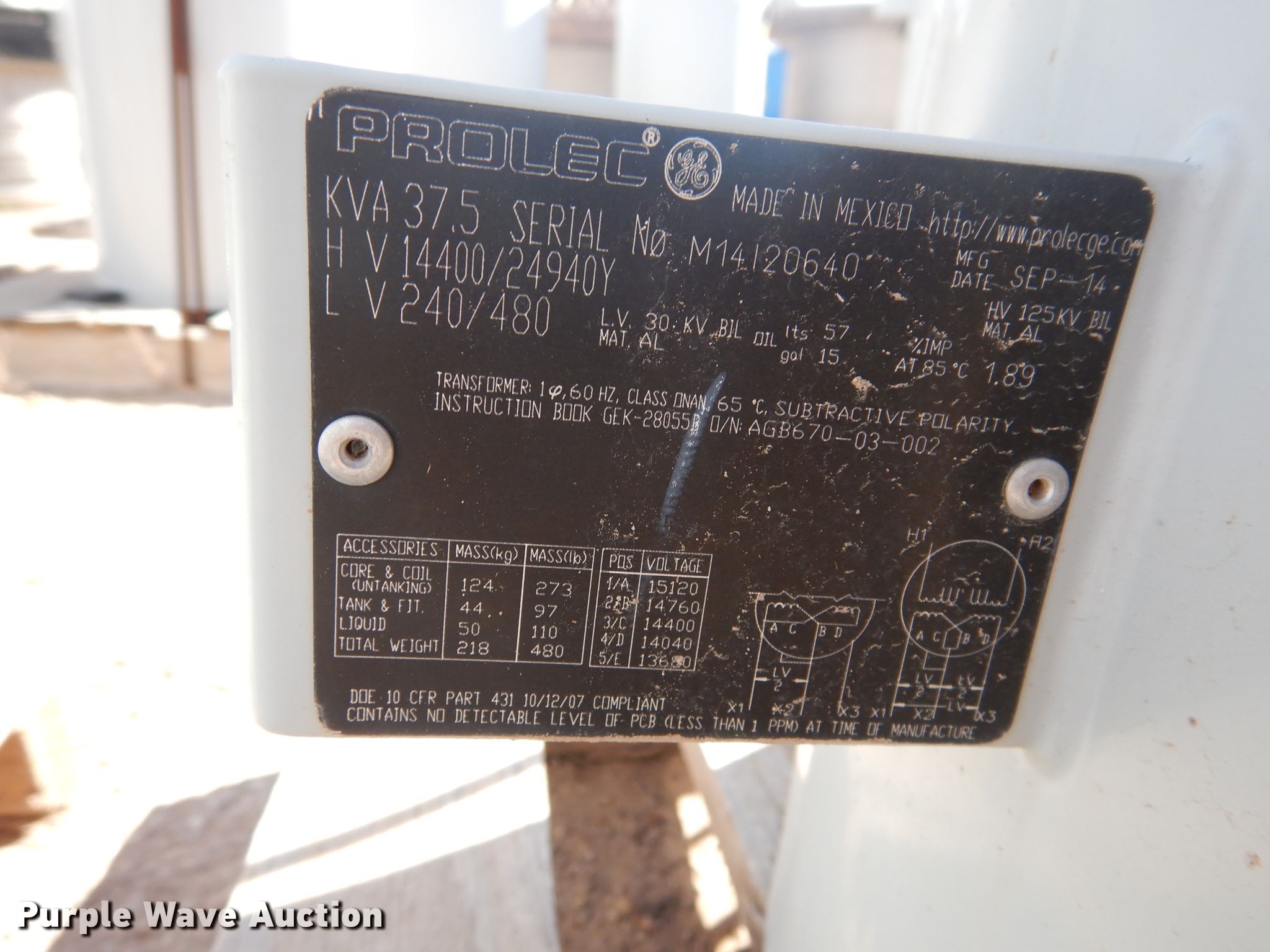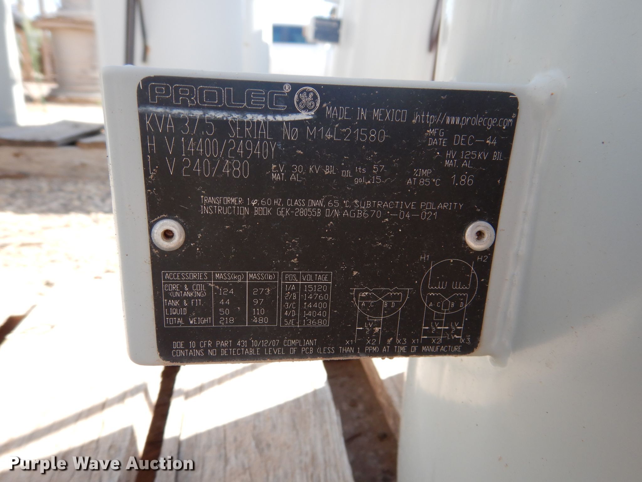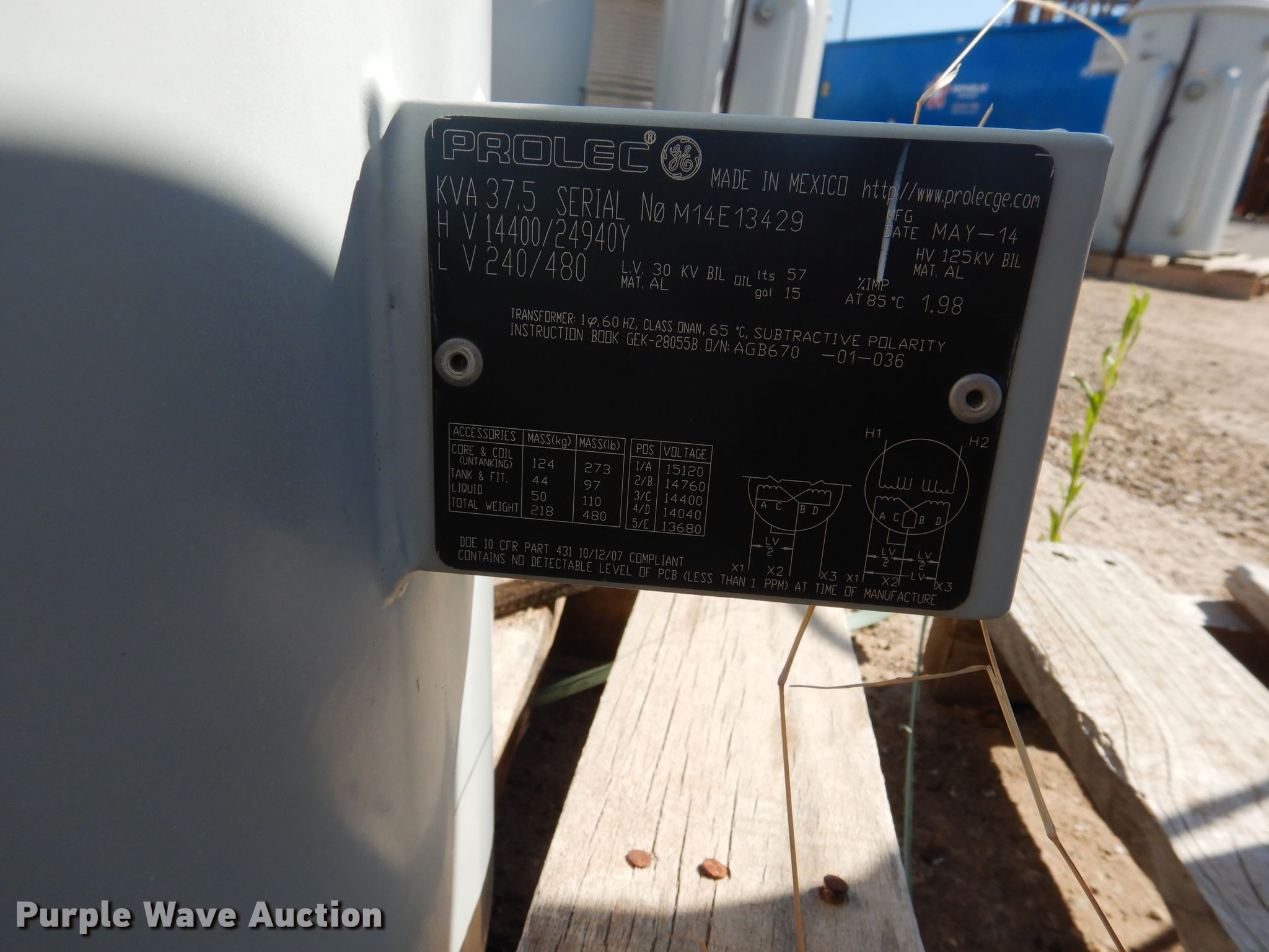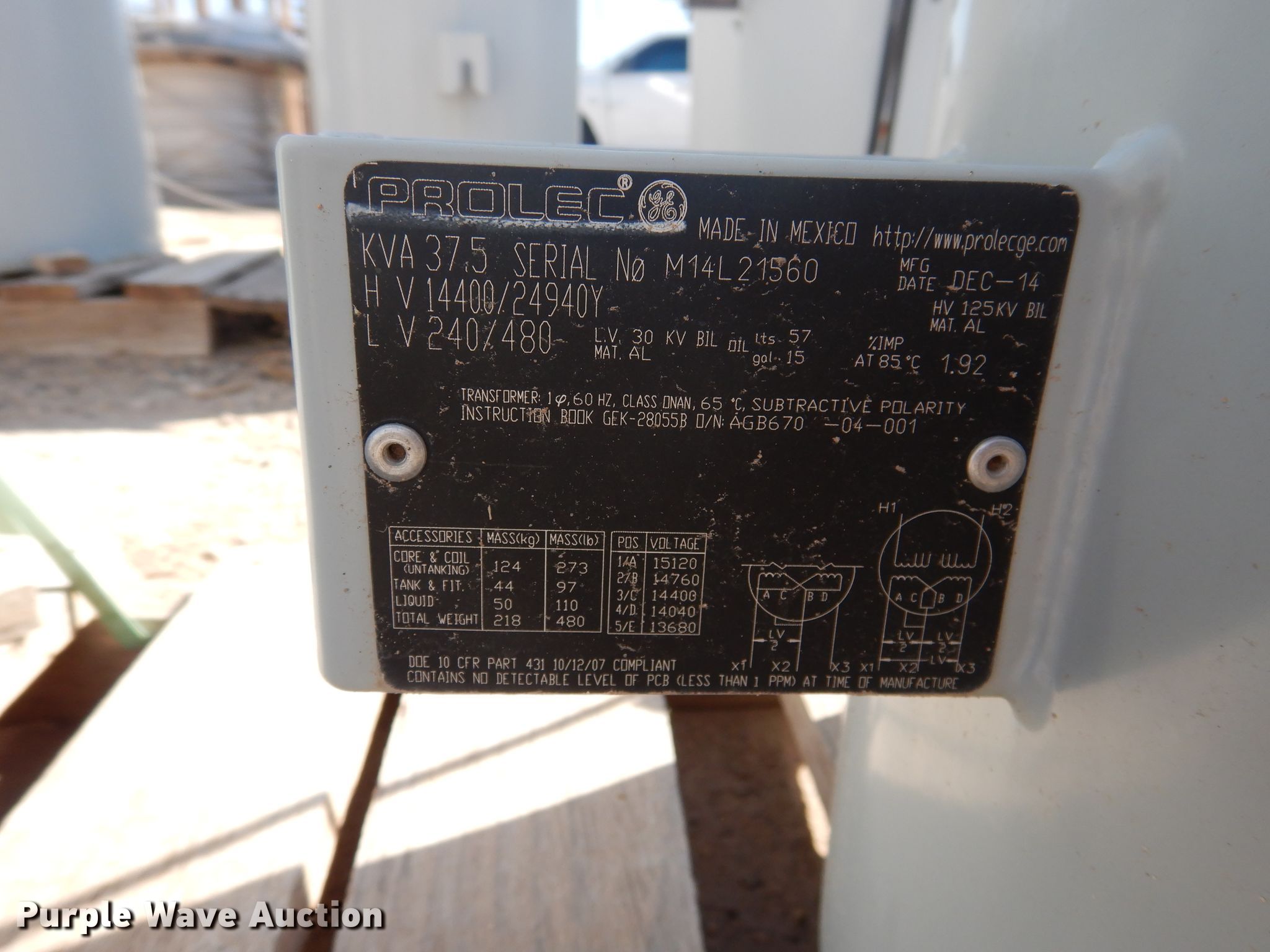 Purple Wave is selling a used Other Industrial or Business in Texas. This item is a (5) Prolec transformers with the following: 37.5 kVA, Single phase