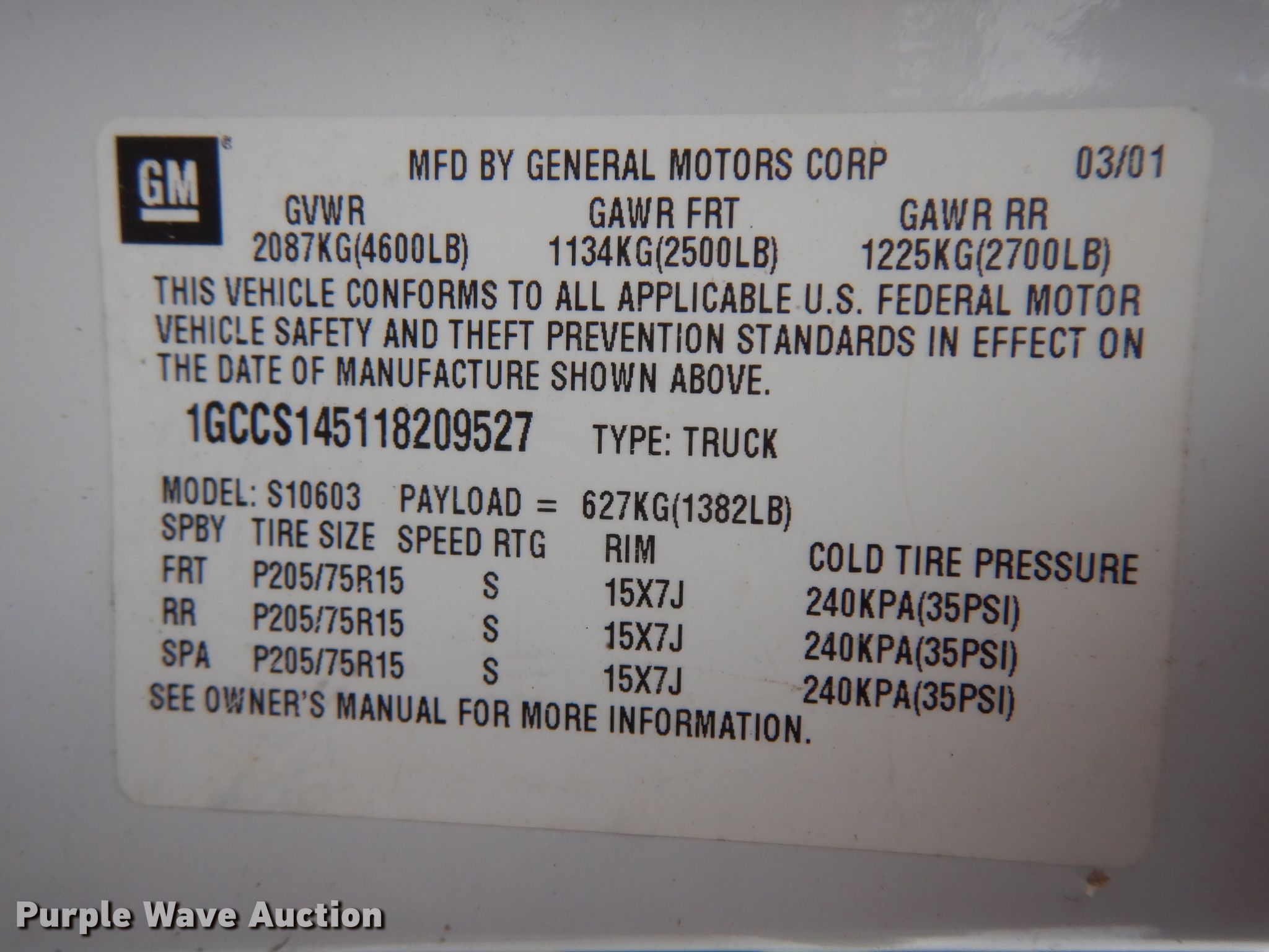 Purple Wave is selling a used Compact Pickup or Van in South Dakota. This item is a 2001 Chevrolet S10 pickup truck with the following: 87,776 miles on odometer, Unit #: 51-1