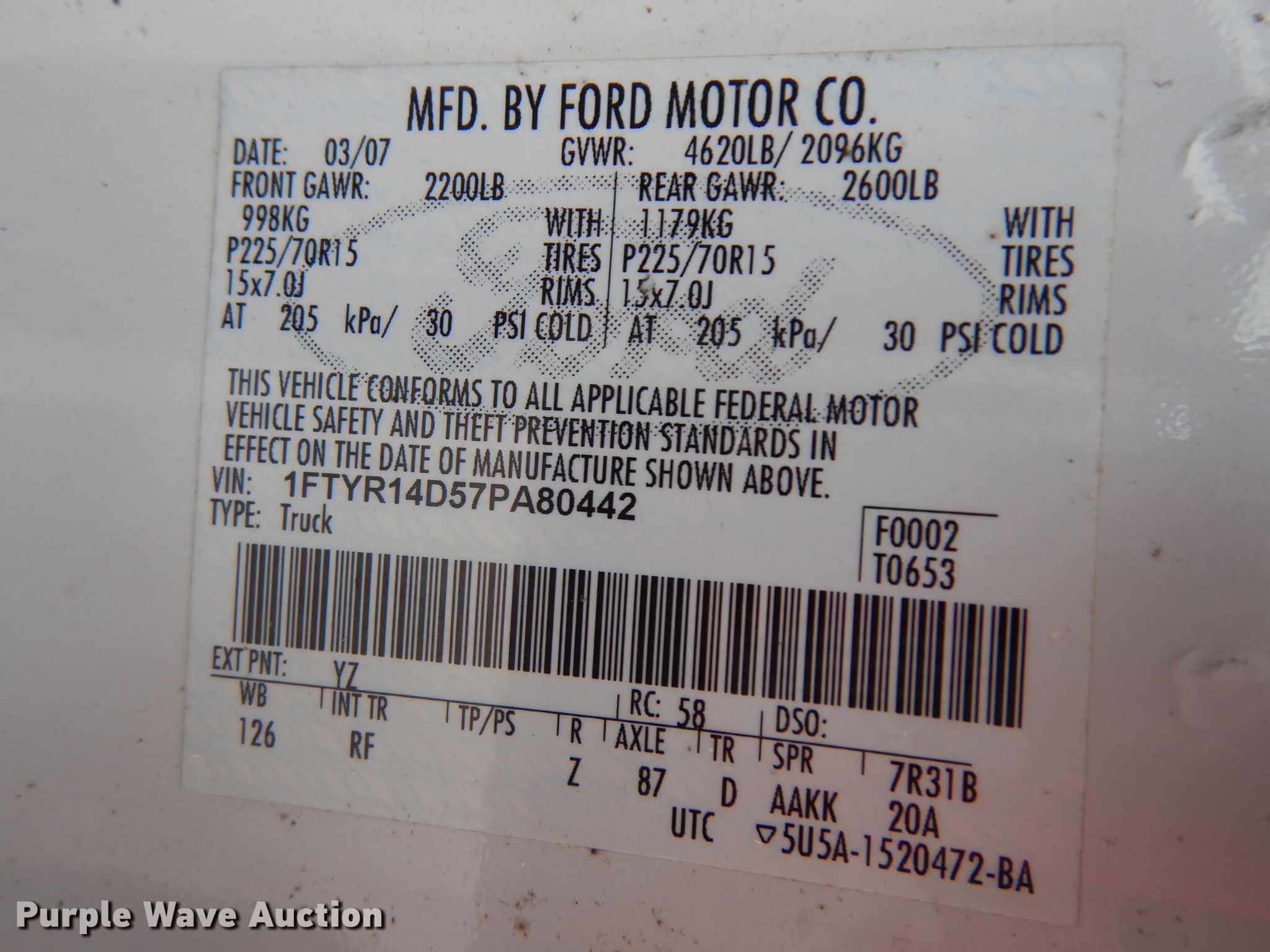 2007 Ford Ranger SuperCab pickup truck. 79,912 miles on odometer, Unit #: 51-43. Engine Displacement: 2.3L L4 SOHC 8V, Cylinders: 4, Fuel type: Gas. Transmission Automatic. Interior AC, Heat. Tires Size: 225/70R15. South Dakota title. Title distribution may be delayed up to 14 days from verification of funds. 1FTYR14D57PA80442. Sioux Falls Street Department - Open inspection July 23. 1000 E Chambers St.. Sioux Falls, SD 57104