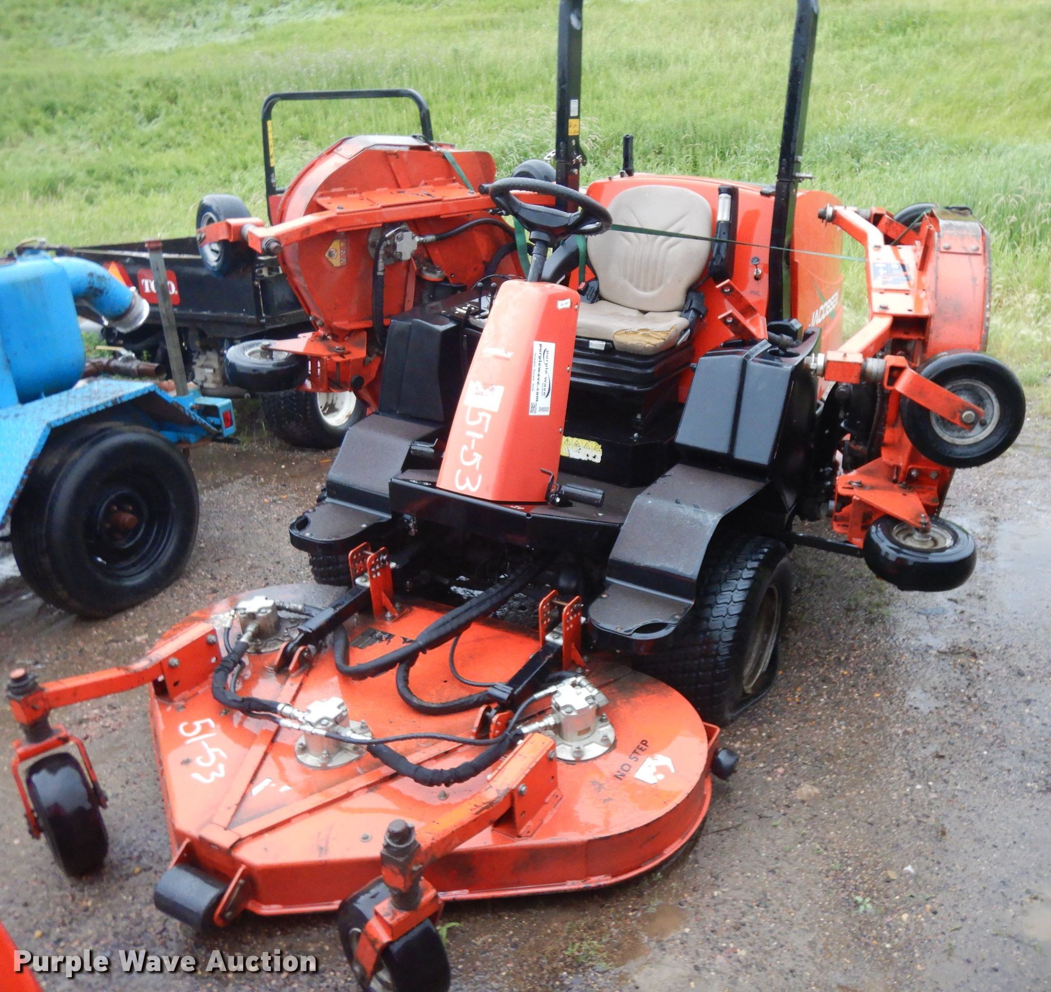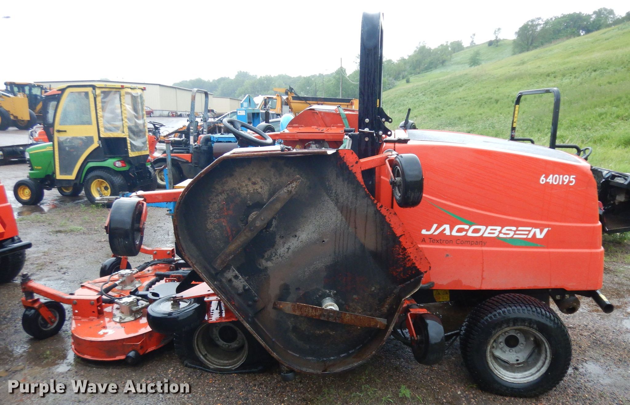Purple Wave is selling a used Commercial Turf Mower in South Dakota. This item is a 2010 Jacobsen R311T lawn mower with the following: 3,035 hours on meter, 168"W deck, Kubota four cylinder diesel engine, Hydrostatic transmission, Four wheel drive, OROPS, Hydraulic folding decks, Hydraulic front deck lift, 26 x 12.00-12 front tires, 23 x 10.5-12 rear tires, Non-operational unit, Unit# 51-53