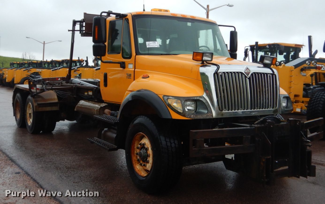 2004 International 7400 hook lift truck. 14,901 miles on odometer, Engine hours: 9,934, Unit #: 51-23. Engine International DT530, Displacement: 8.7L, Cylinders: 6, Fuel type: Diesel. Transmission Automatic. Chassis Axles: Tandem, Suspension: Walking beam, Brakes: Air, PTO. Interior AC, Heat, Heated mirrors. Operational Hook lift bed Length: 14'. Tires Front: 385/65R22.5, Rear: 11R22.5. Notes Non-operational roll tarp. South Dakota title. Title distribution may be delayed up to 14 days from verification of funds. 1HTWHADT54J020342. Sioux Falls Street Department - Open inspection July 23. 1000 E Chambers St.. Sioux Falls, SD 57104