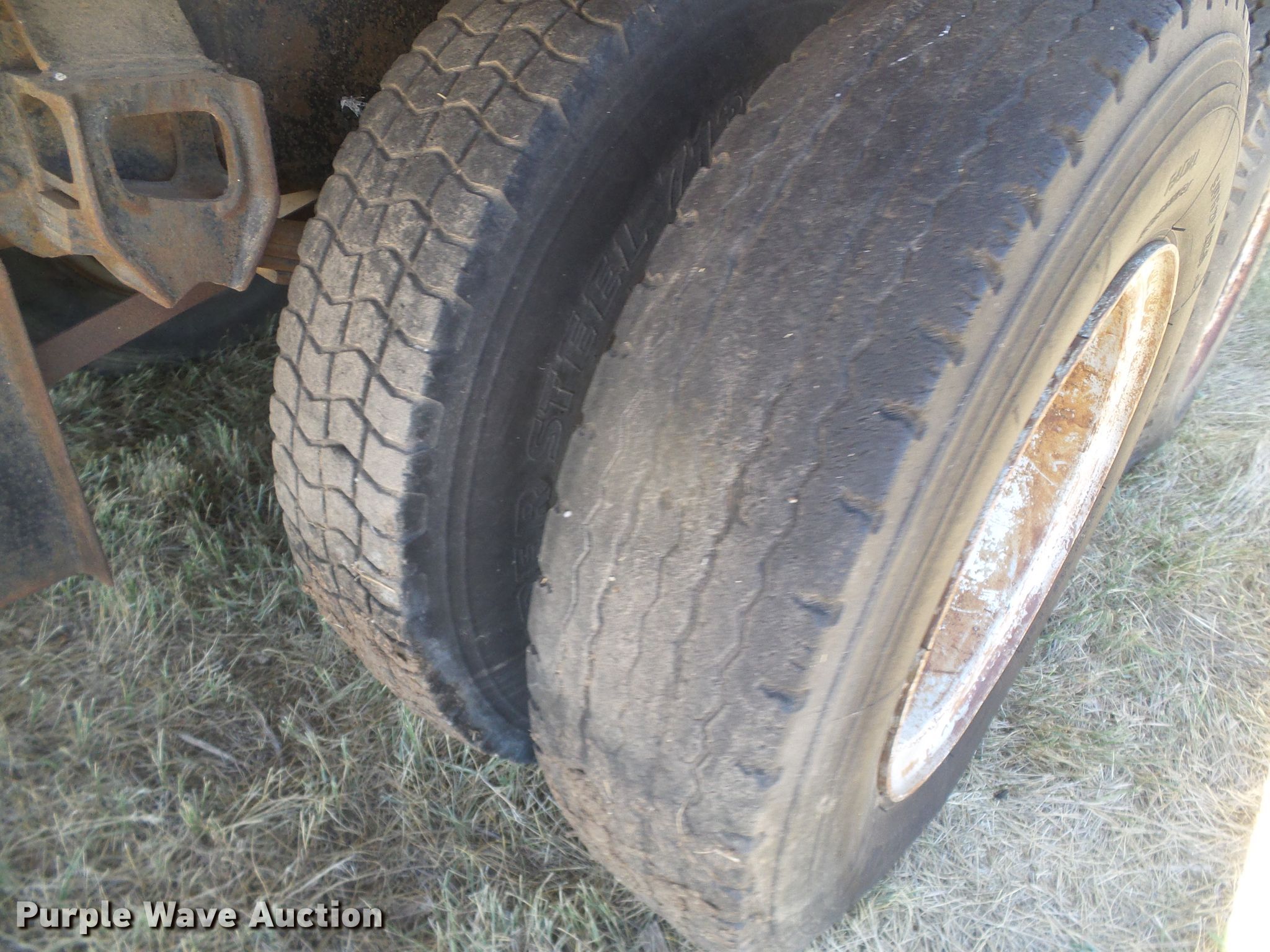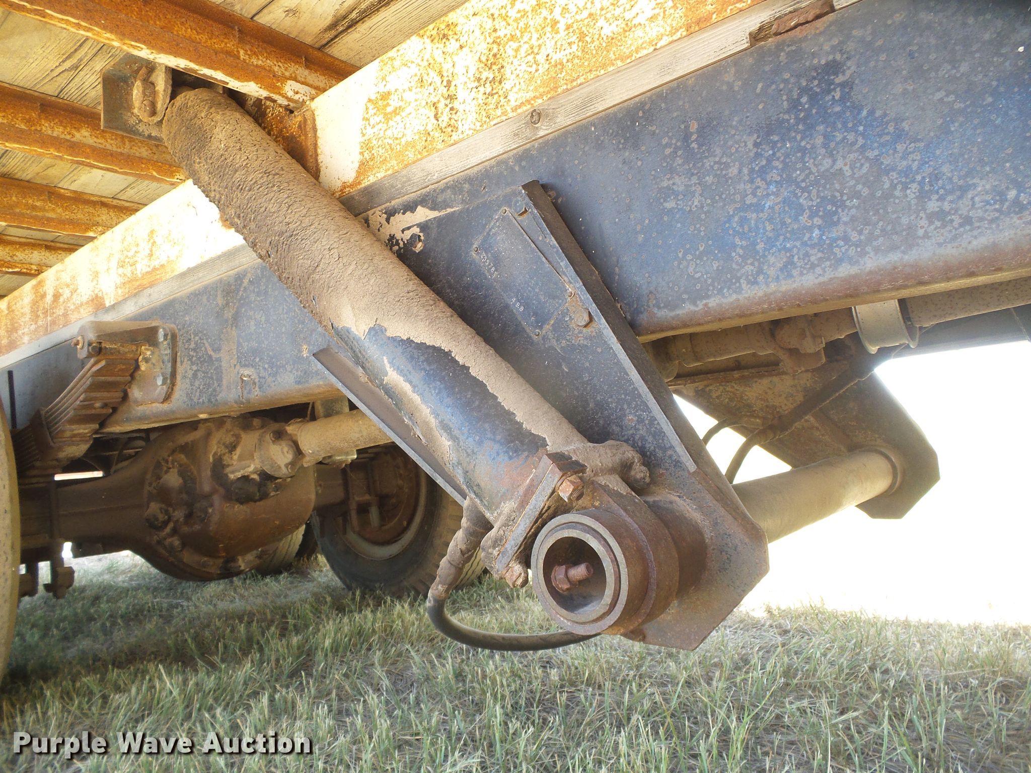 1964 Ford N750 dump flatbed truck. 95,518 miles on odometer. Engine Cylinders: 8, Fuel type: Gas. Transmission Manual, Speed: 5. Chassis Axles: Tandem, Suspension: Spring, Brakes: Air, PTO, GVWR: 22,500 lbs. Operational Dump flatbed Tradewind 255942, Length: 20', Width: 96", Ram: Dual. Tires Size: 9.00-20. Notes Windshield cracked, Battery may need to be replaced, Carburetor may need to be rebuilt, Non-operational unit. Kansas title. N759U490905. Marvin Bohling Trust. Jetmore, KS 67854