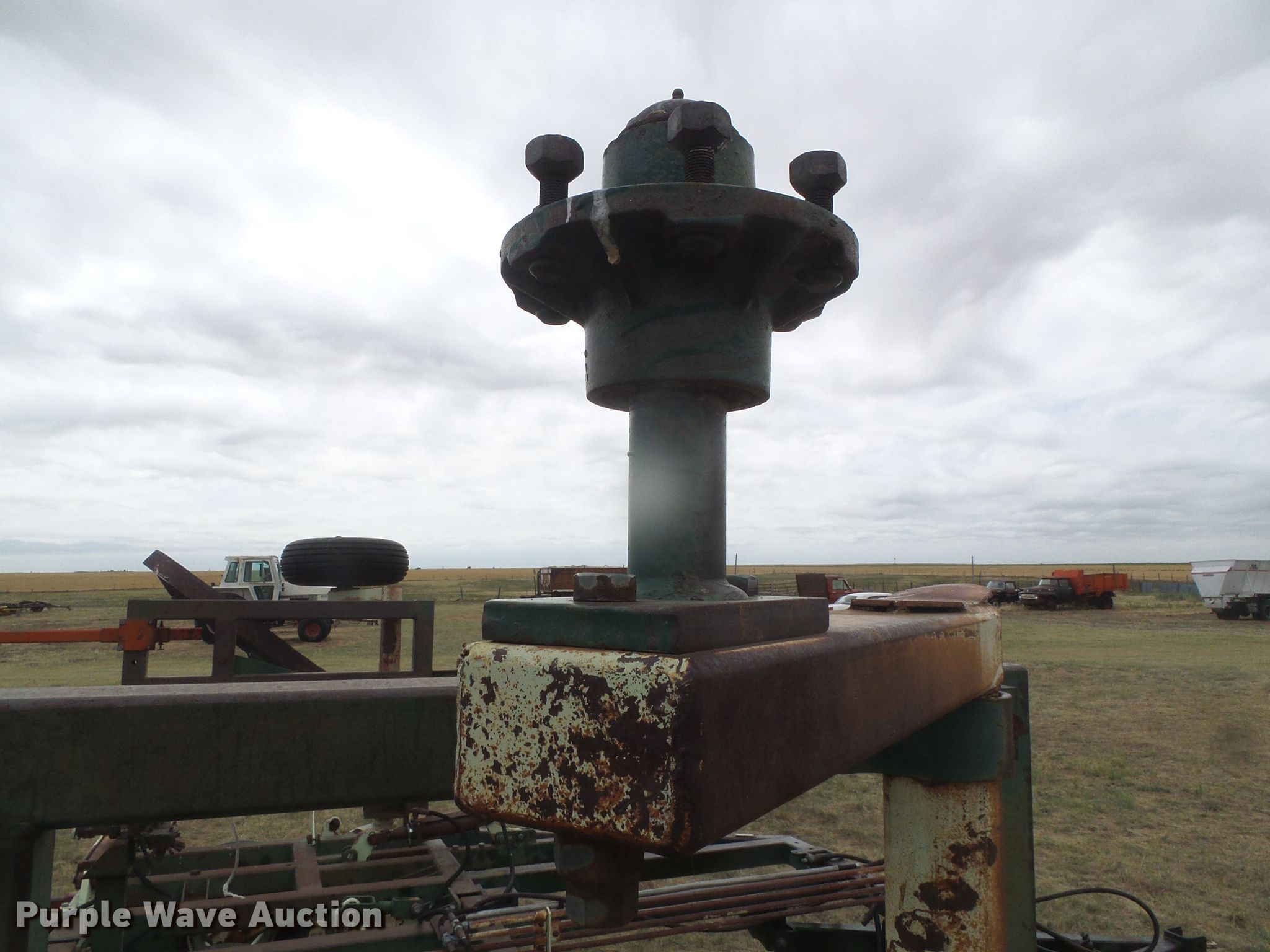 Flex King 5X5 sweep plow. 25'W, (5) 5'W sweeps, Rolling pickers/treader, Manual leveler, Hydraulic lift and fold, Rear hitch, 11L-15 tires, One tire and hub missing, Serial 3734. Marvin Bohling Trust. Jetmore, KS 67854