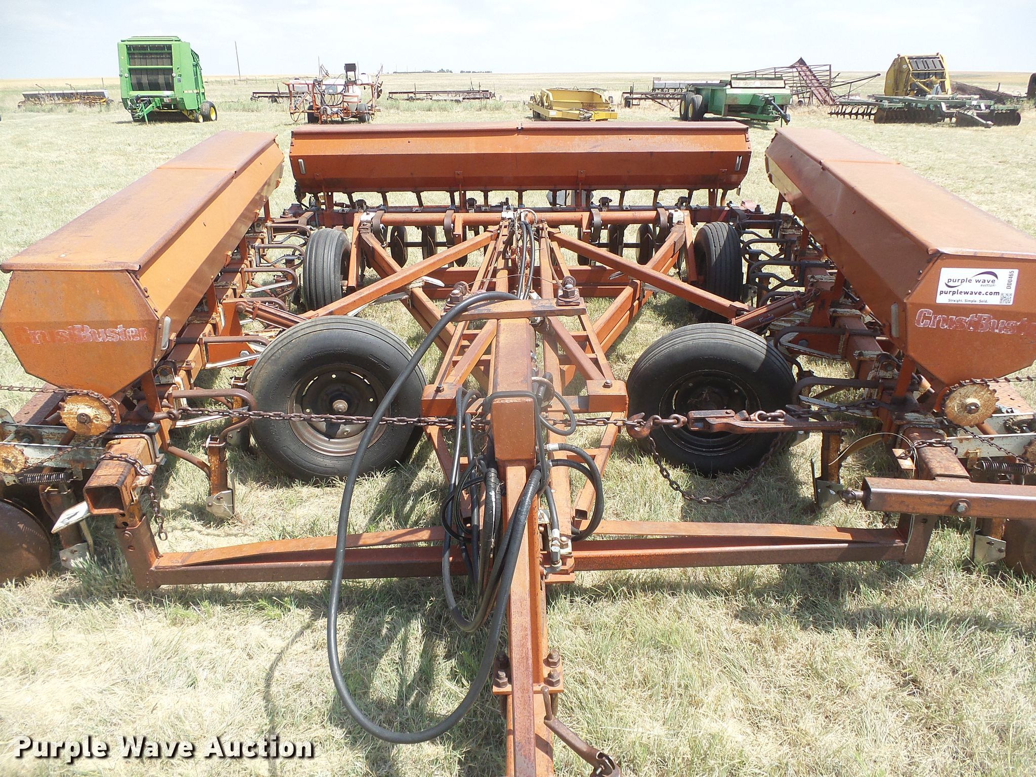 Purple Wave is selling a used Grain Drill or Seeder in Kansas. This item is a CrustBuster hoe grain drill with the following: 32'W, 10" row spacing, Hydraulic front fold, Bulk fill system, Ground meter drive, (4) 9.5L-15 transport tires