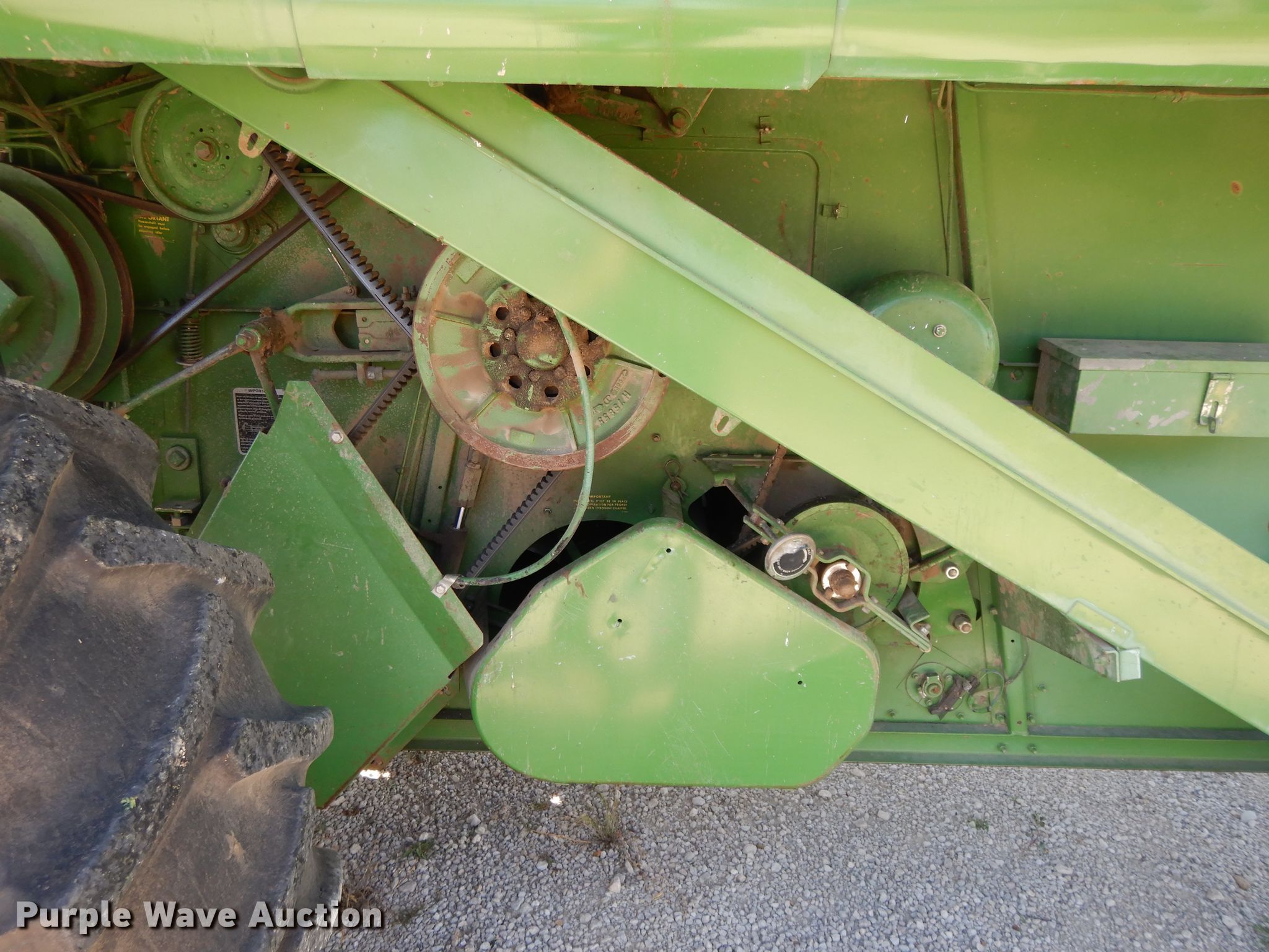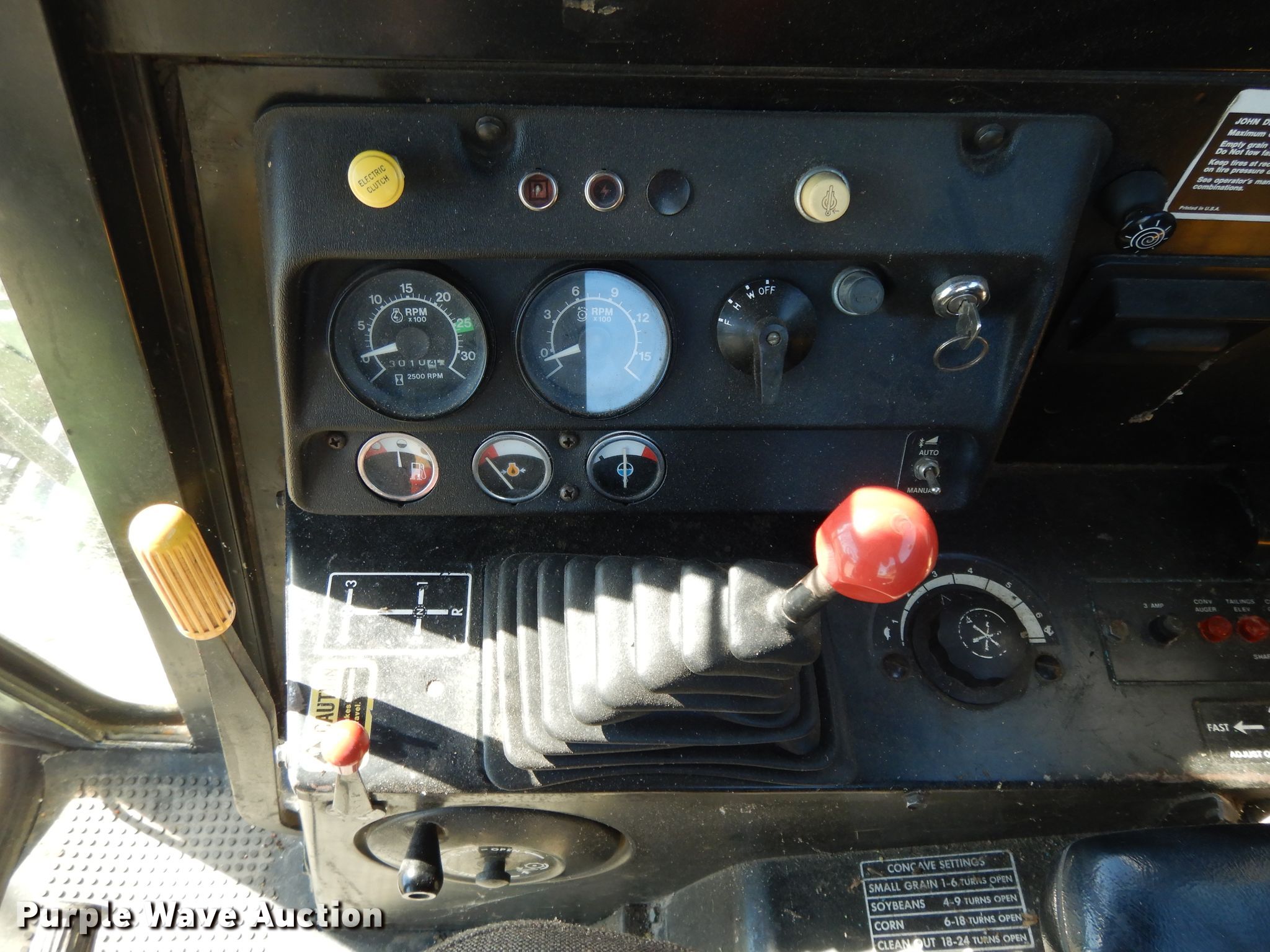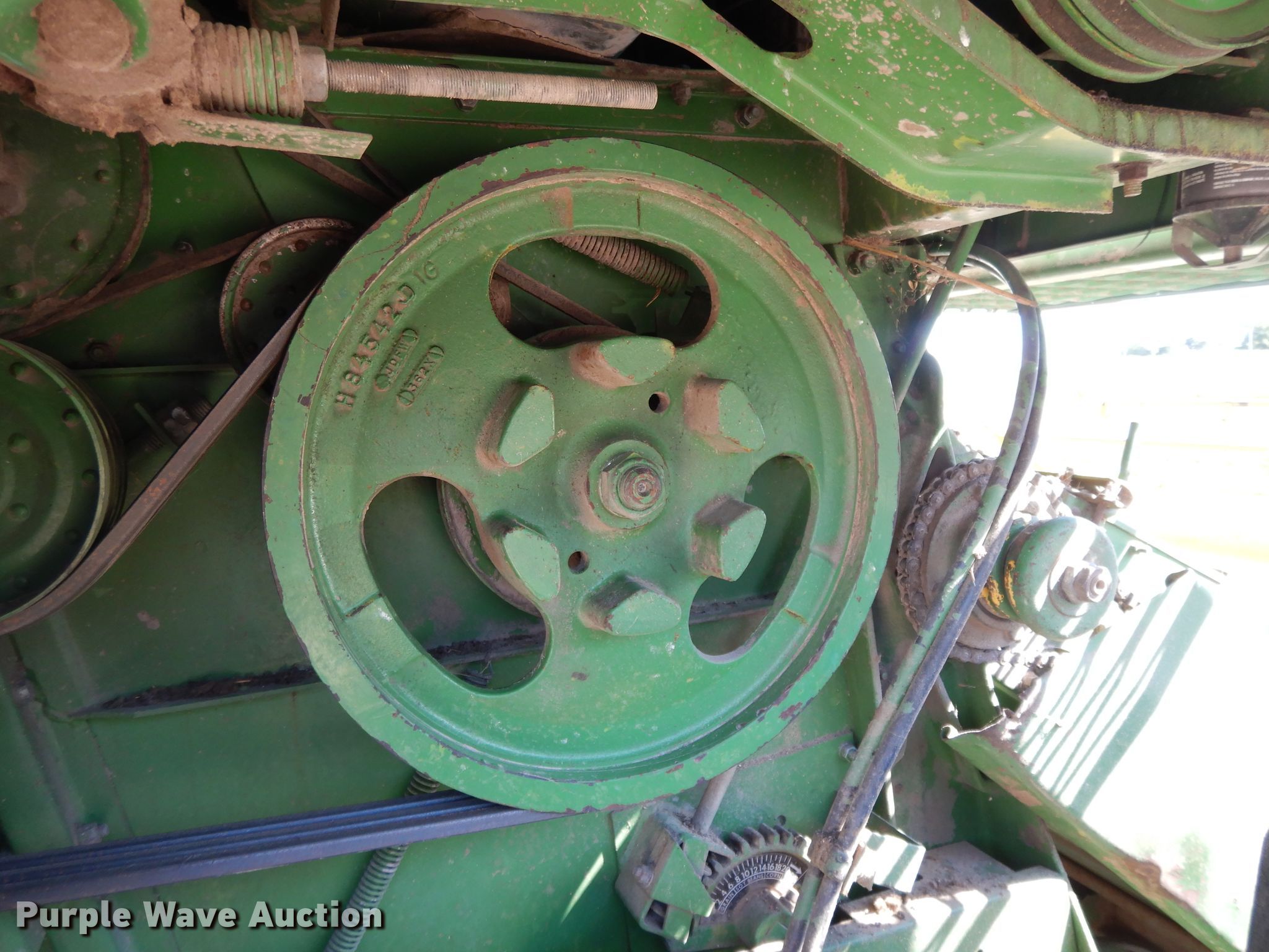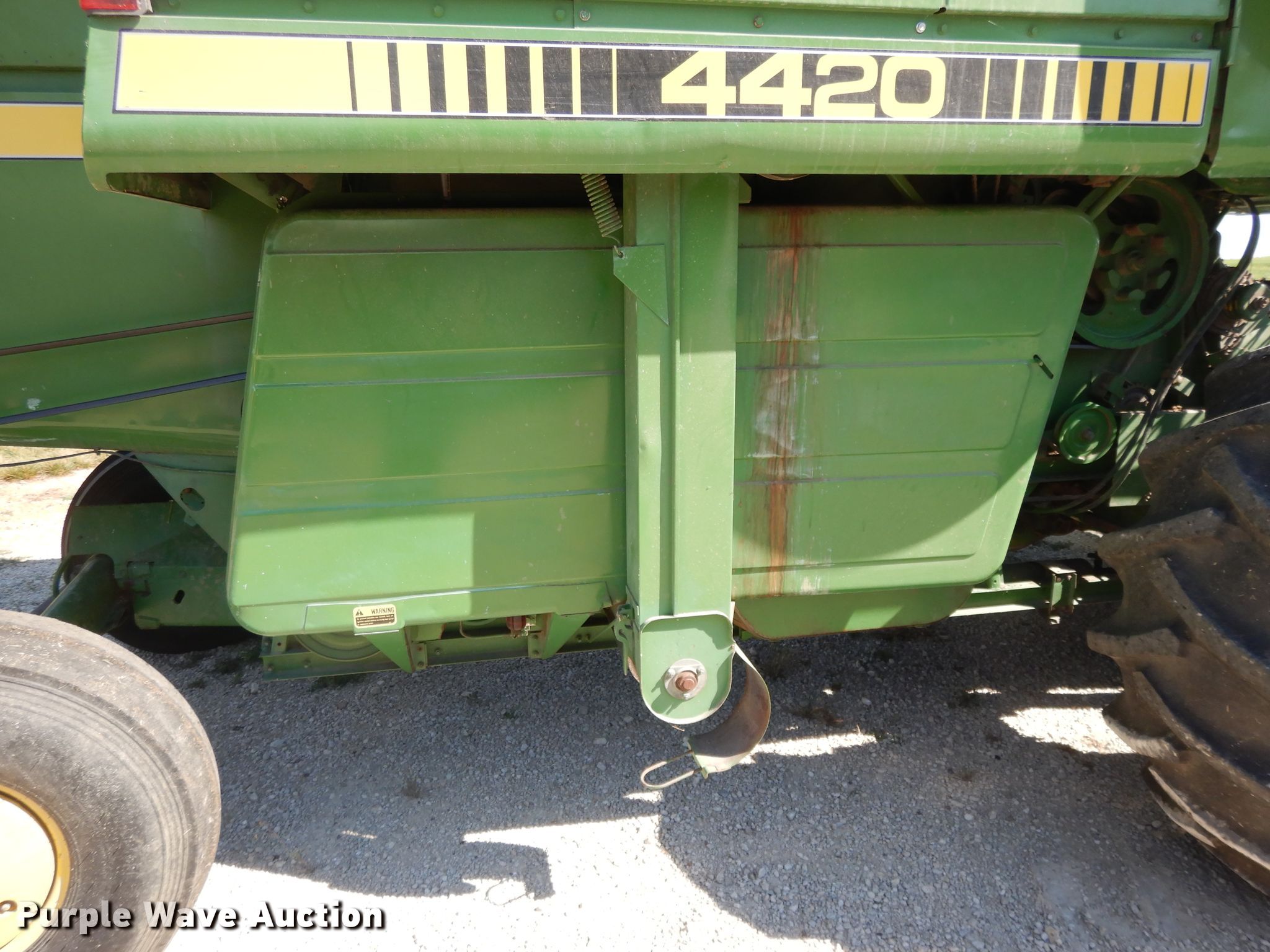 Purple Wave is selling a used Combine in Kansas. This item is a 1981 John Deere 4420 combine with the following: 3,010 engine hours on meter, John Deere six cylinder diesel engine, Manual transmission, 4F-1R gears, AC and heat, Two speed rotor, Straw chopper, 11'4"L unloading auger, John Deere 213 head, 156"W, Finger reel, Hydraulic reel height control, Dual drivelines, Serial 278557, 23.1-26 front tires, 11.00-16 rear tires, Operator manual, Serial 451462