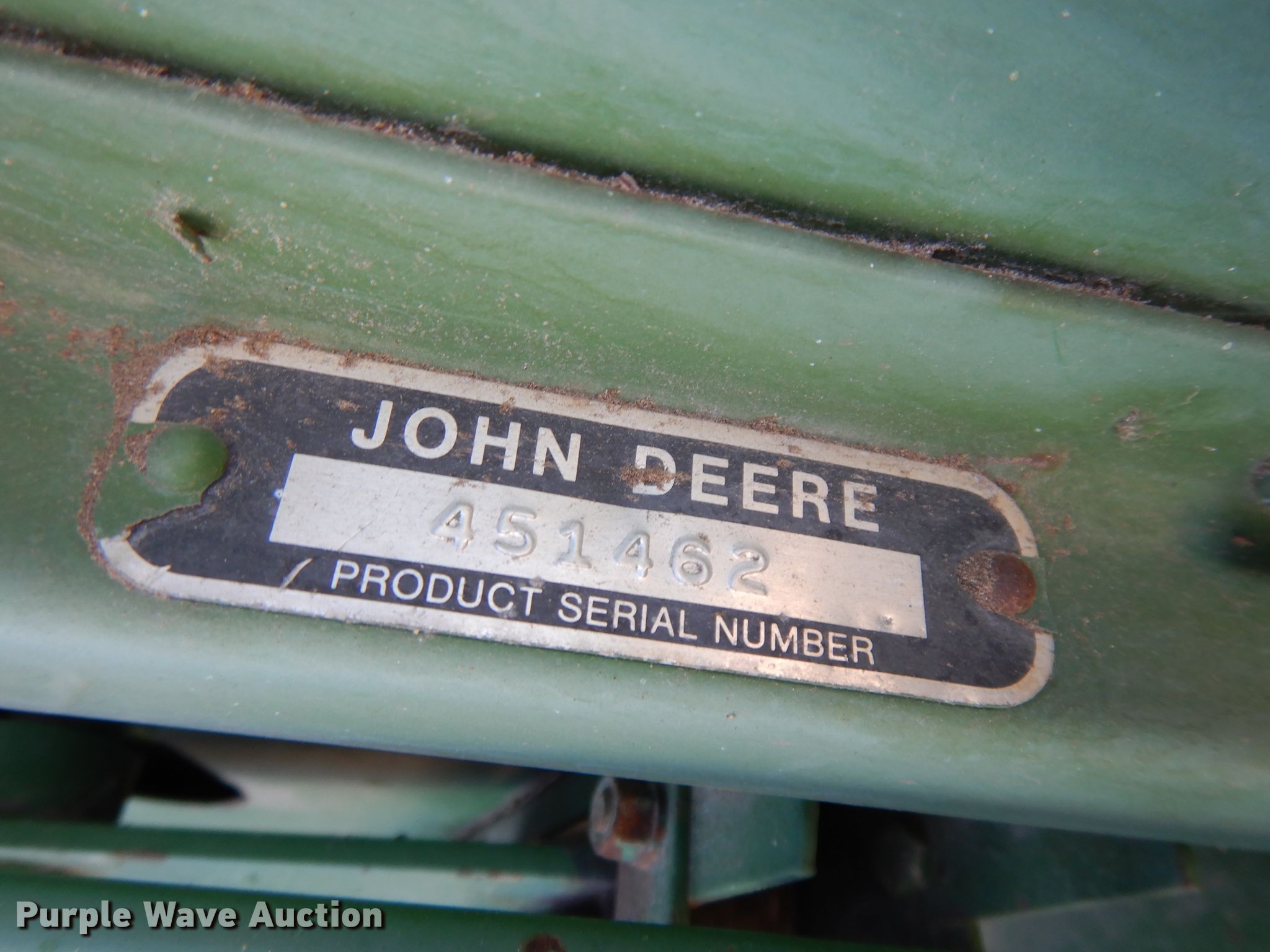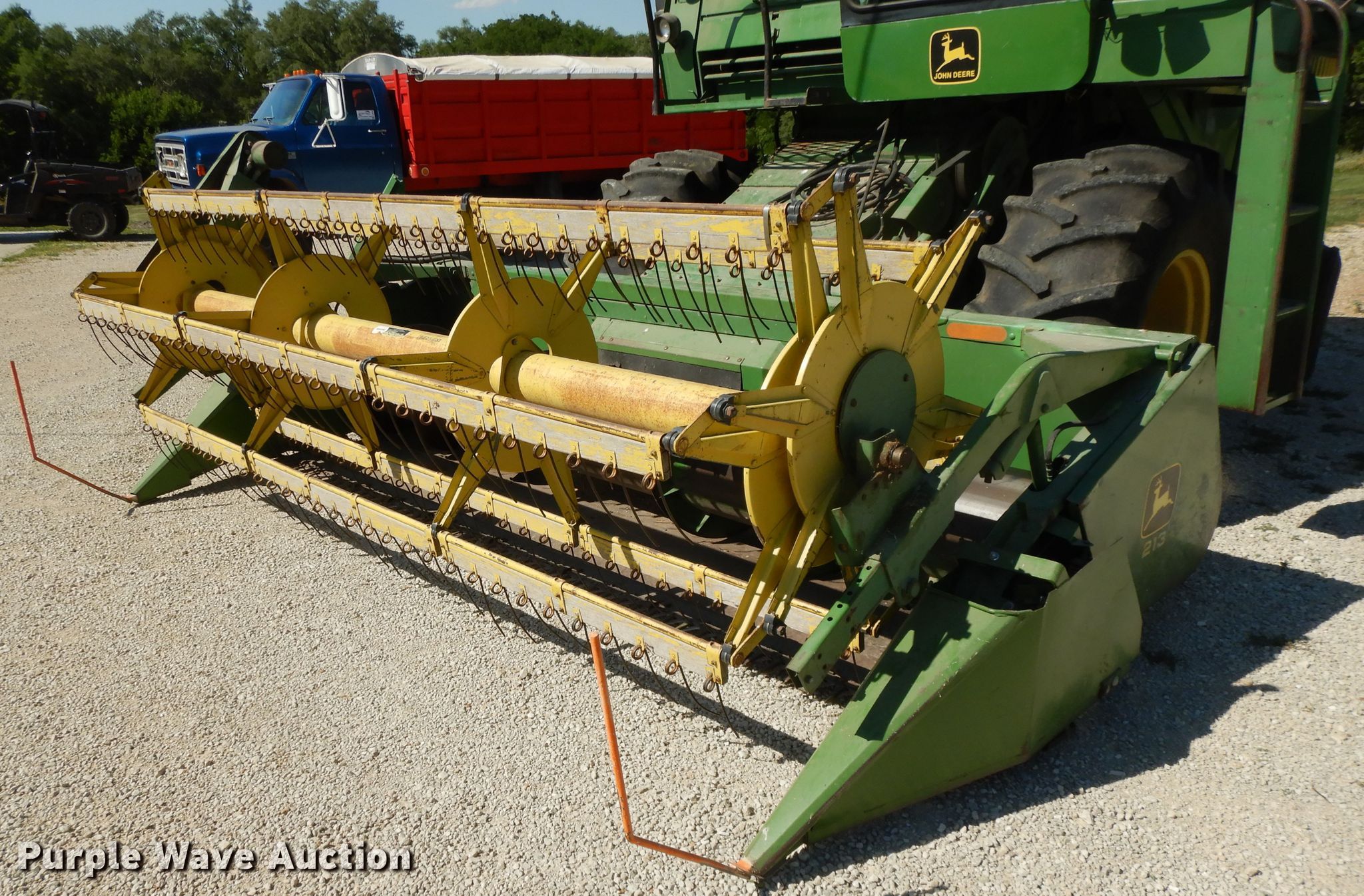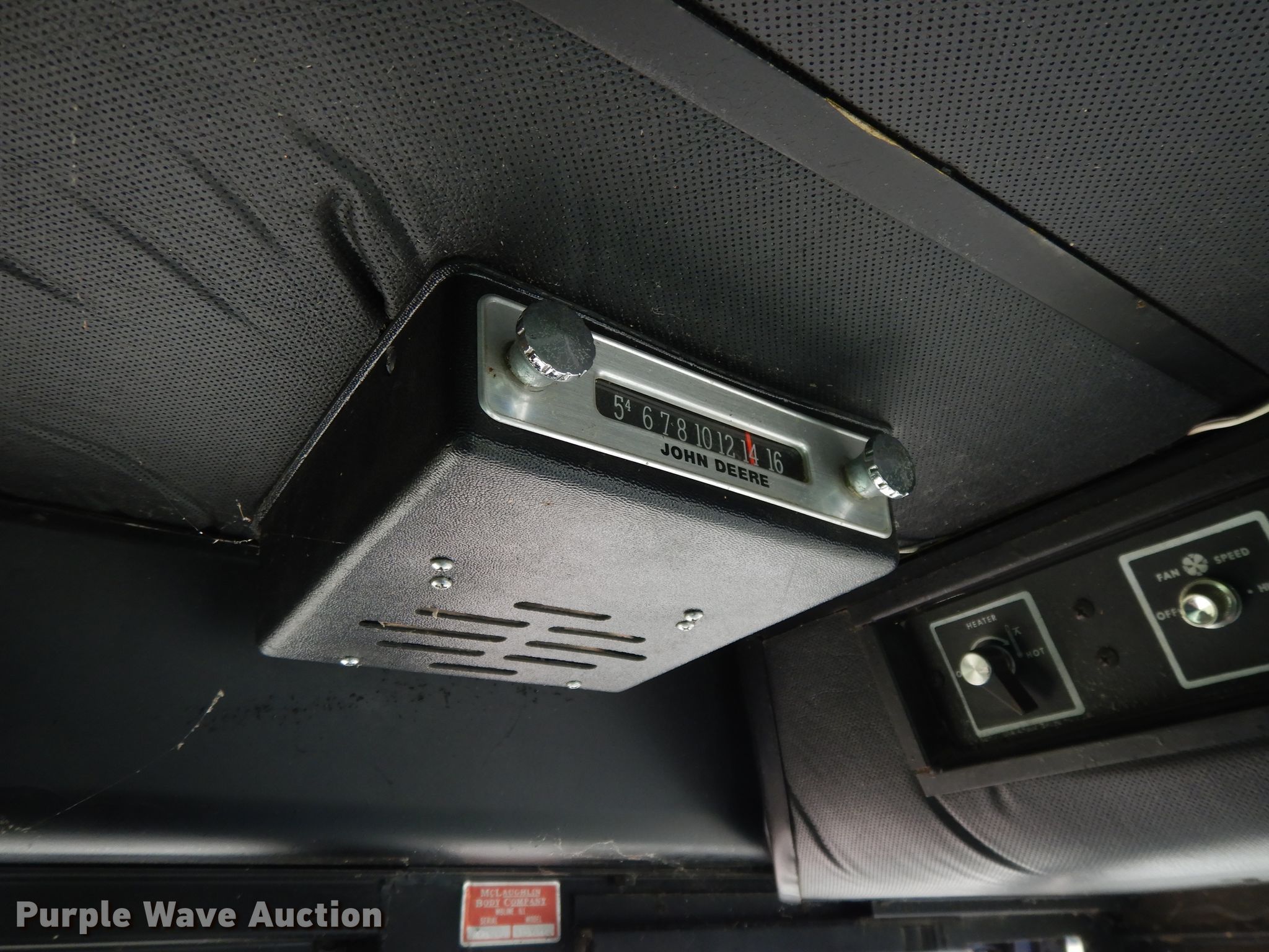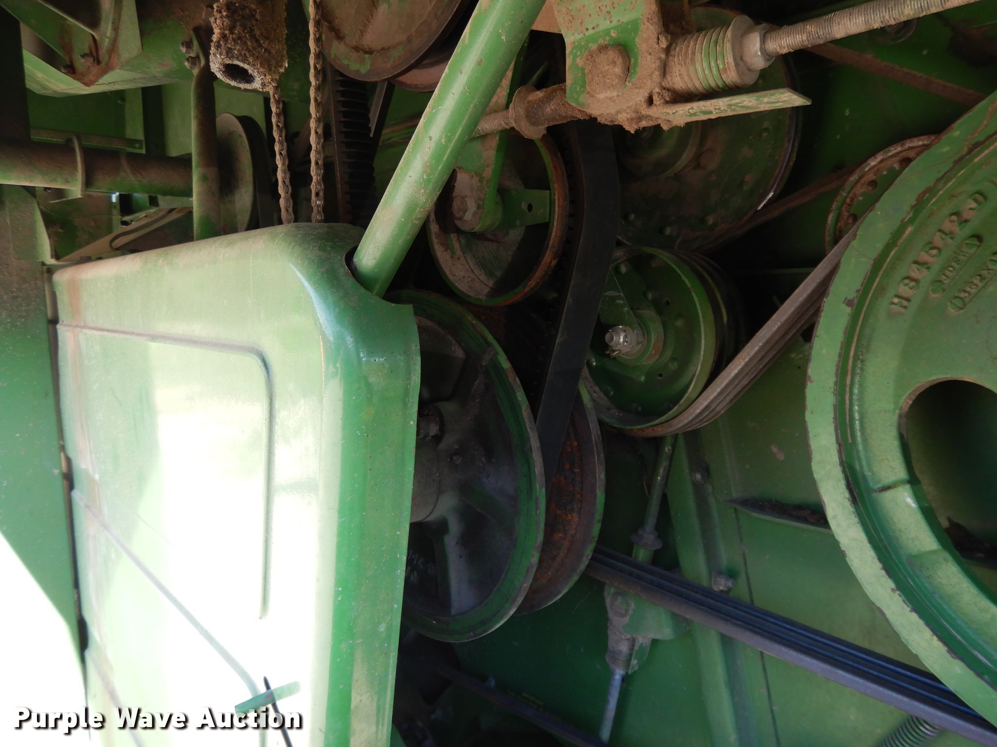 Purple Wave is selling a used Combine in Kansas. This item is a 1981 John Deere 4420 combine with the following: 3,010 engine hours on meter, John Deere six cylinder diesel engine, Manual transmission, 4F-1R gears, AC and heat, Two speed rotor, Straw chopper, 11'4"L unloading auger, John Deere 213 head, 156"W, Finger reel, Hydraulic reel height control, Dual drivelines, Serial 278557, 23.1-26 front tires, 11.00-16 rear tires, Operator manual, Serial 451462