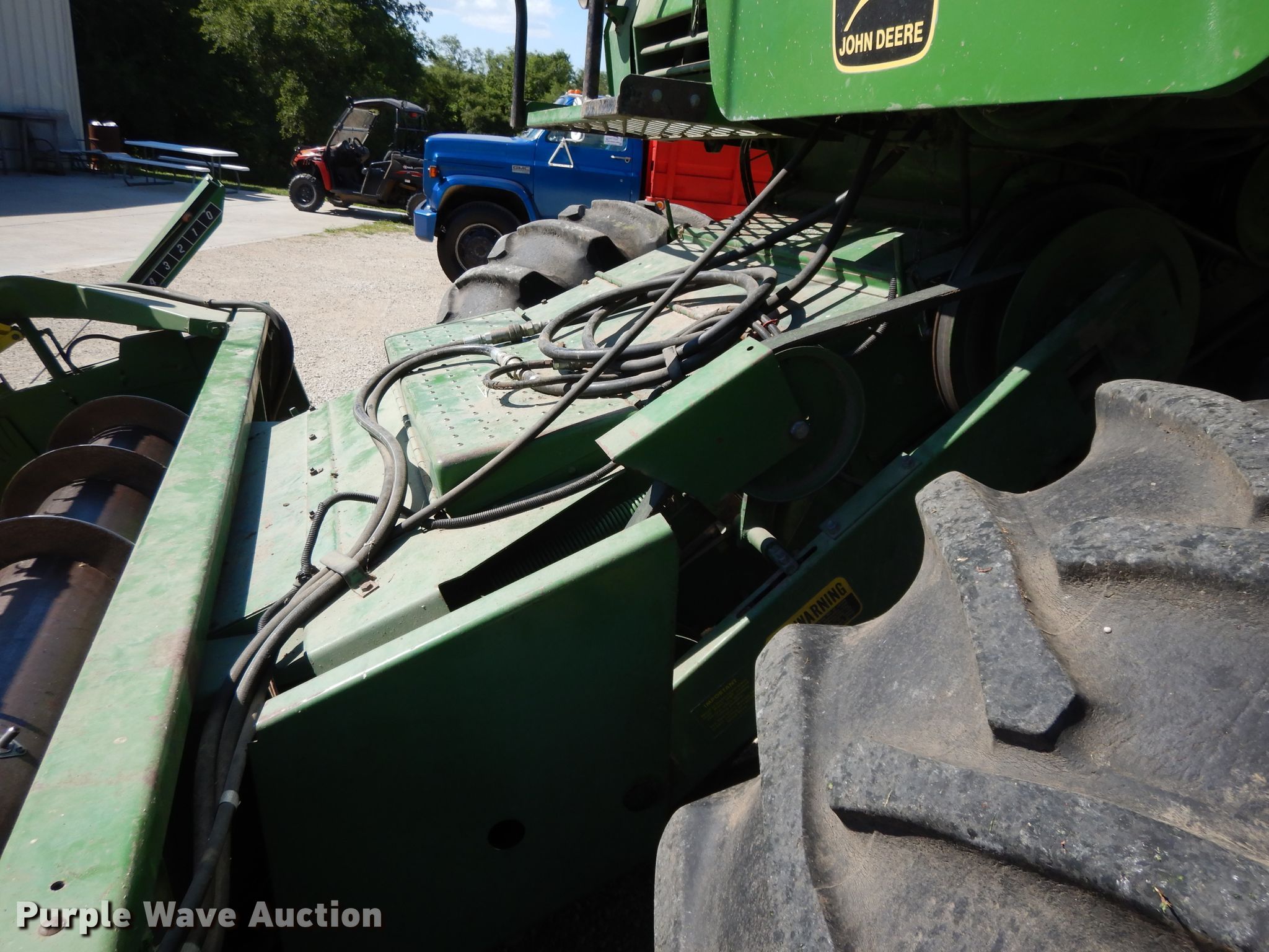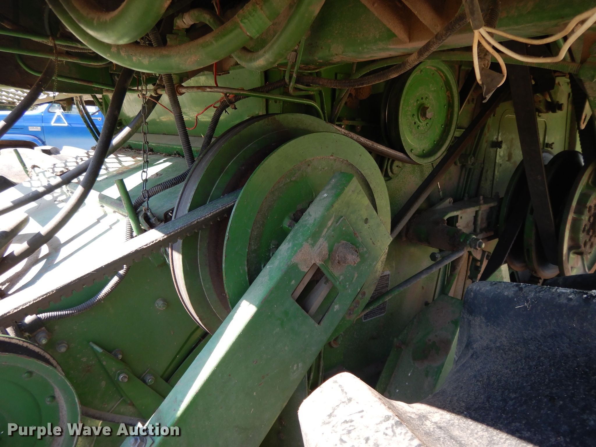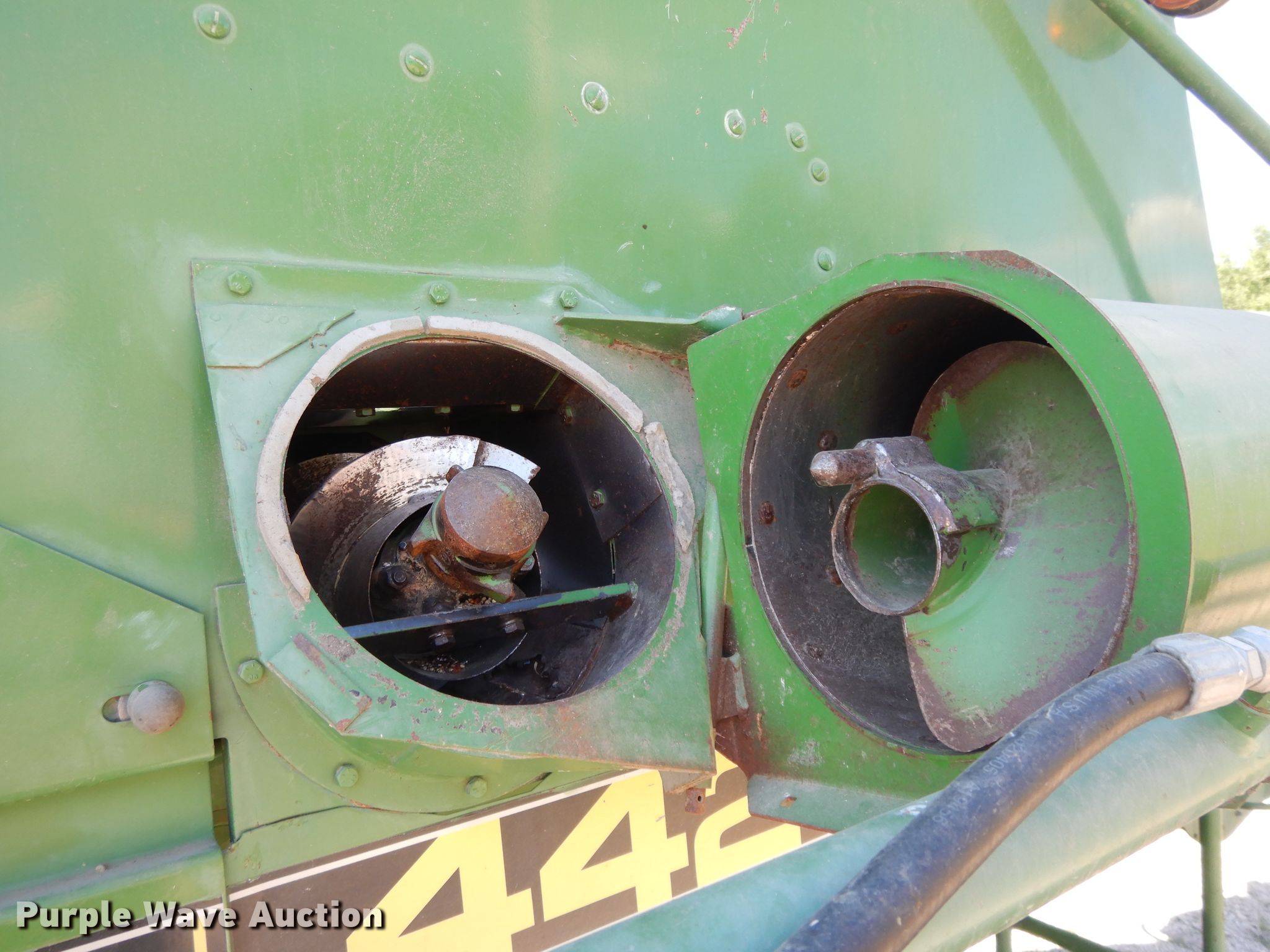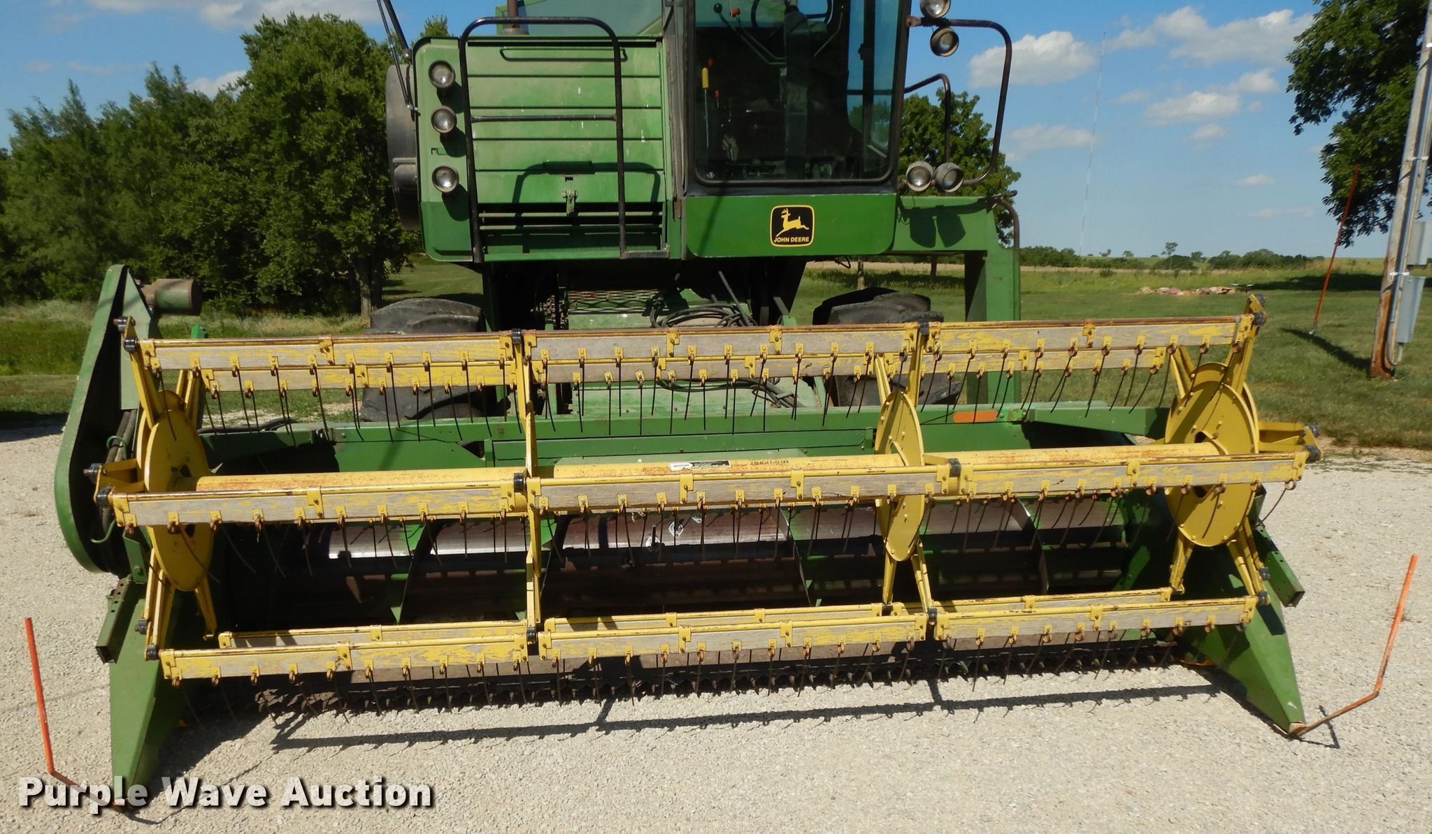 Purple Wave is selling a used Combine in Kansas. This item is a 1981 John Deere 4420 combine with the following: 3,010 engine hours on meter, John Deere six cylinder diesel engine, Manual transmission, 4F-1R gears, AC and heat, Two speed rotor, Straw chopper, 11'4"L unloading auger, John Deere 213 head, 156"W, Finger reel, Hydraulic reel height control, Dual drivelines, Serial 278557, 23.1-26 front tires, 11.00-16 rear tires, Operator manual, Serial 451462