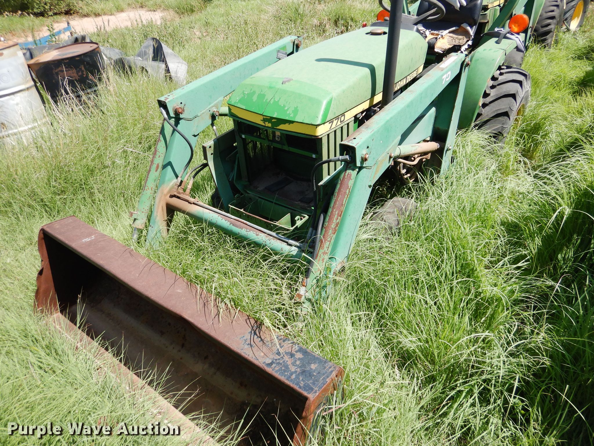 Purple Wave is selling a used Tractor in Oklahoma. This item is a John Deere 770 tractor with the following: 1,673 hours on meter, Serial: M00770A161405