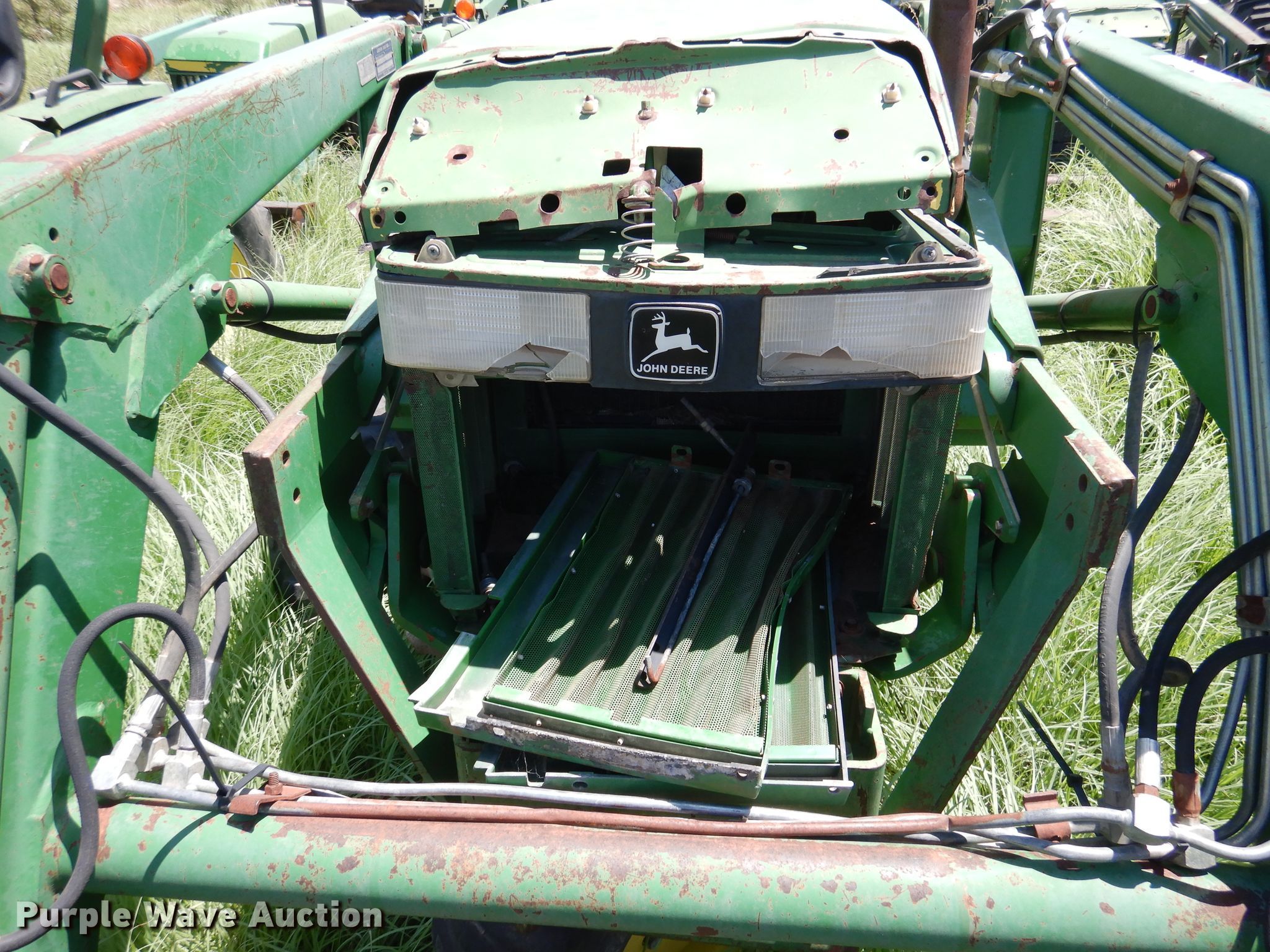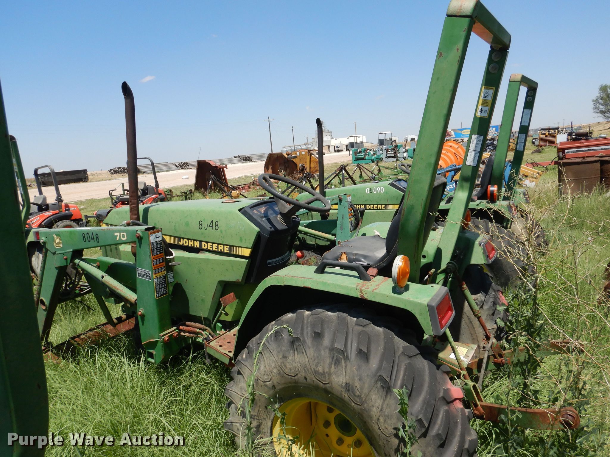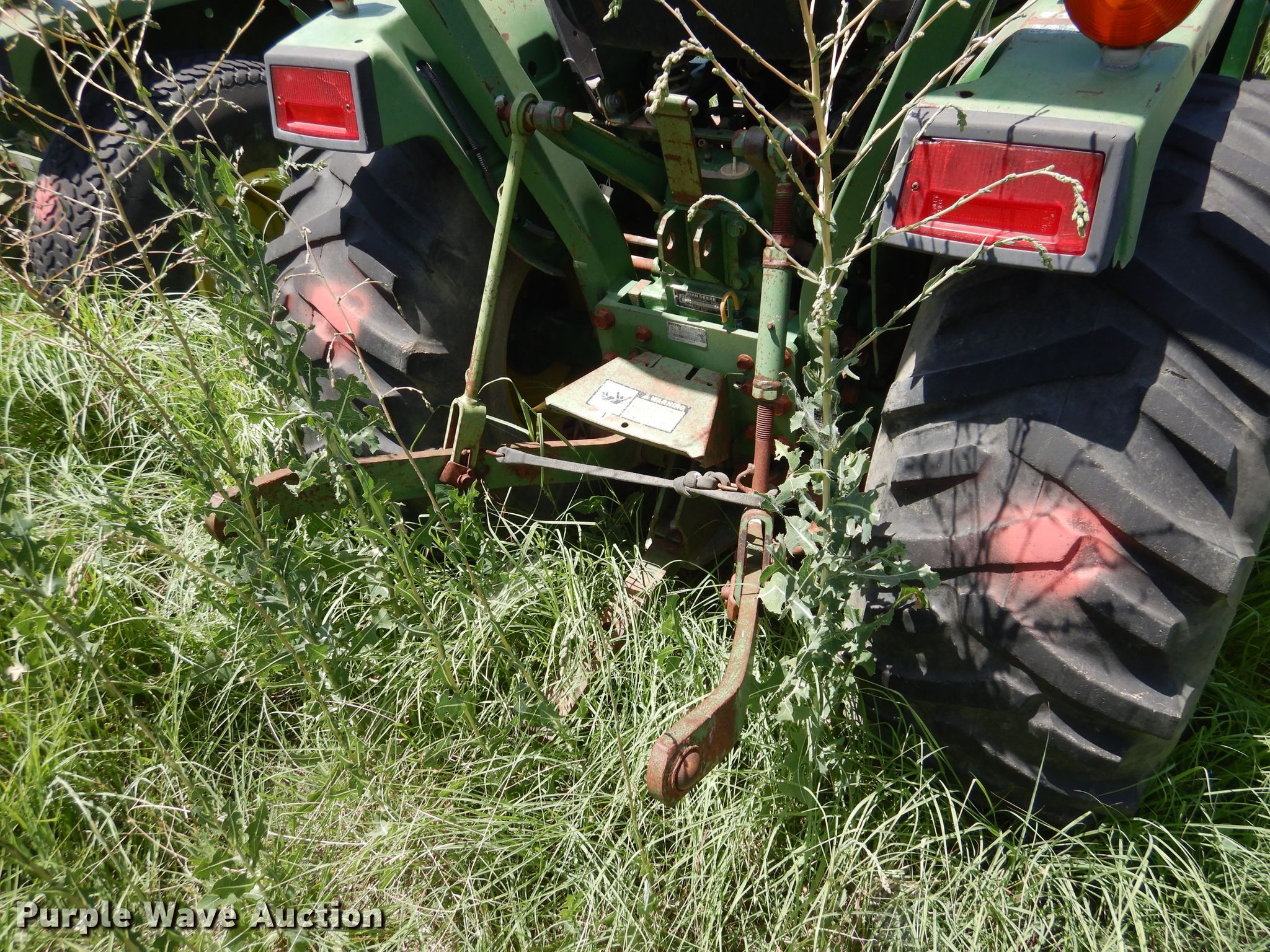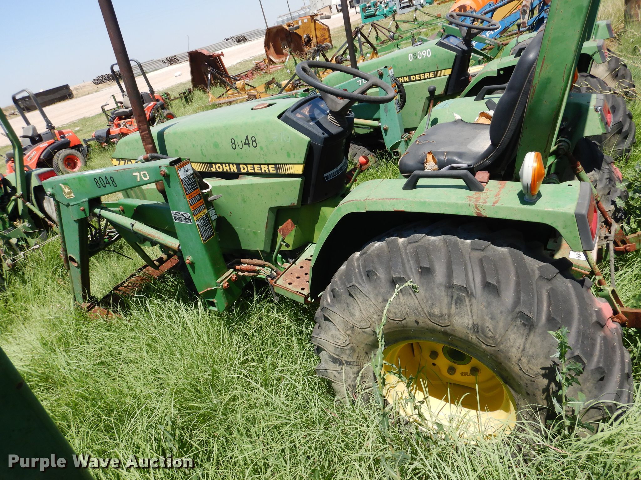 John Deere 770 tractor. 1,547 hours on meter, Serial: M00770A150303. Engine Cylinders: 3, Fuel type: Diesel. Transmission Manual, 4F - 1R. Operational PTO: 540, Three point, Loader John Deere 70, Bucket Width: 48".. Tires Front: 8.50-14, Rear: 13.50-16.1. Notes Front axle unmounted, Unknown operating condition. Seaboard Foods. Optima, OK 73945