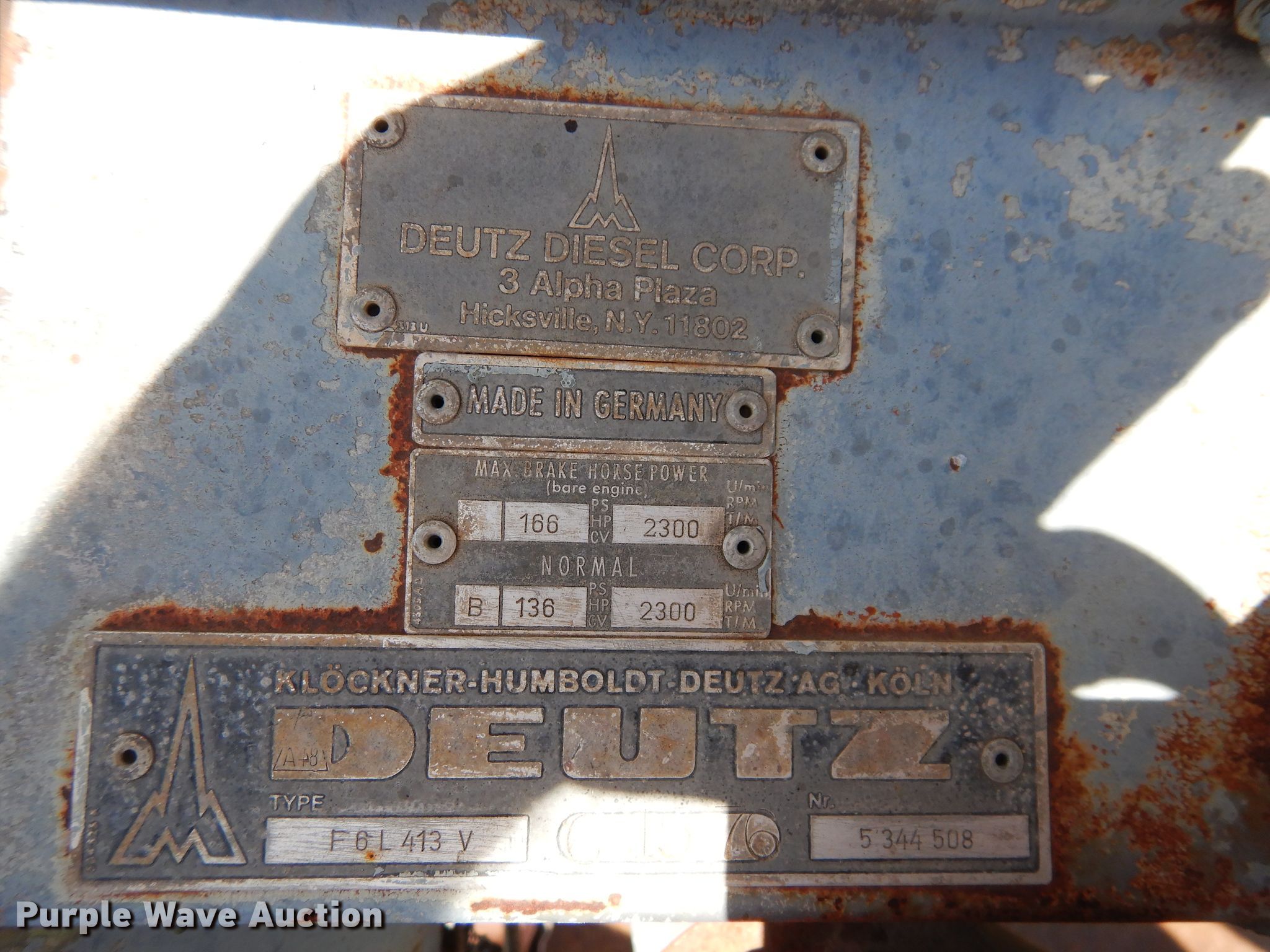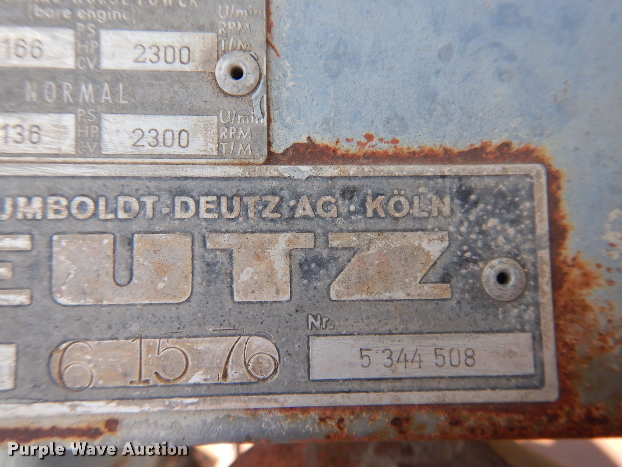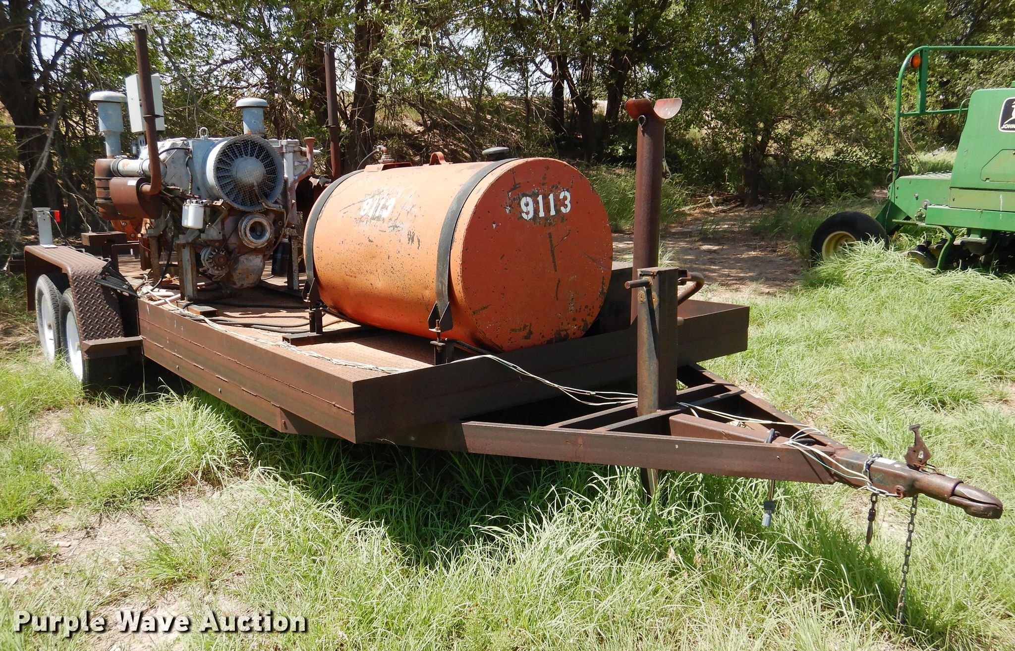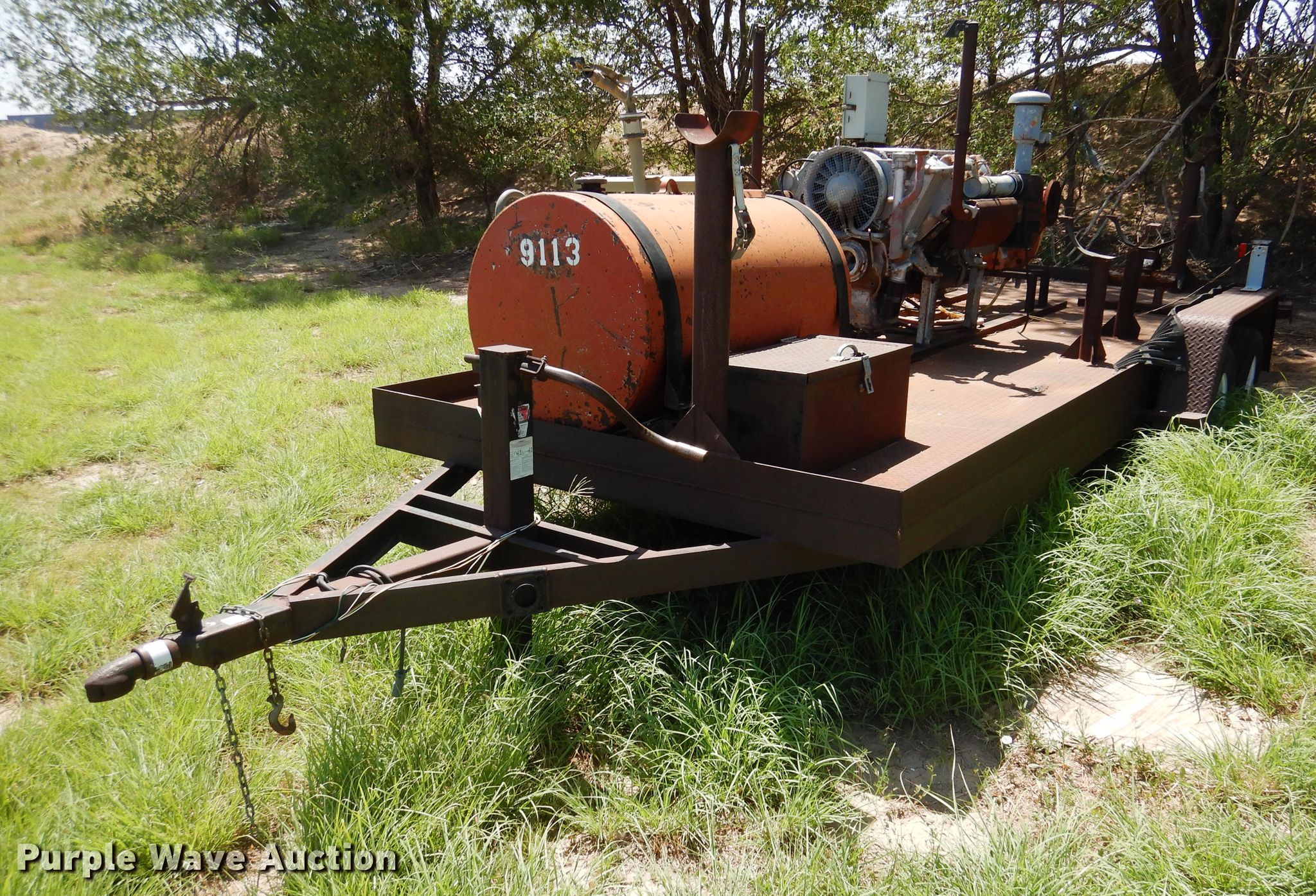 Purple Wave is selling a used Irrigation Pump in Oklahoma. This item is a Irrigation pump with the following: 697 hours on meter, Deutz six cylinder diesel engine, 6" water pump, 25'L x 98"W trailer, 205/75R15 tires