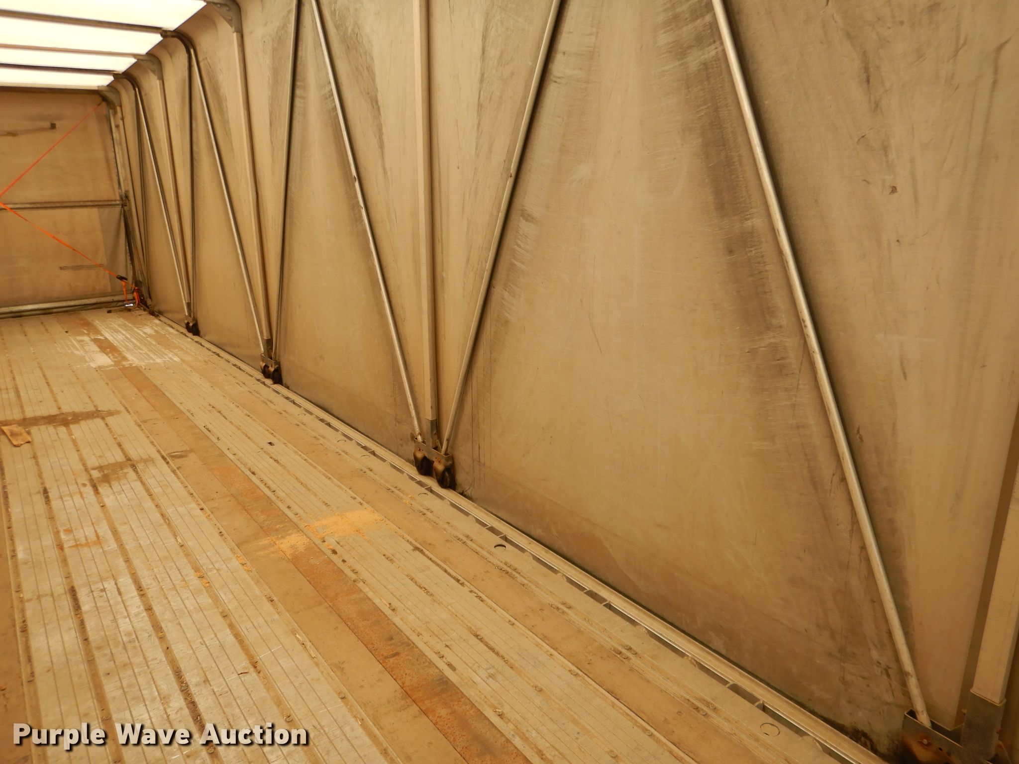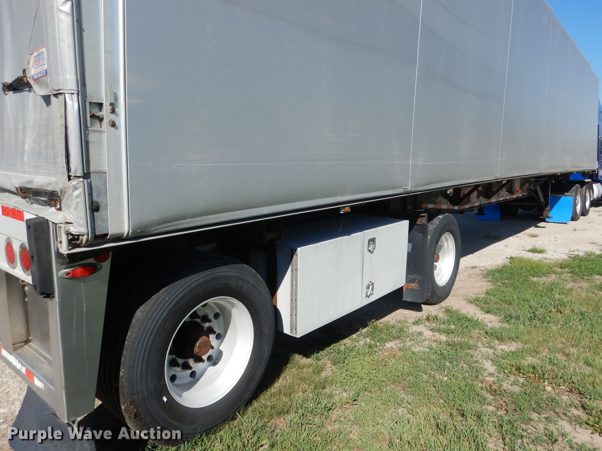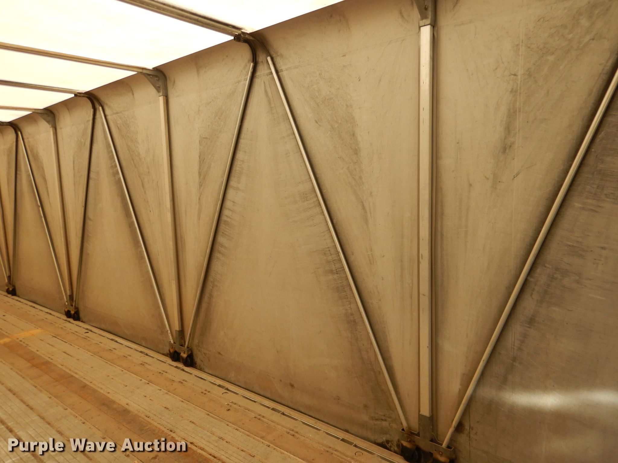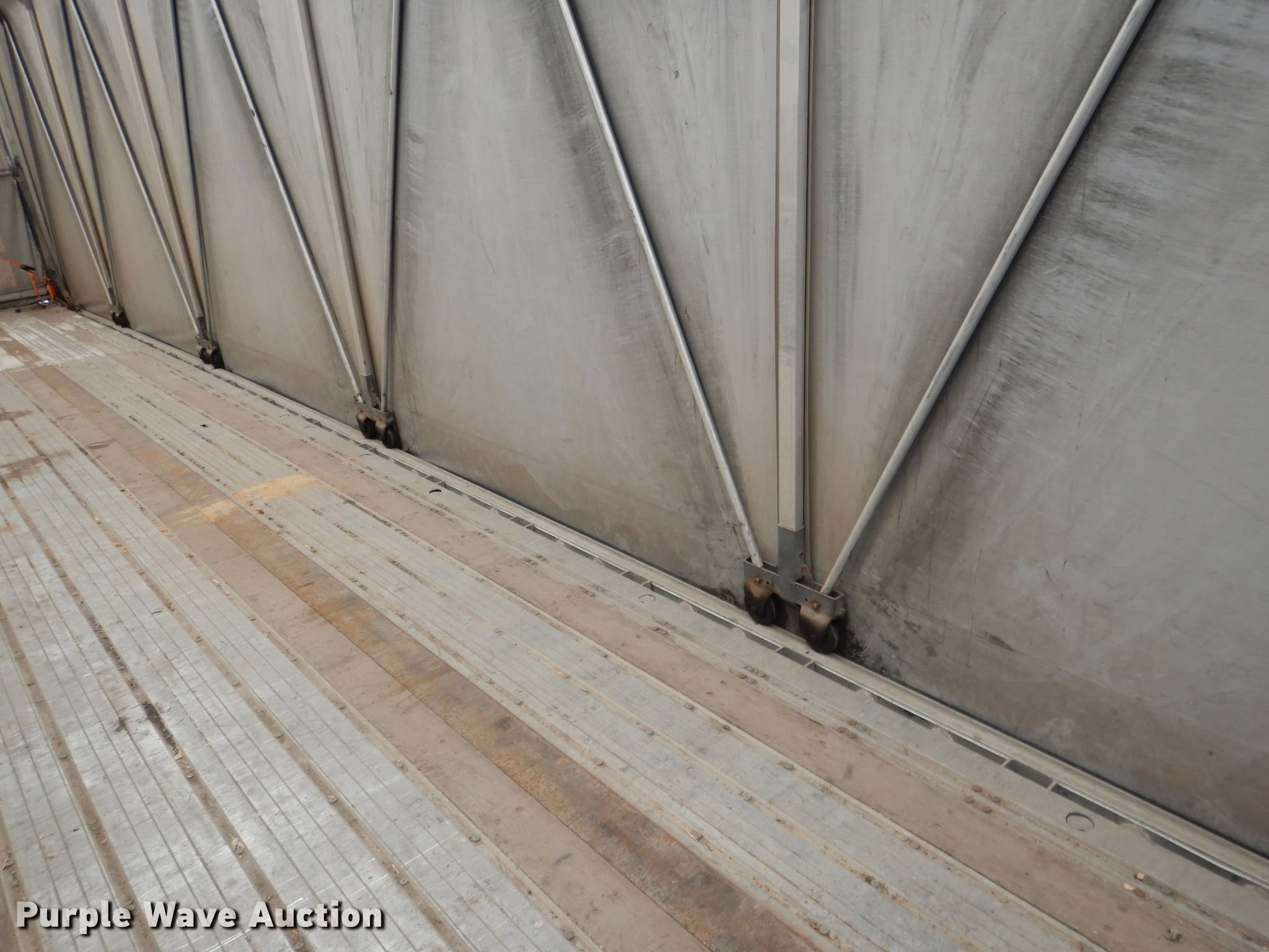 Purple Wave is selling a used Flat or Drop Deck Trailer in Nebraska. This item is a 2006 Fontaine Renegade conestoga trailer with the following: 48'L x 102"W overall, 8' side height, Aluminum deck, 2015 Quick Draw tarp system, Auxiliary airbag deflation system, Dual leg landing gear, Air suspension, Air brakes, Spread axle, 10'W spread, Aluminum wheels, 445/50R22.5 tires, GVWR 80,000 lbs