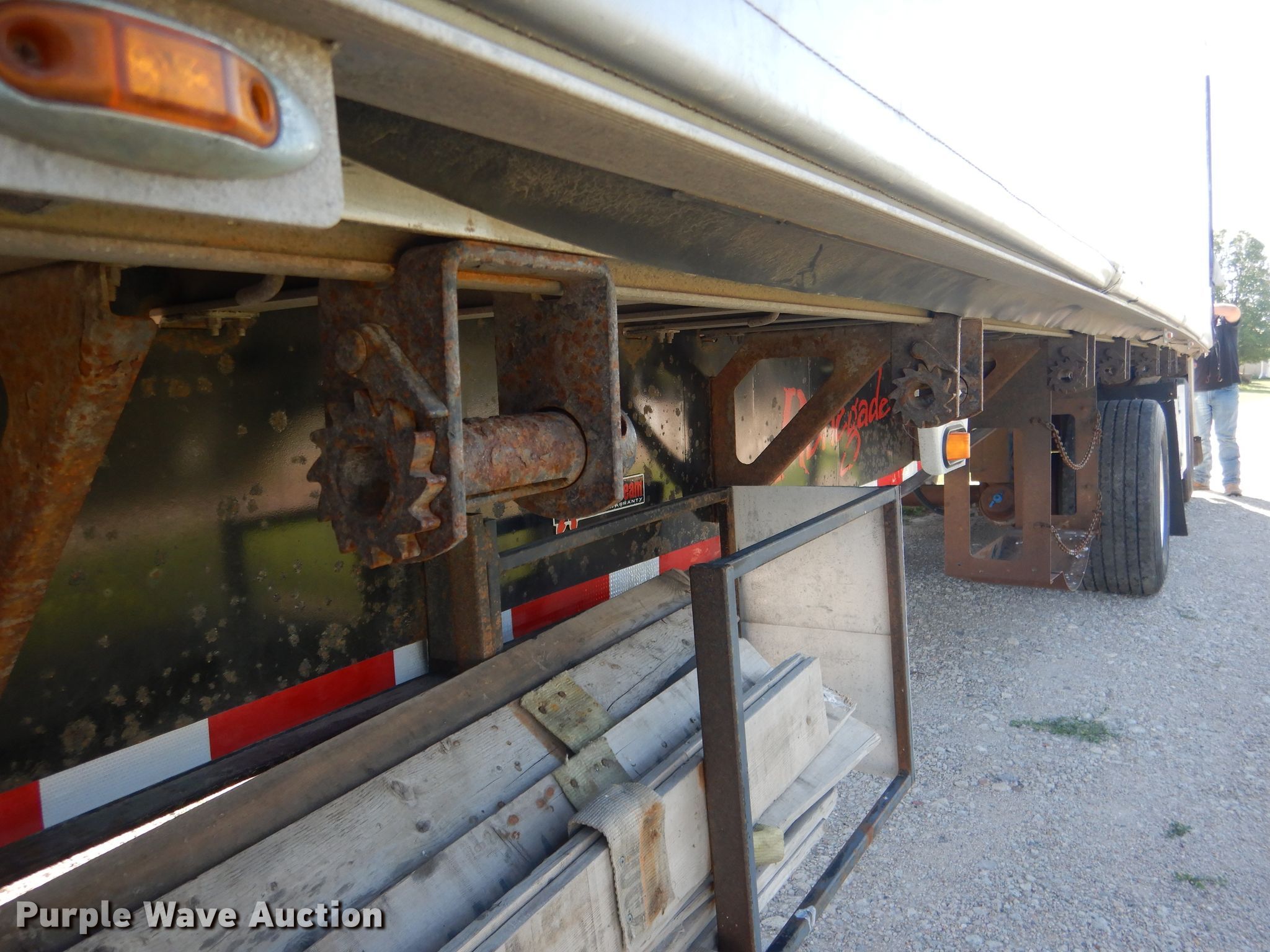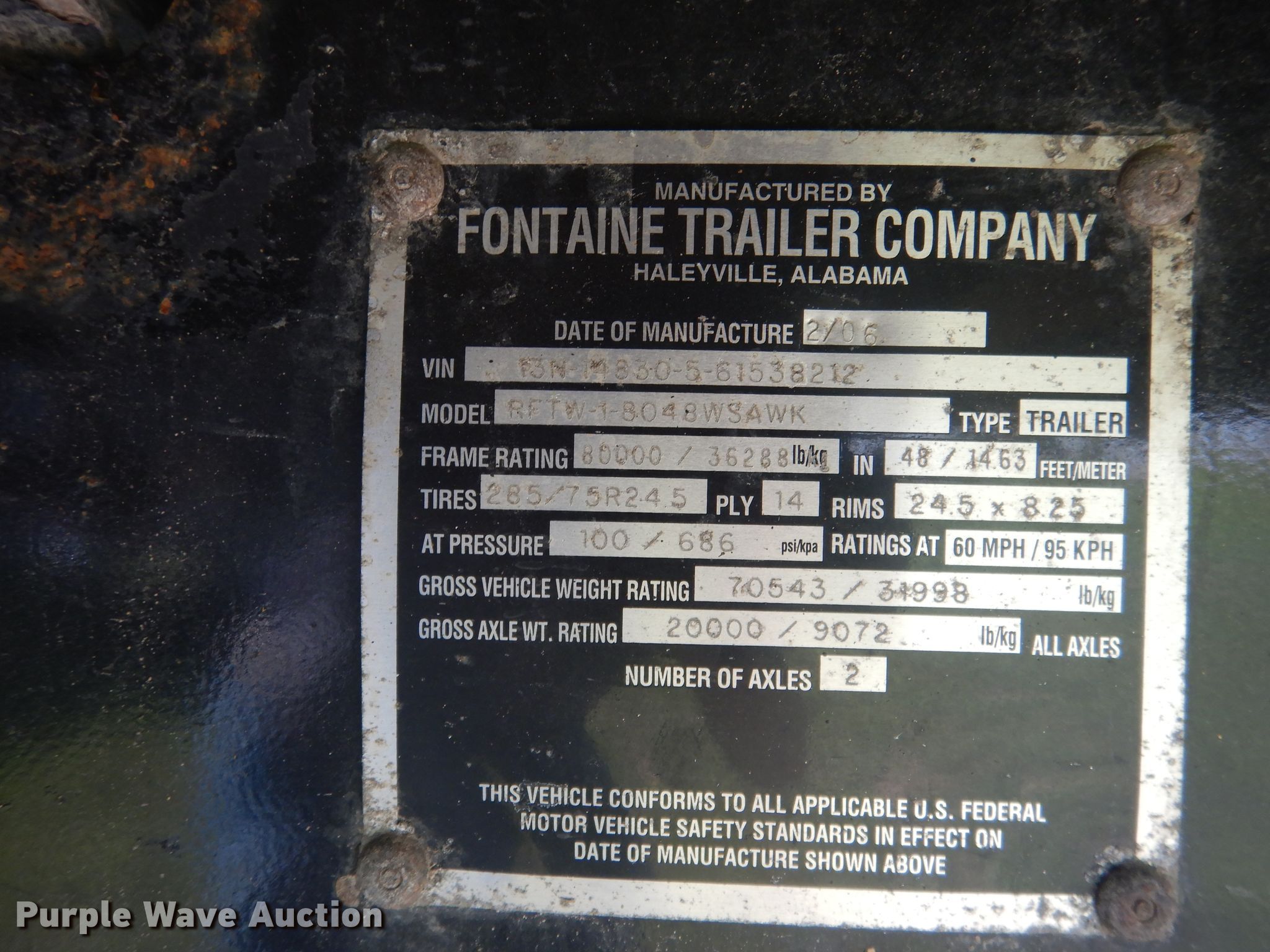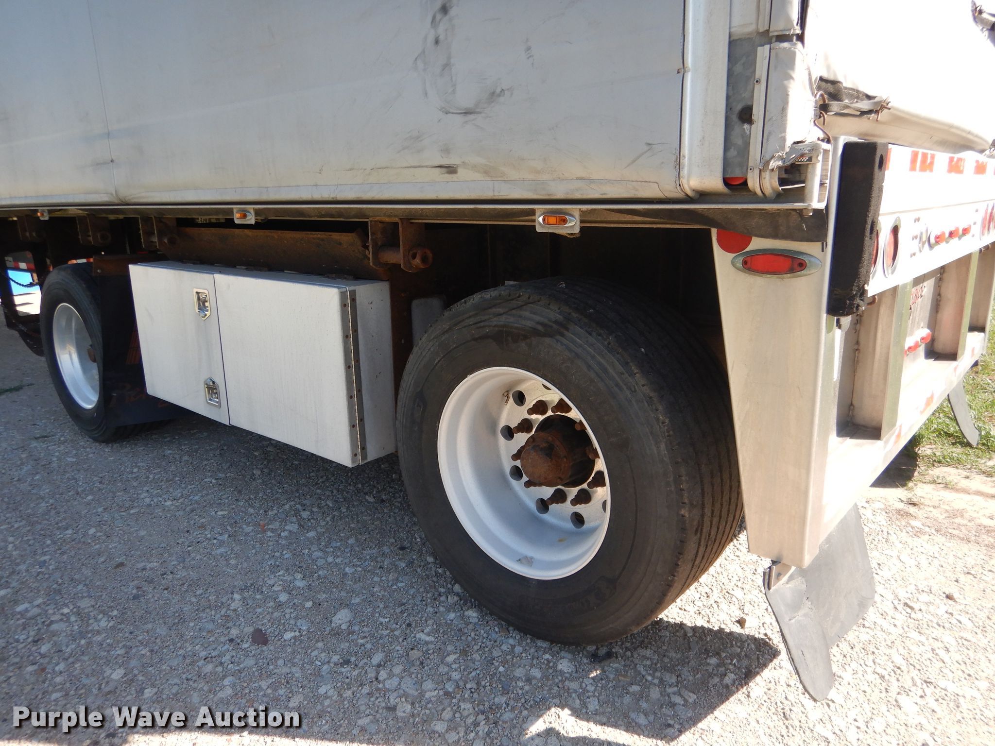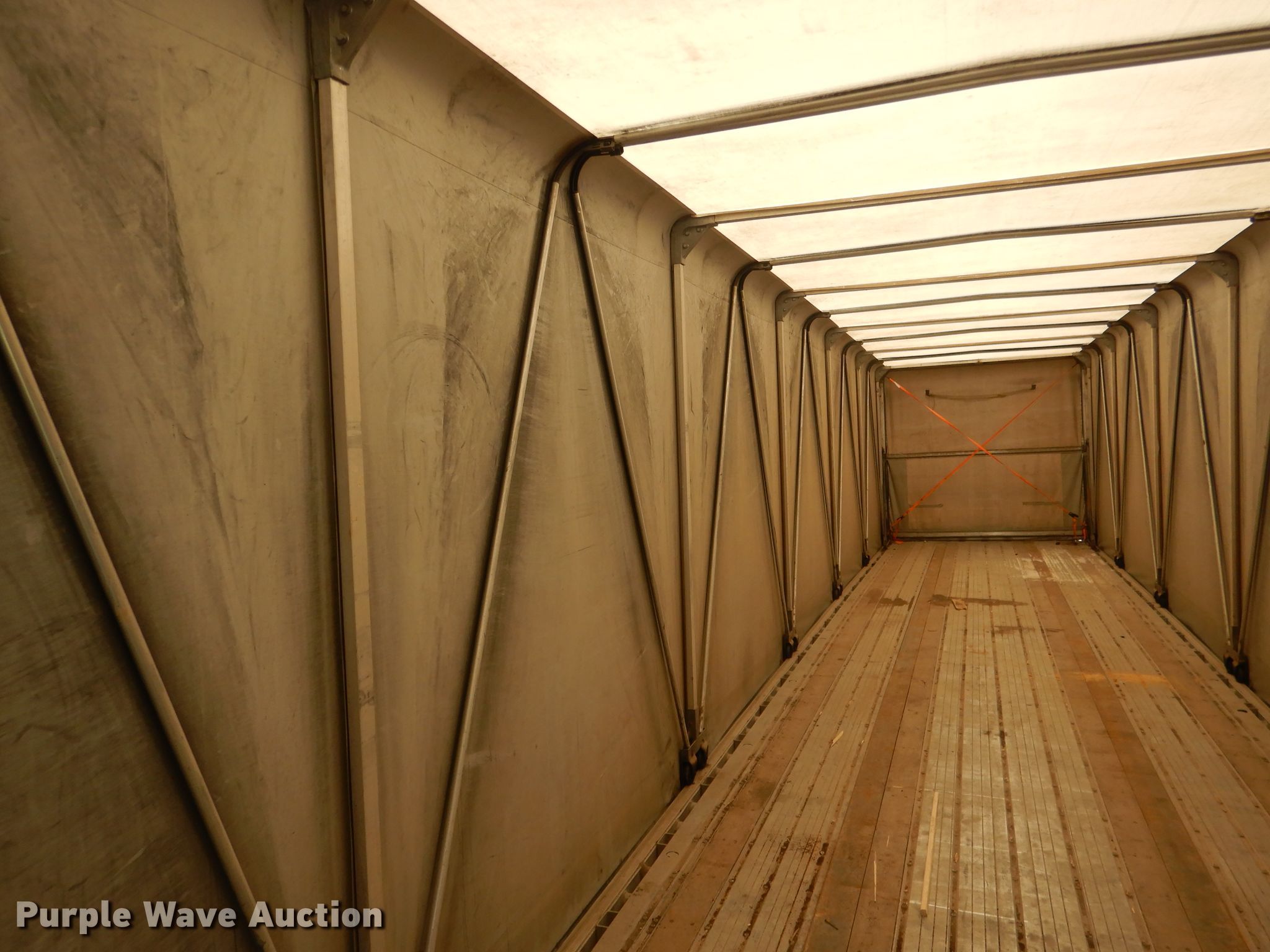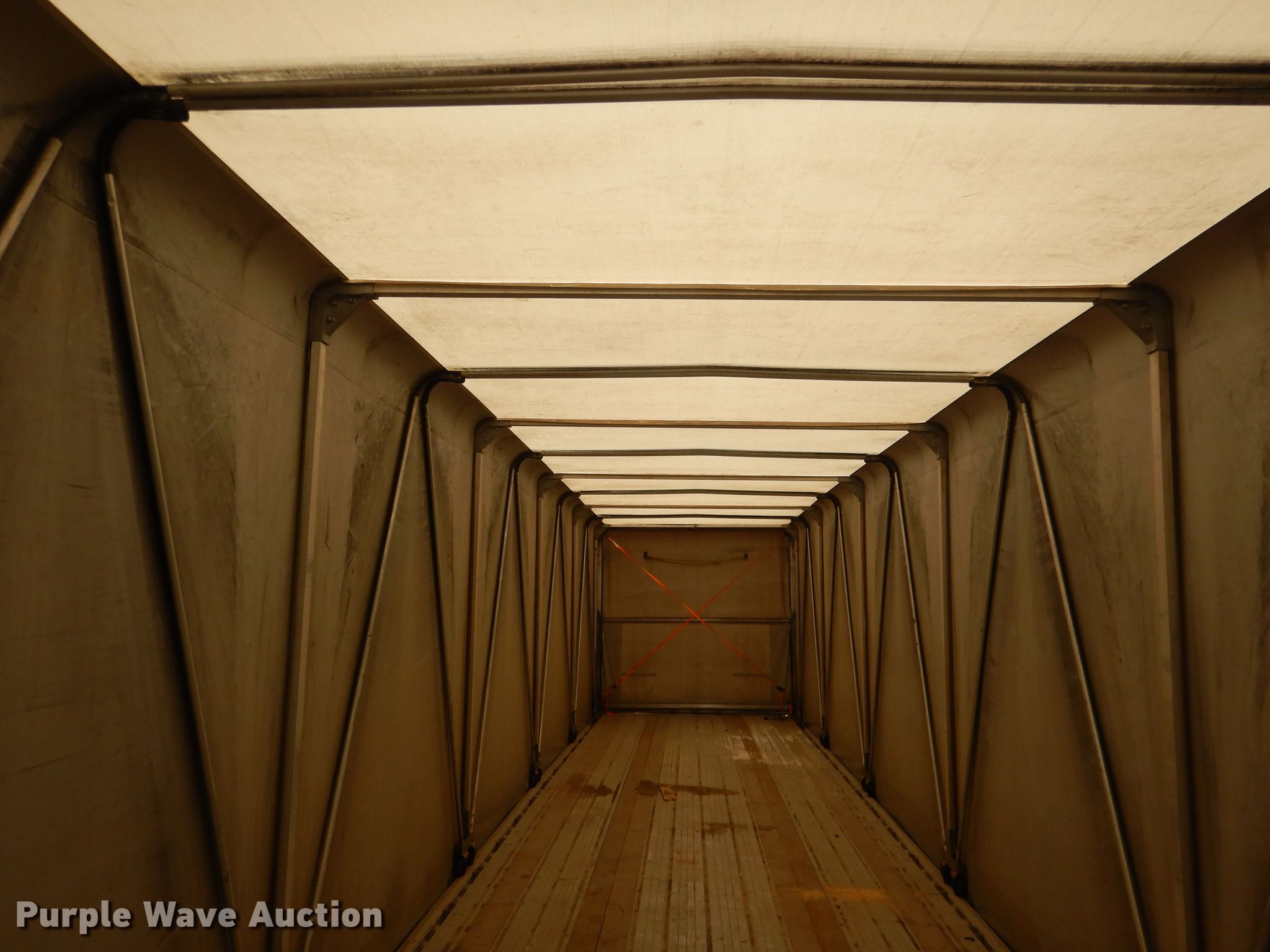 Purple Wave is selling a used Flat or Drop Deck Trailer in Nebraska. This item is a 2006 Fontaine Renegade conestoga trailer with the following: 48'L x 102"W overall, 8' side height, Aluminum deck, 2015 Quick Draw tarp system, Auxiliary airbag deflation system, Dual leg landing gear, Air suspension, Air brakes, Spread axle, 10'W spread, Aluminum wheels, 445/50R22.5 tires, GVWR 80,000 lbs