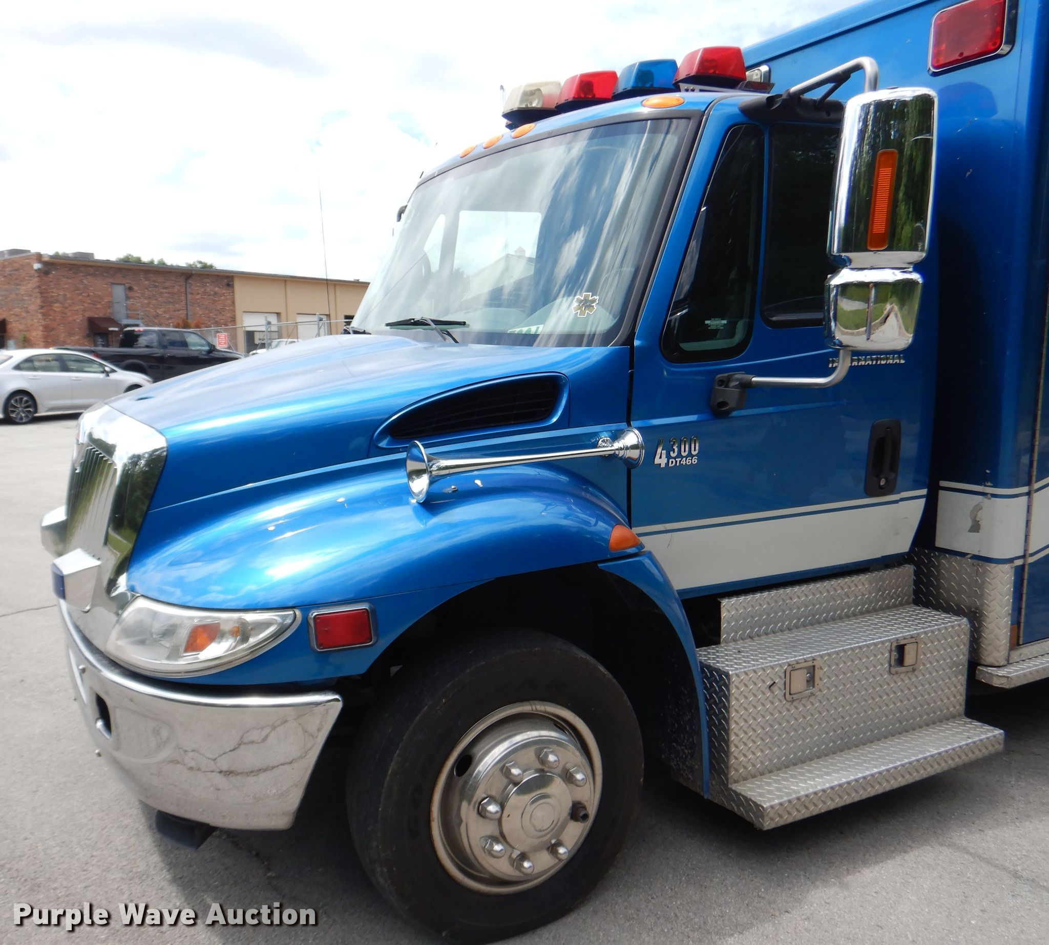 2002 International 4300 ambulance. 136,899 miles on odometer. Engine International DT466, Displacement: 7.6L, Cylinders: 6, Fuel type: Diesel, HP: 220. Transmission Automatic. Chassis Axles: Single. Interior AC, Heat. Operational Ambulance body Medtec, 14'1"L x 8'W. Tires Size: 245/70R19.5. Missouri title. 1HTMNAAMX2H532664. 4000 NE 76th St. Gladstone, MO 64116