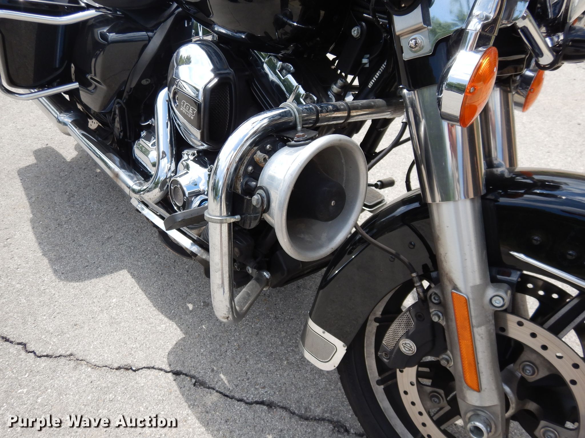 Purple Wave is selling a used Motorcycle in Missouri. This item is a 2014 Harley Davidson Road King Police motorcycle with the following: 16,069 miles on odometer, 103 C.I.D. two cylinder gas engine, Six speed manual transmission, Tour pack, Lights and sirens, 130/80-17 front tire, 180/65-16 rear tire