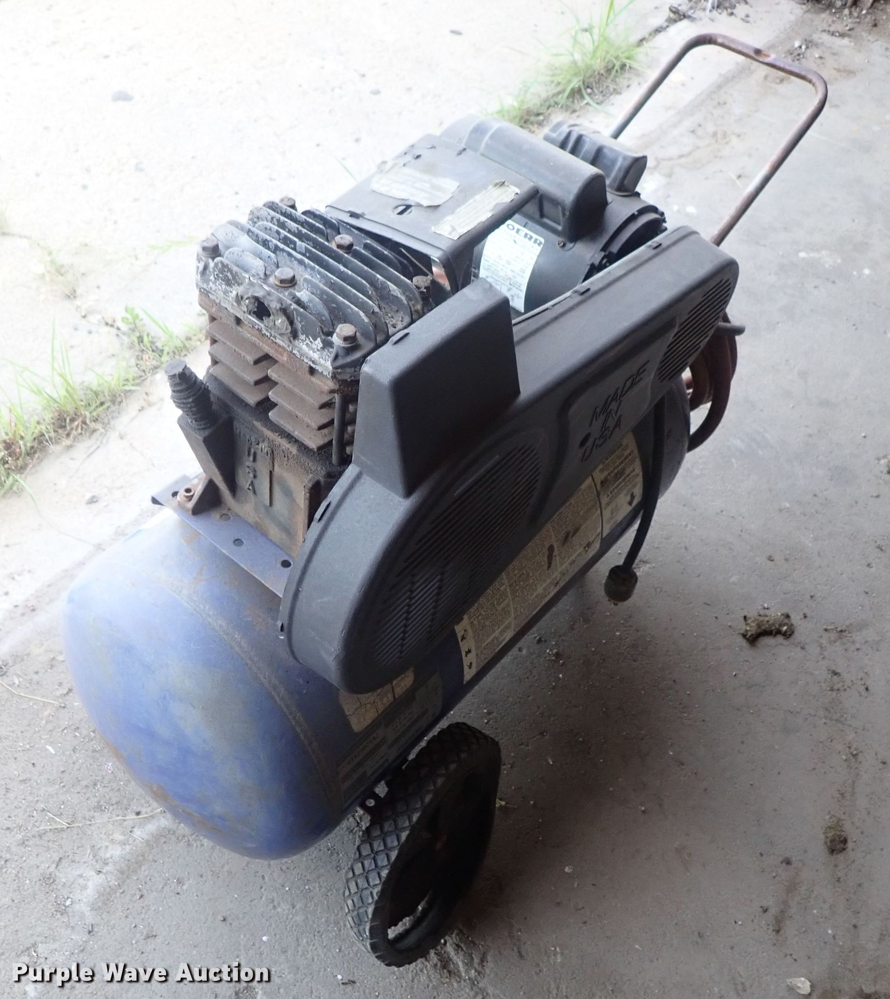 Purple Wave is selling a used Air Compressor in Kansas. This item is a Air compressor with the following: Electric motor, Single phase, 20 gallon tank, Unknown operating condition